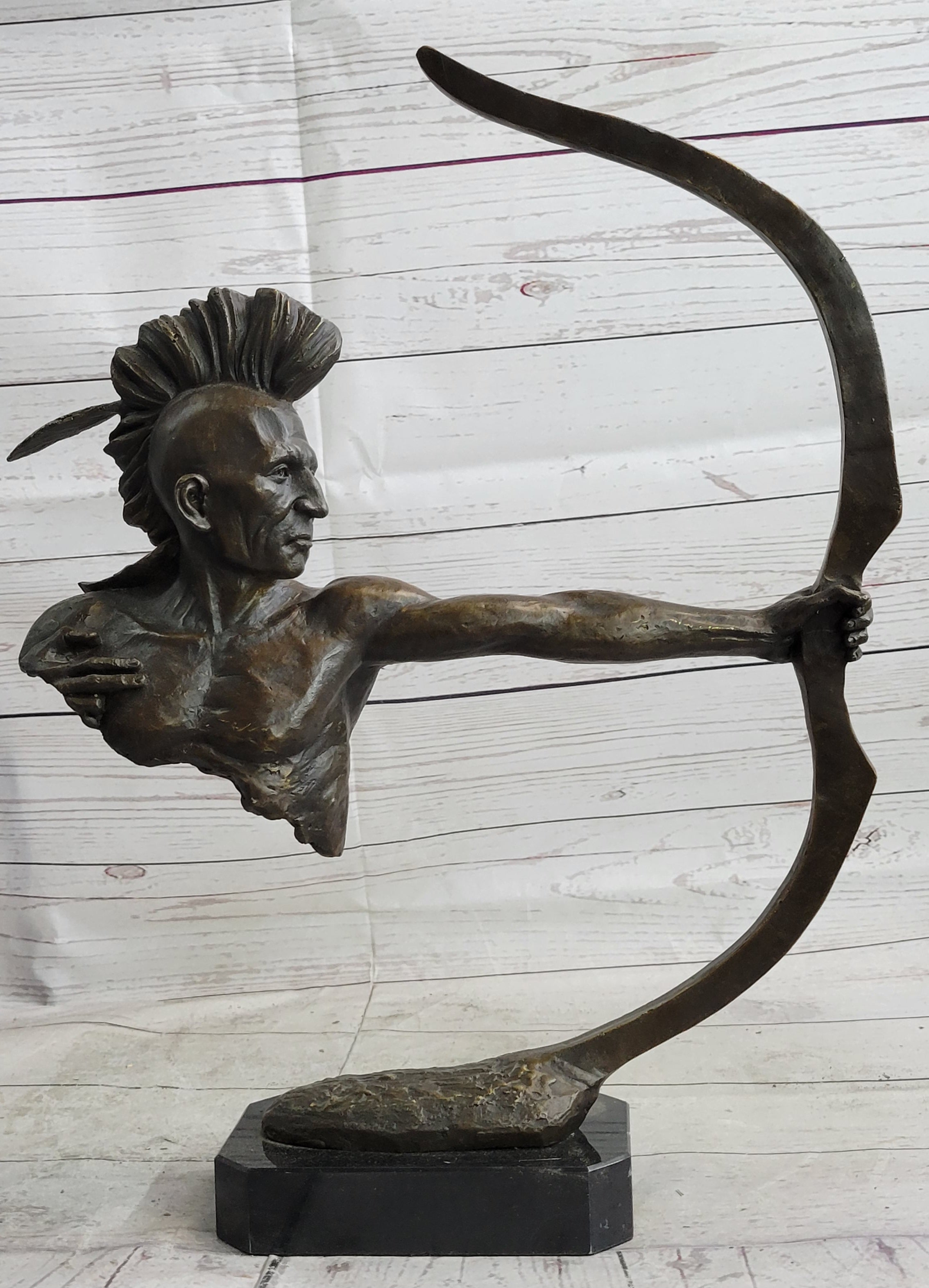 Native American Indian Mohawk Archer Bow Bronze Sculpture Statue Figure 17"