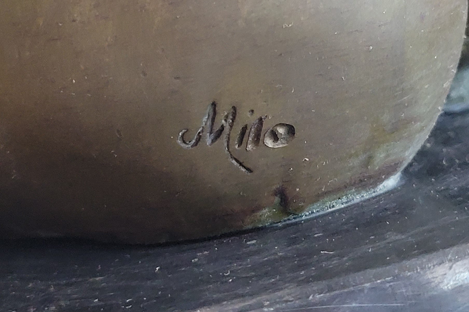Mounted on a sleek black marble base and signed by the renowned artist Milo, this sculpture stands as a testament to the timeless beauty and artistic inspiration derived from the human form. Its elegant design and evocative depiction make it a captivating addition to any art collection or space, serving as a celebration of the artistic process and the inherent beauty found in the female figure.Bronze Dimensions with Marble Base: Height 19.5" X Width 14"