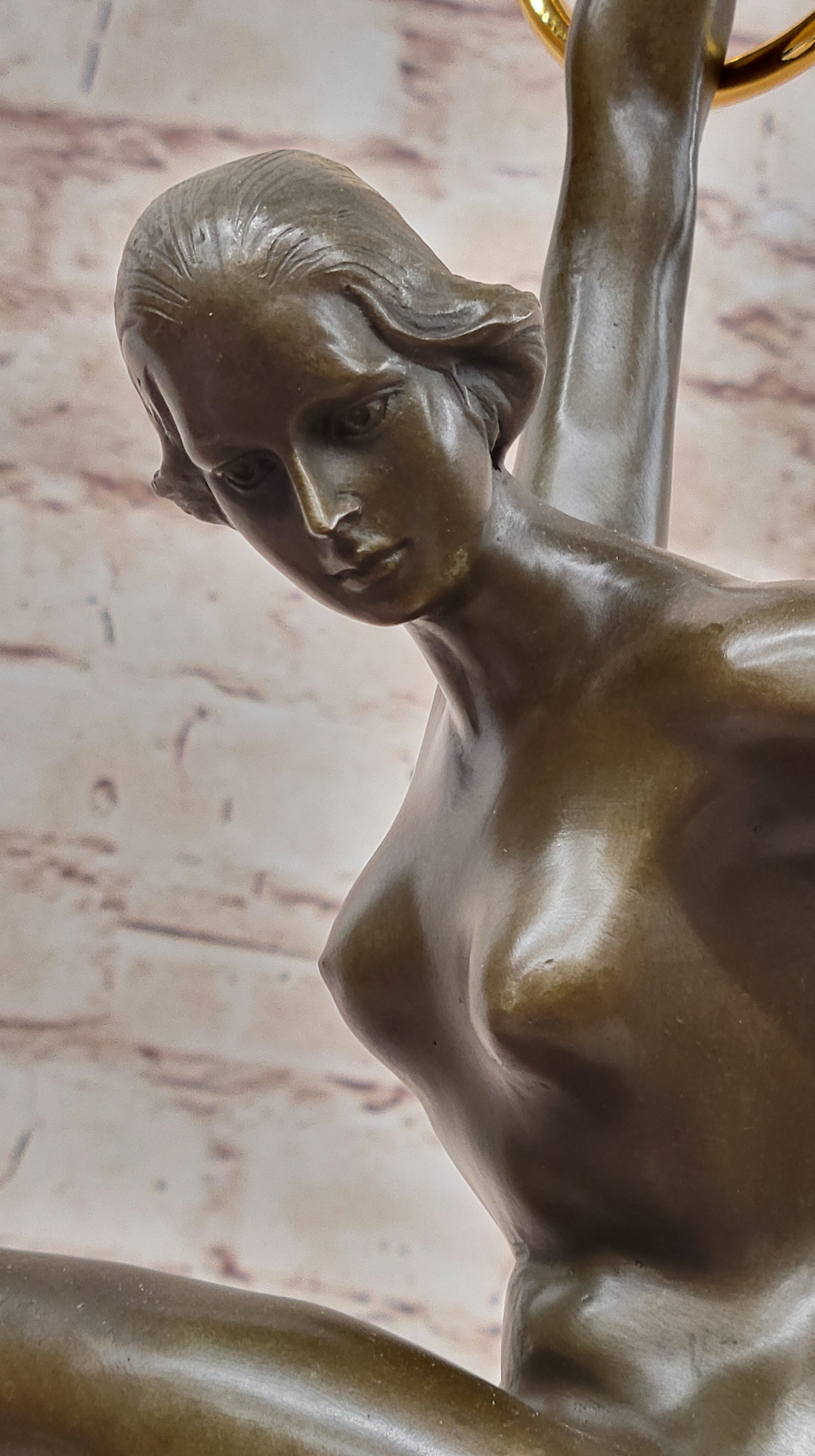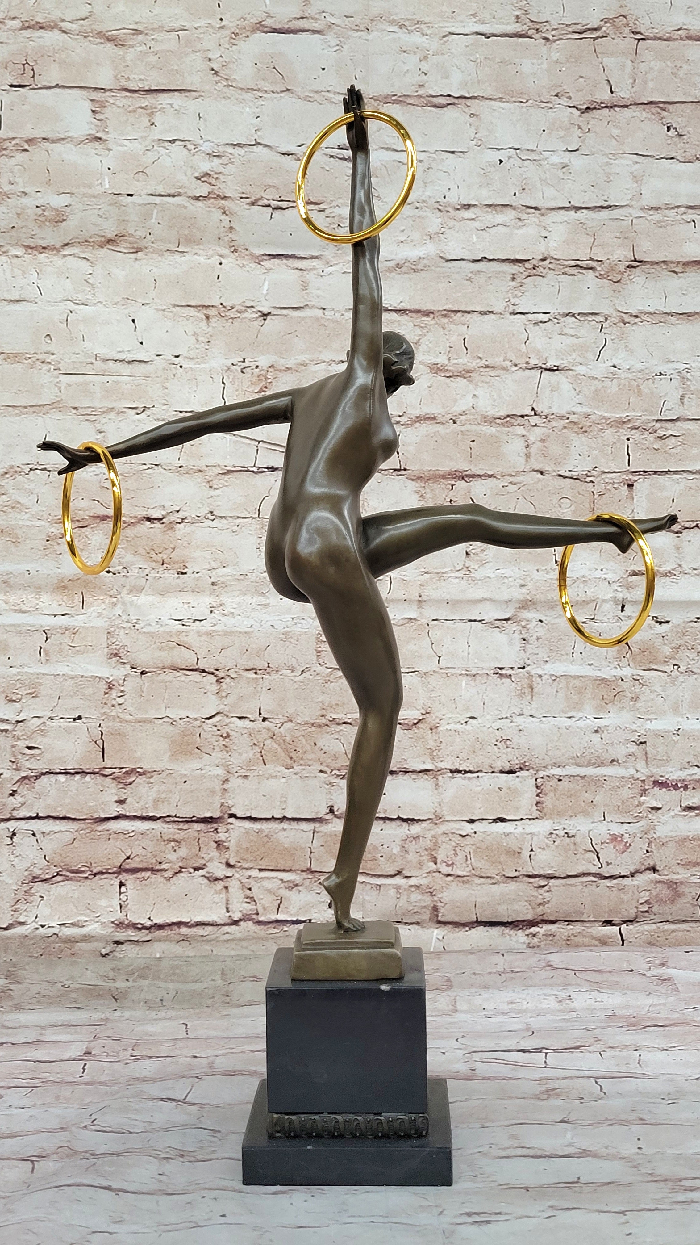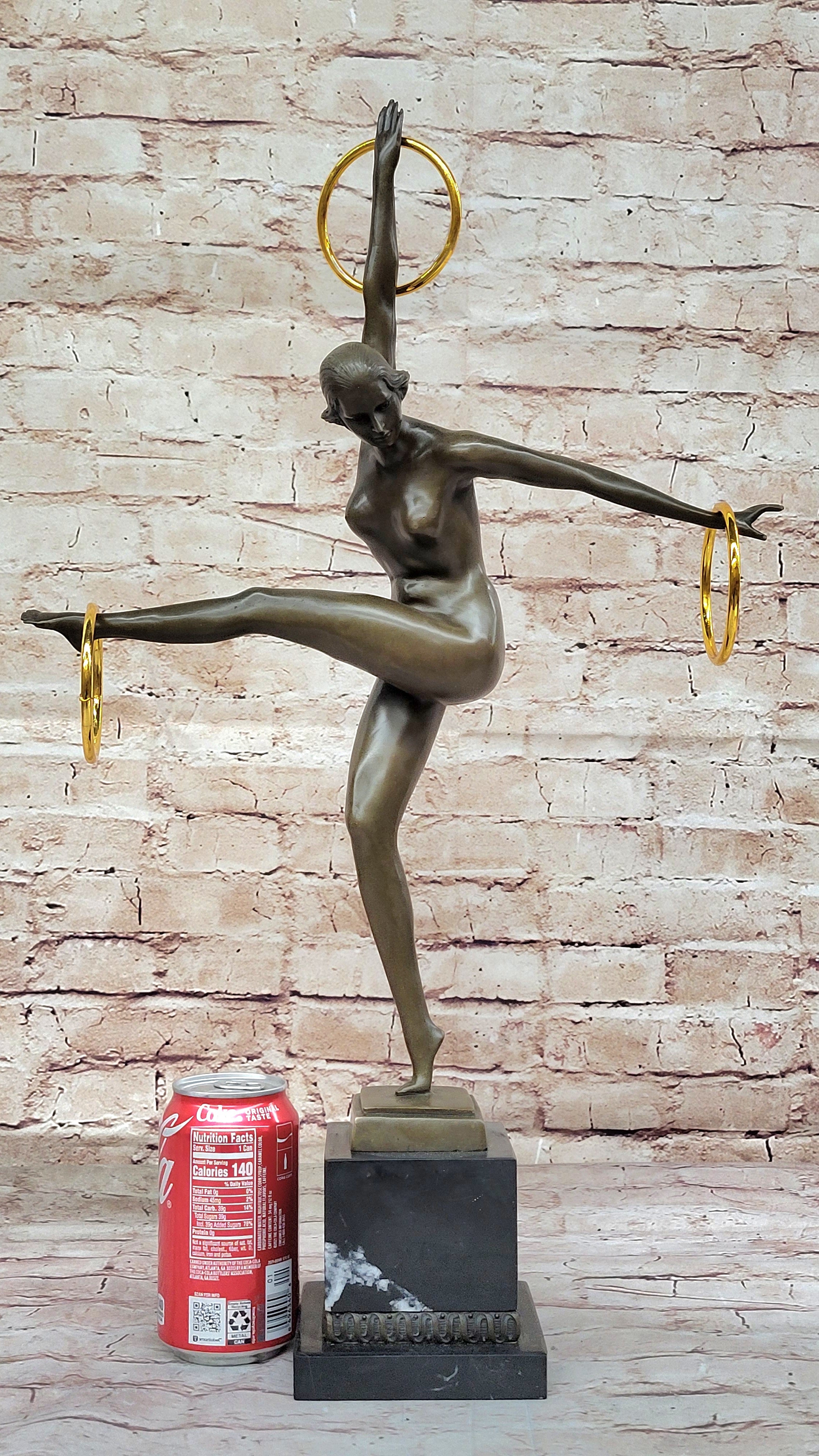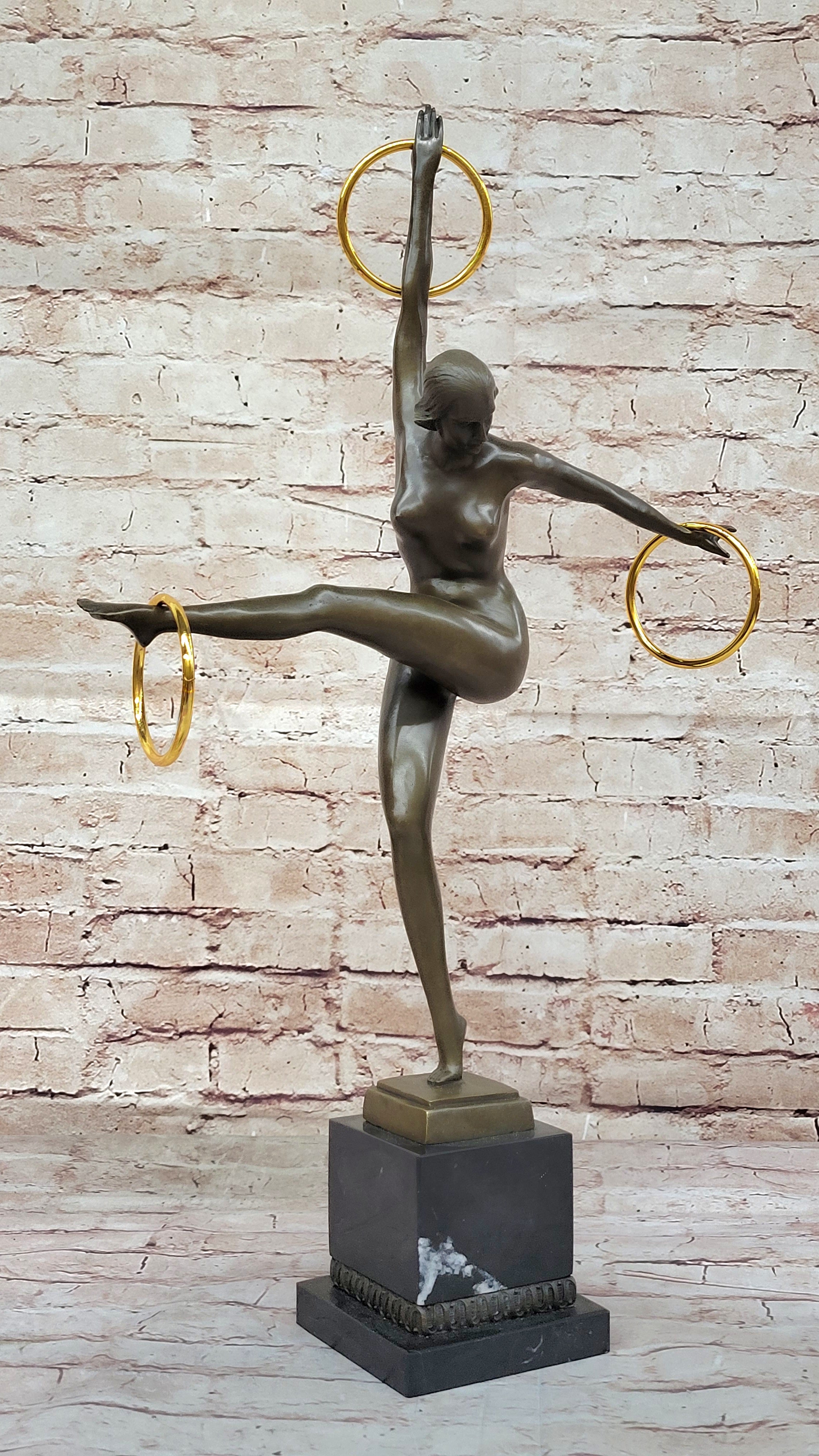 Duvries Art Deco Nude Female Ring Hoop Juggler Bronze Figure Sculpture Statue
