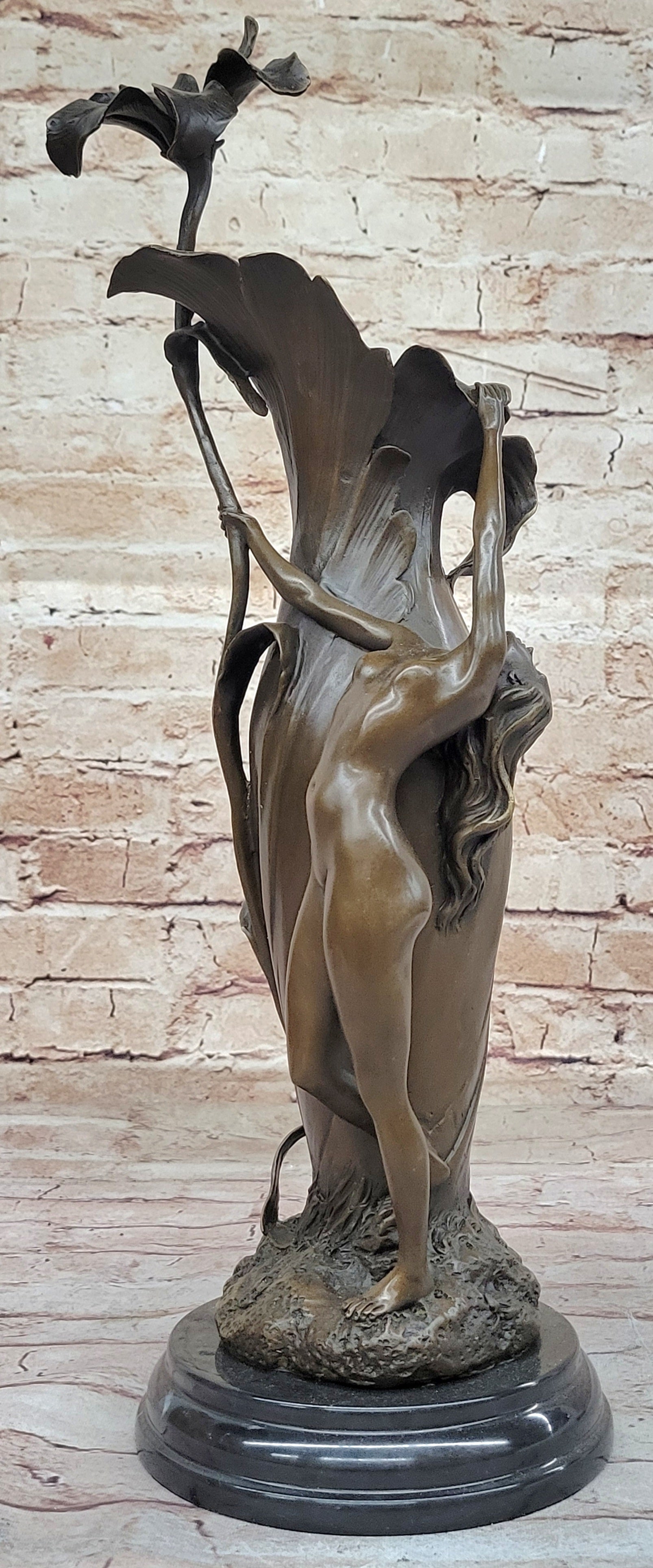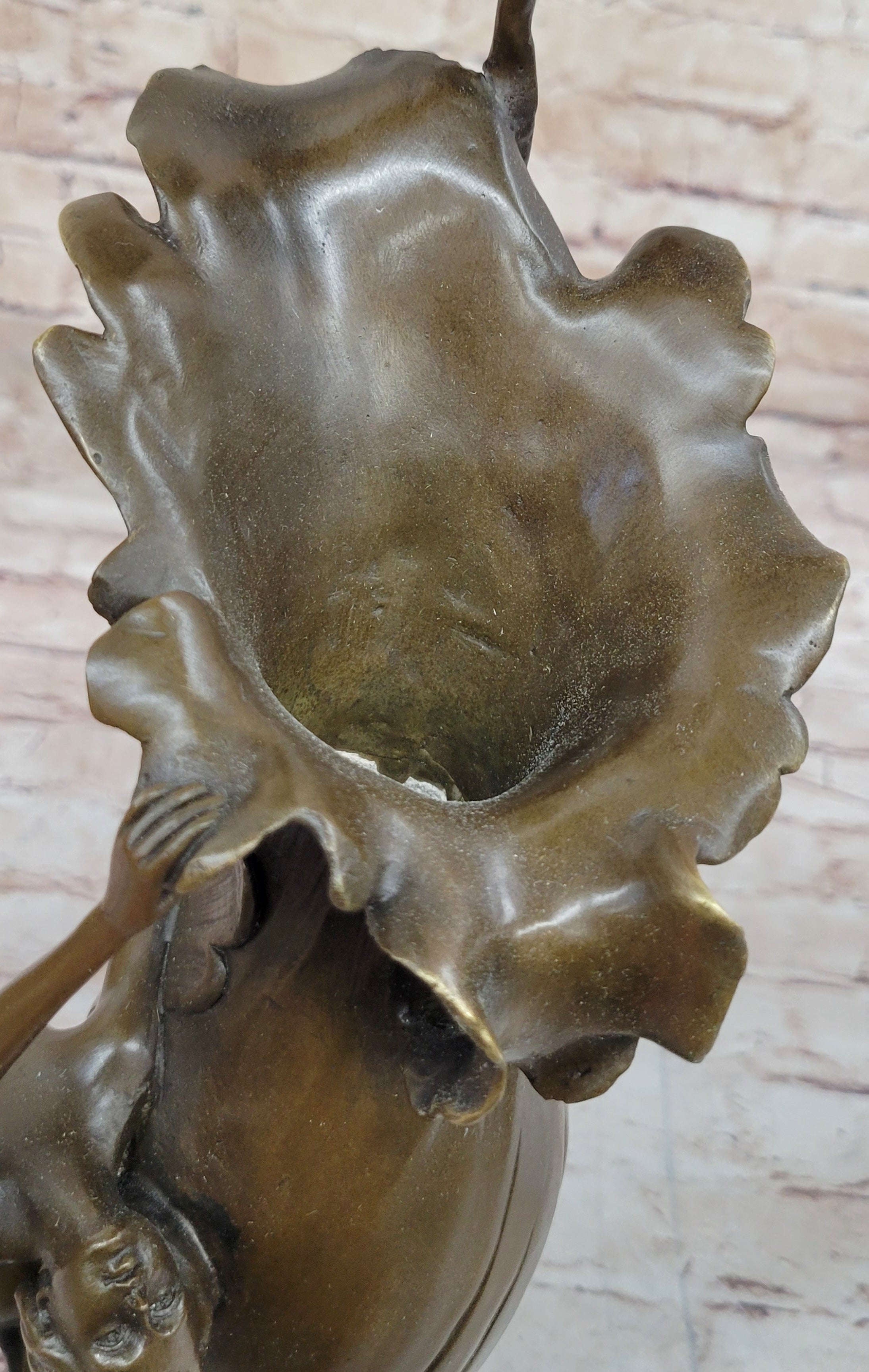 Figurative Floral Nude Girl Bronze Flower Vase Sculpture by Charles Louchet