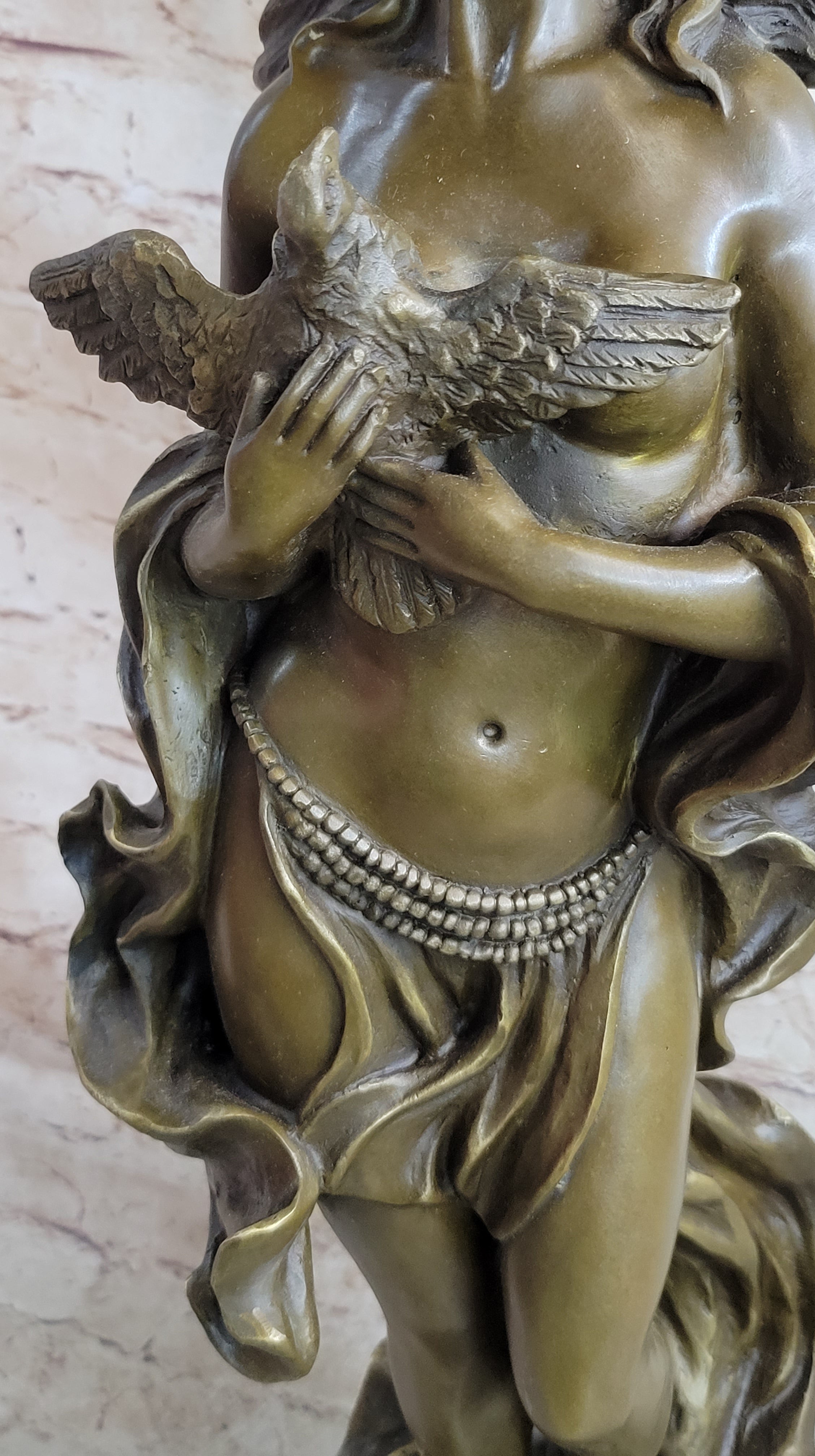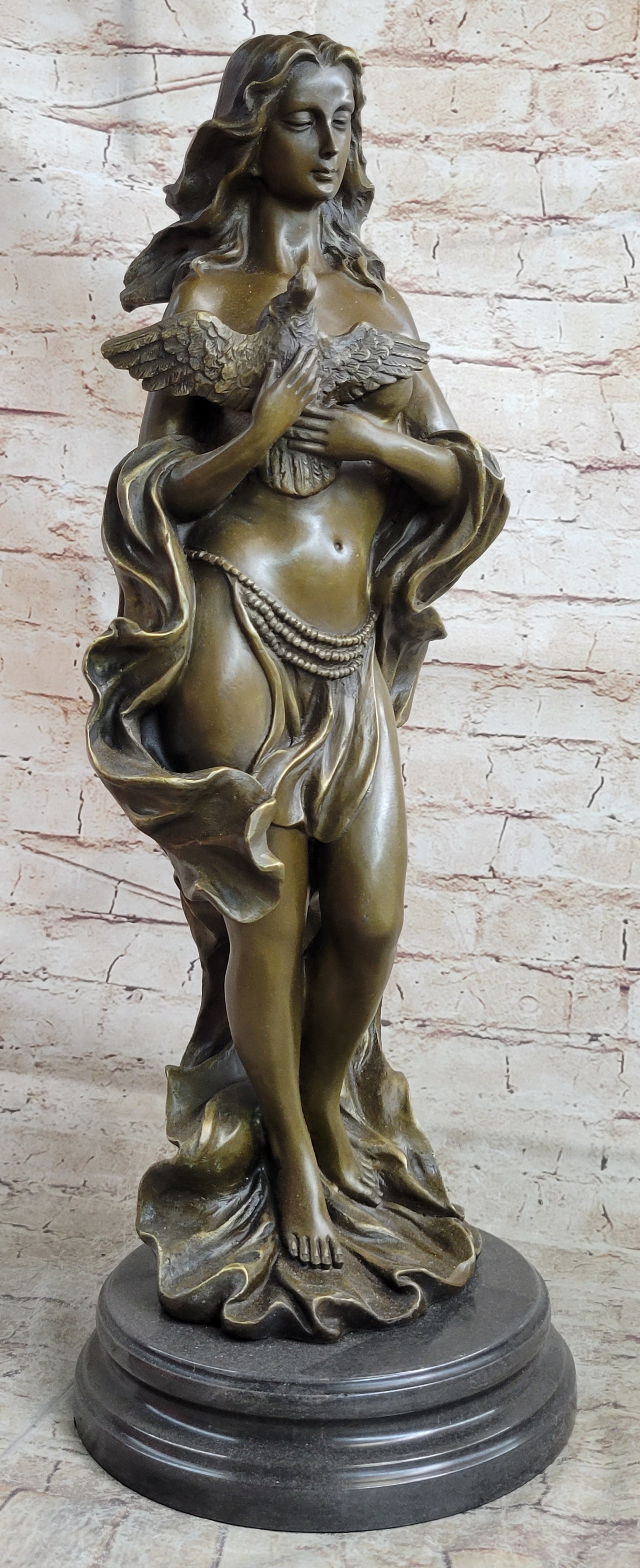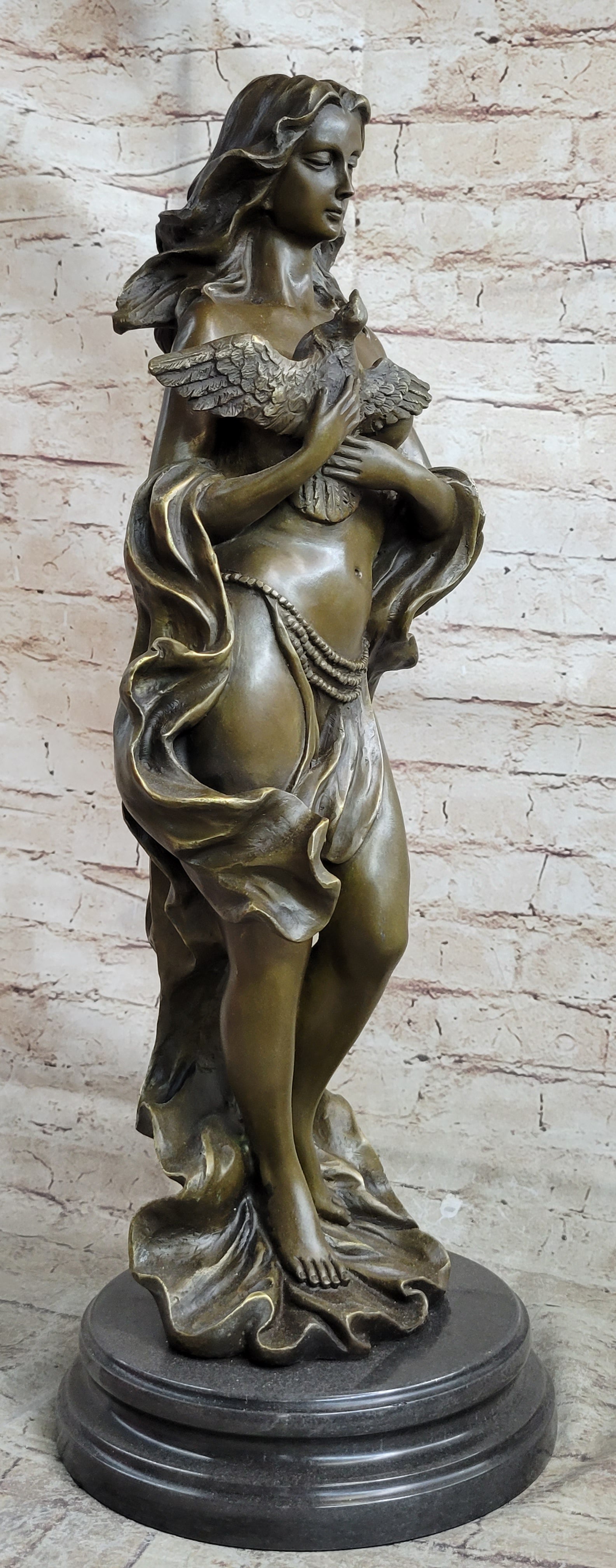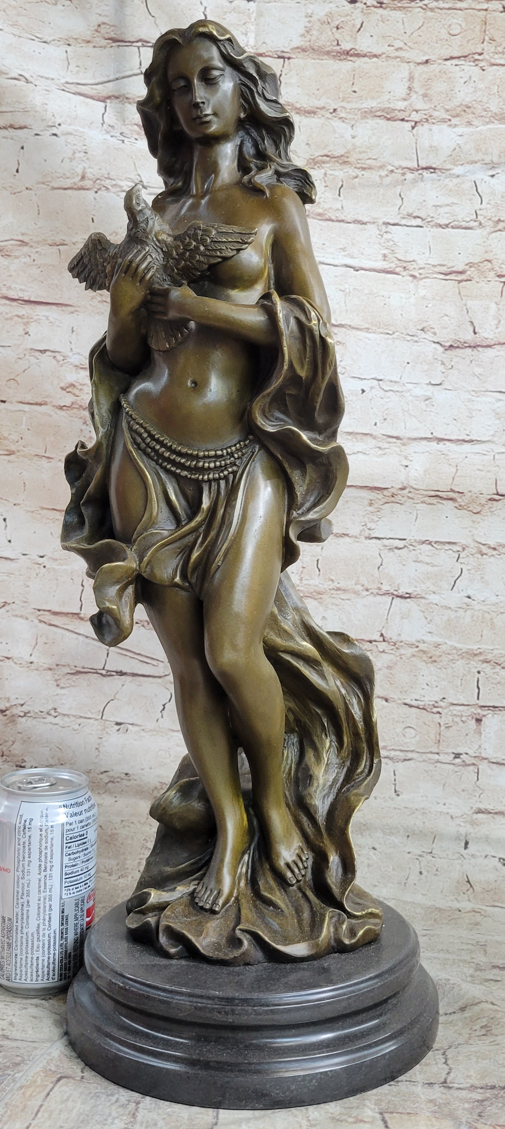 Semi Nude Female Figure Girl Holding Bird Bronze Statue Sculpture Original 22" x 8"