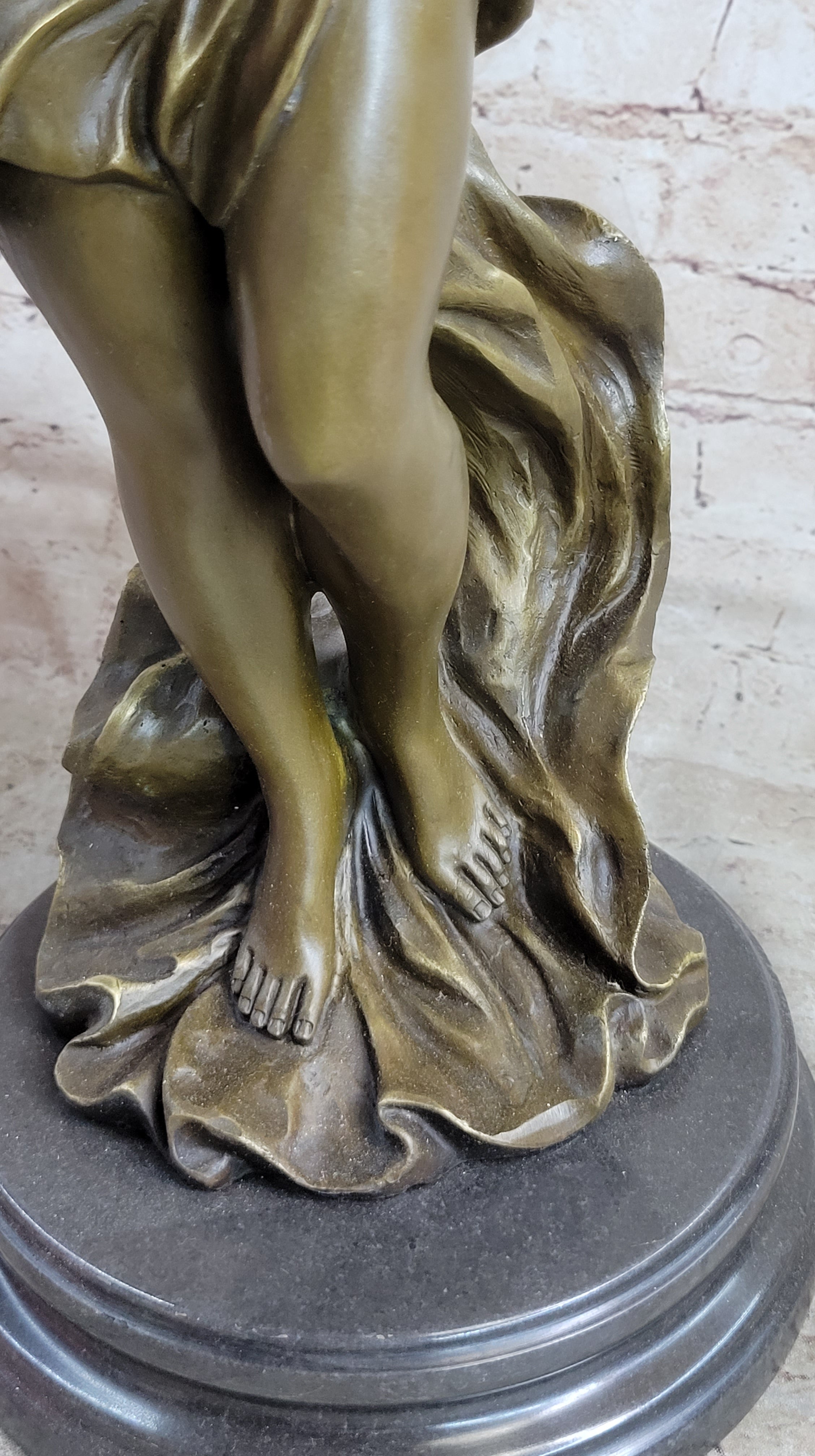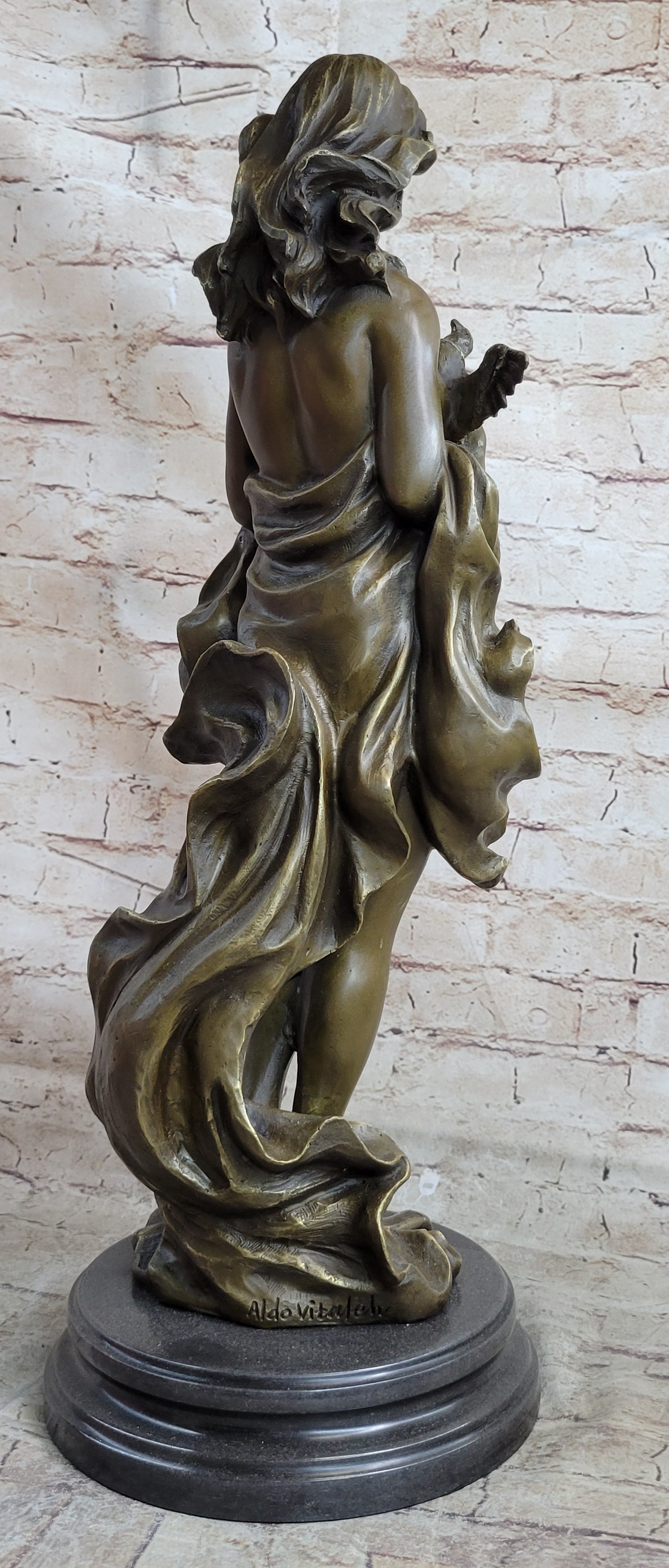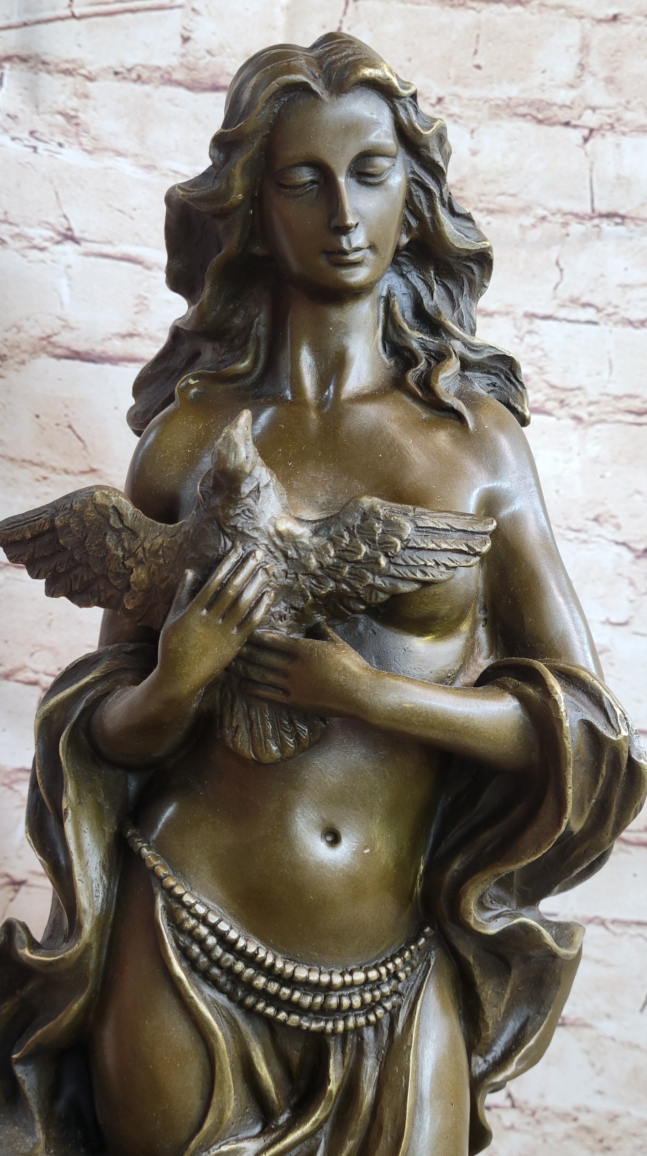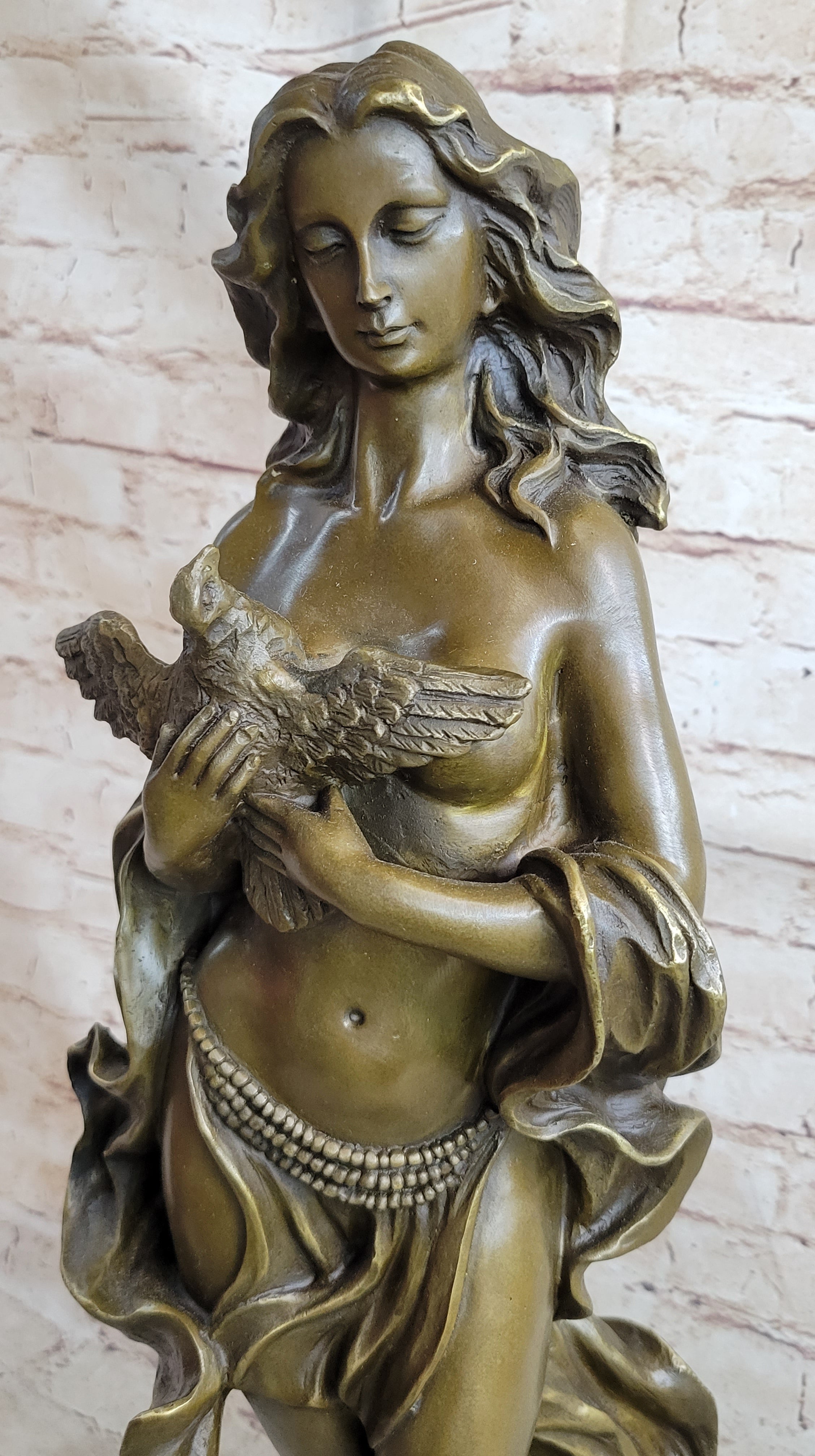 Semi Nude Female Figure Girl Holding Bird Bronze Statue Sculpture Original 22" x 8"