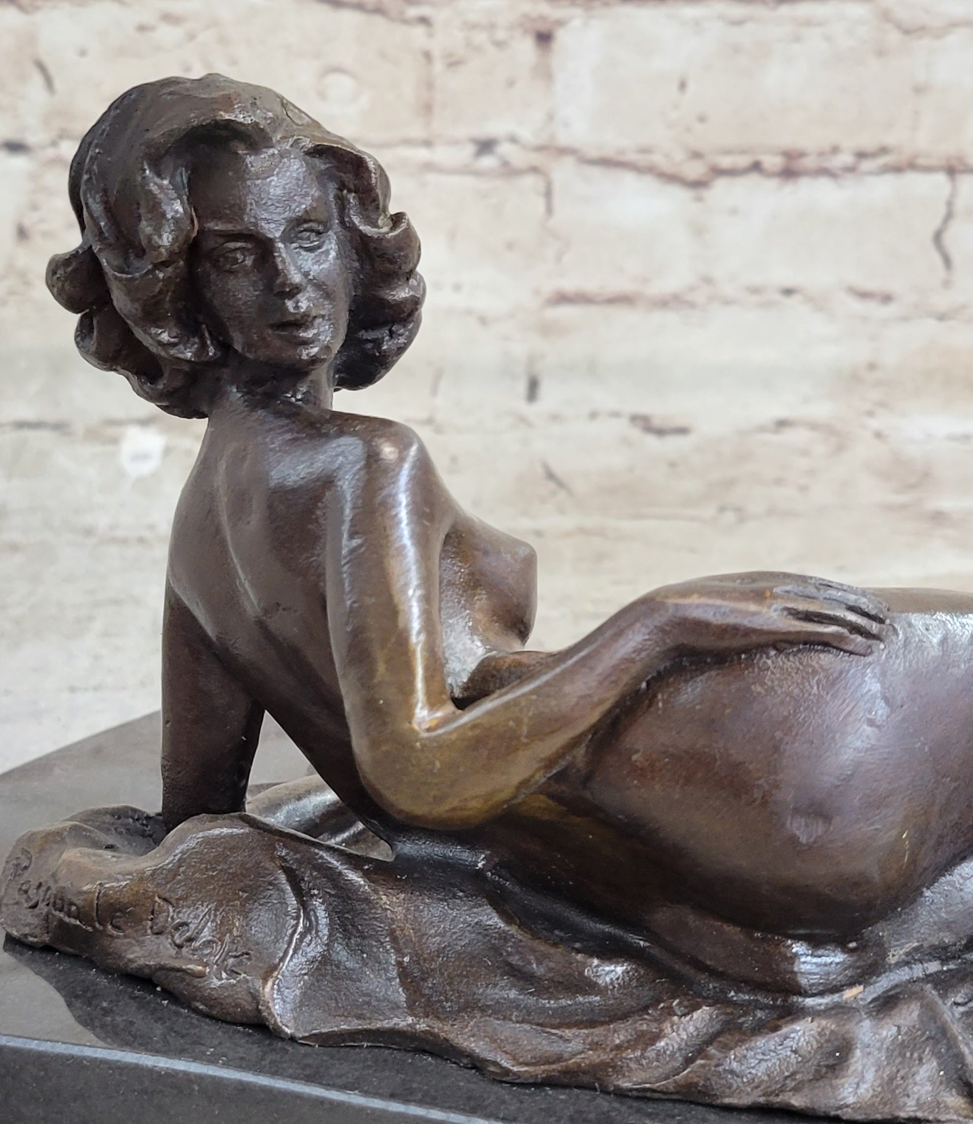 Sexy Nude Female Figure Model Laying on Her Side - Original Bronze Sculpture by Pasquale Delor