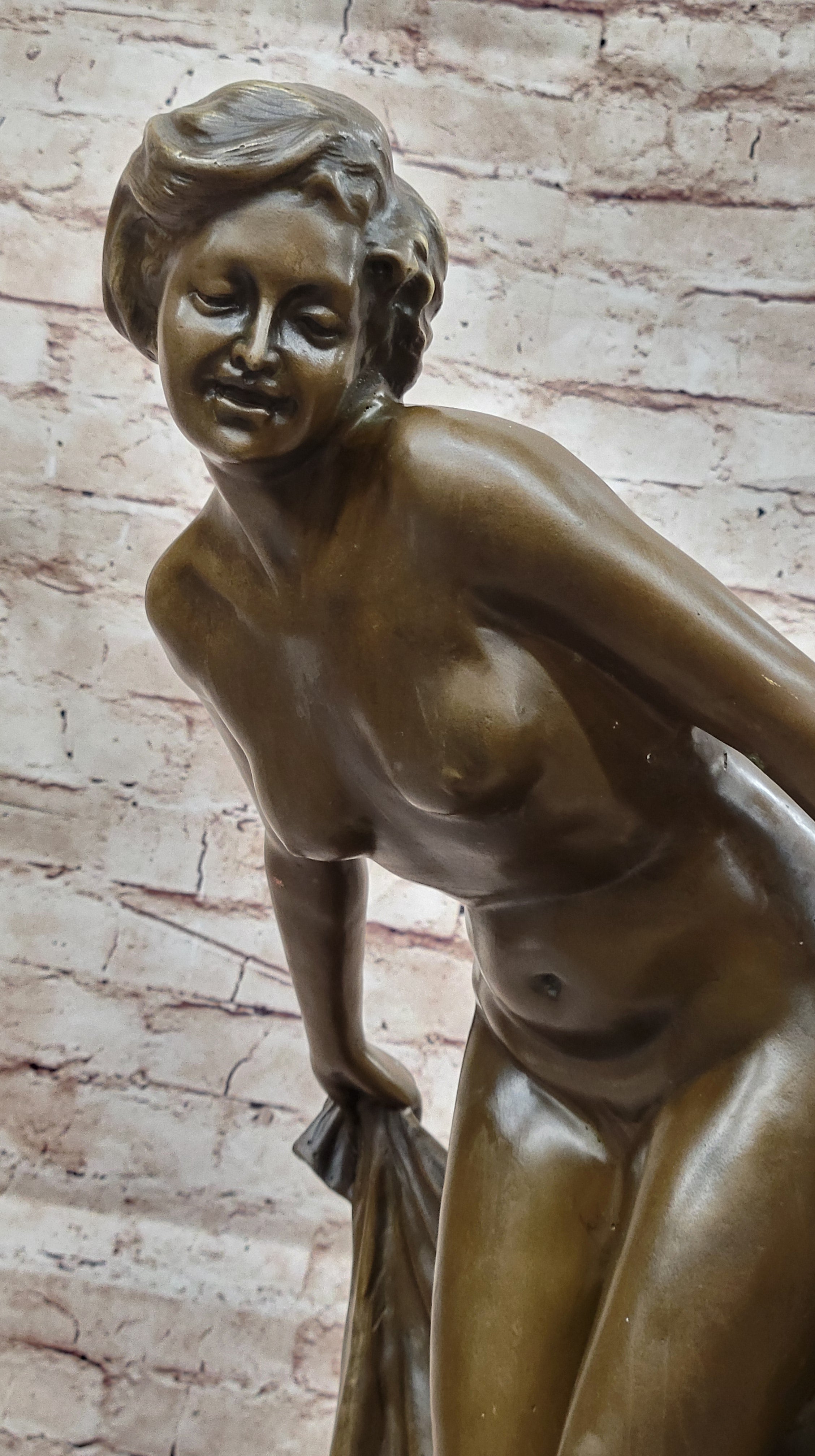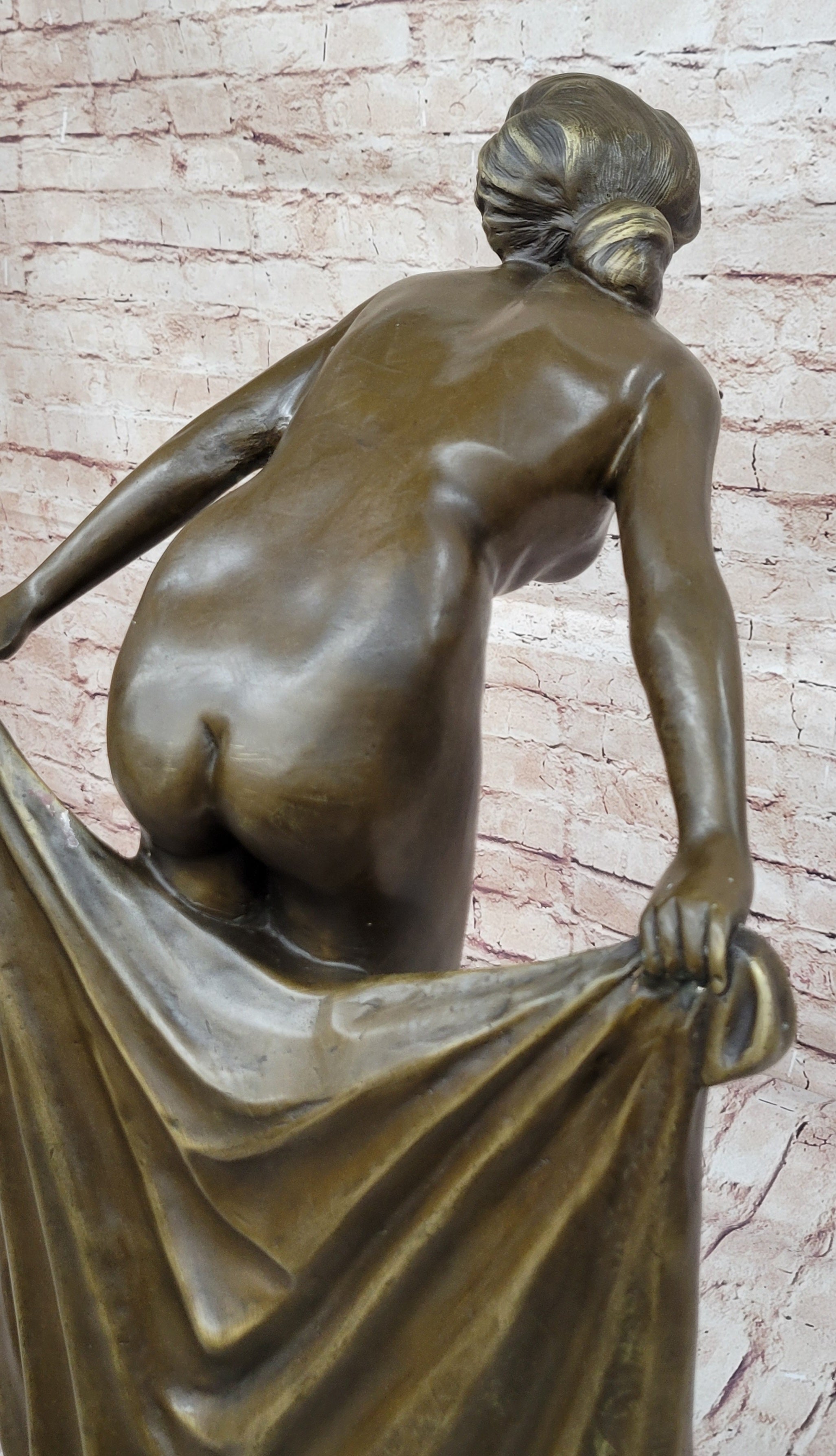 Sexy Nude Girl Holding Towel Bronze Sculpture Statue Figure Original Art