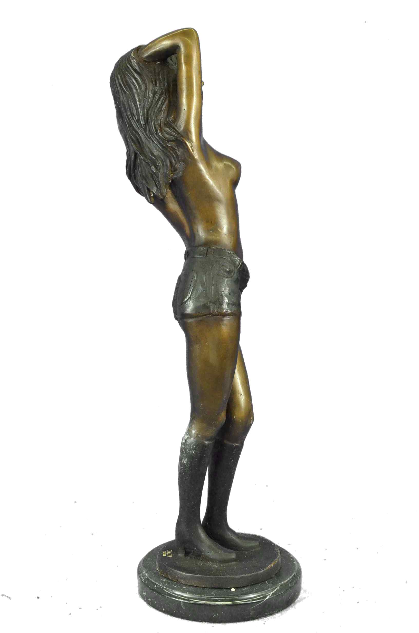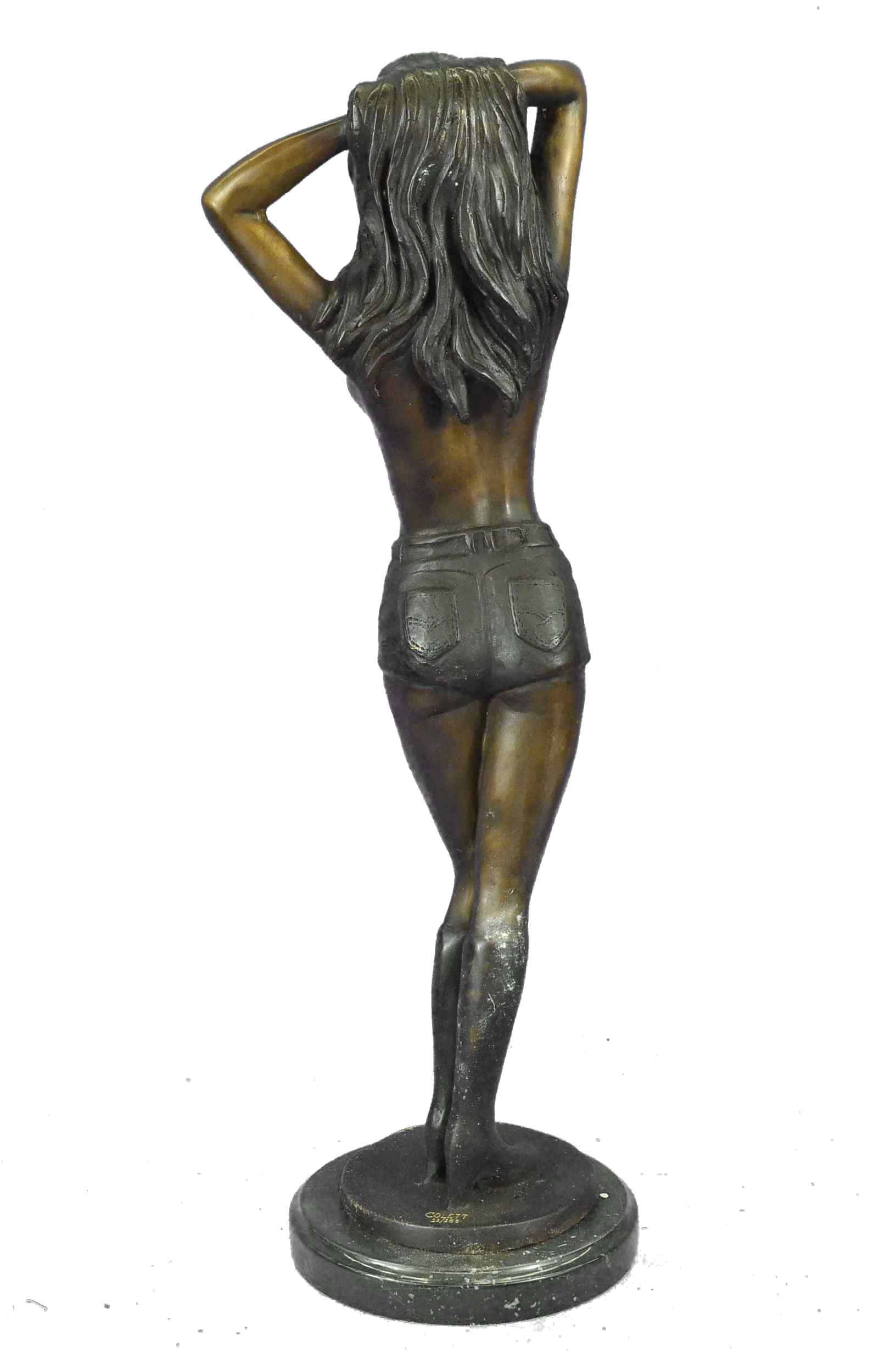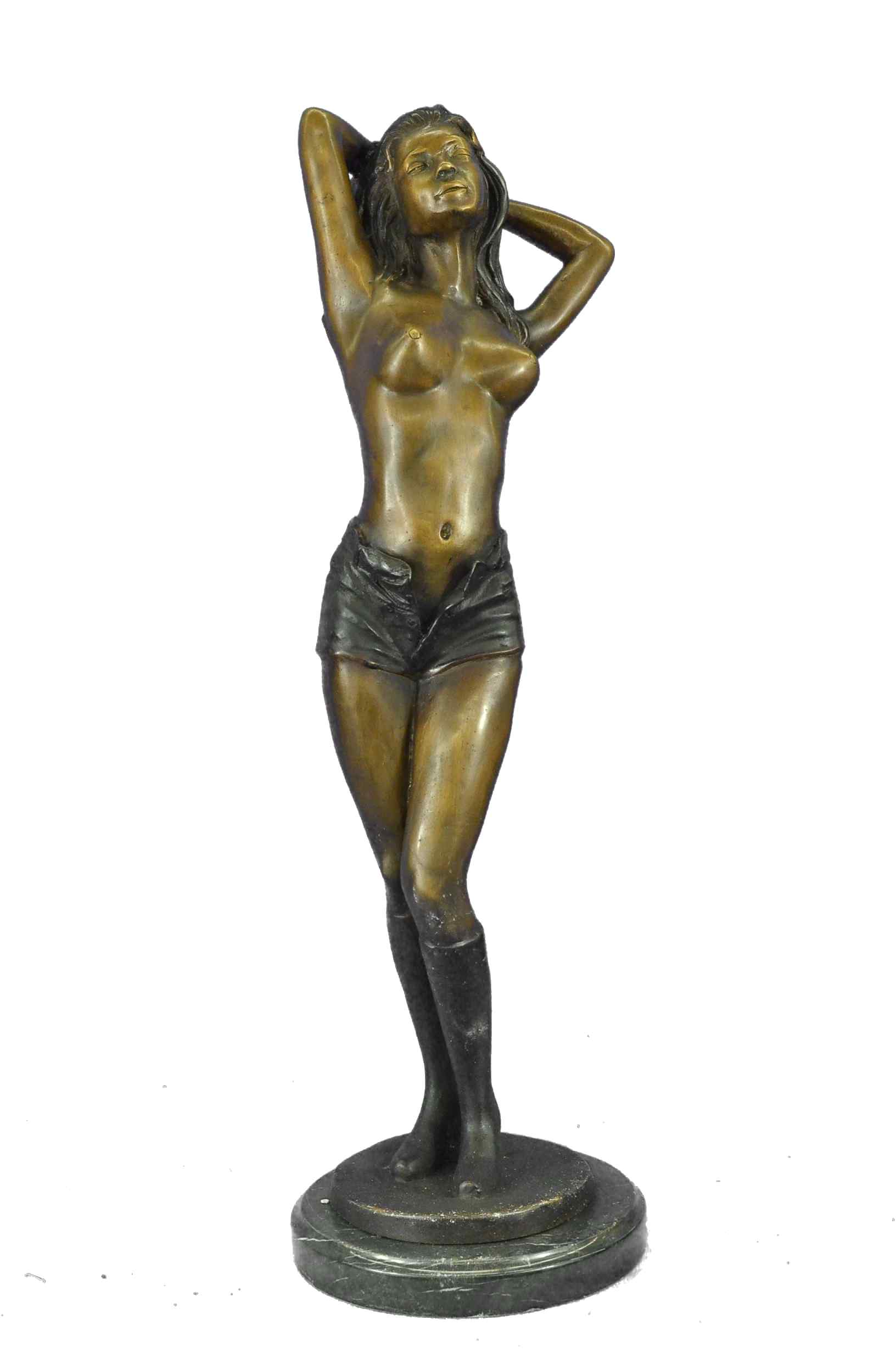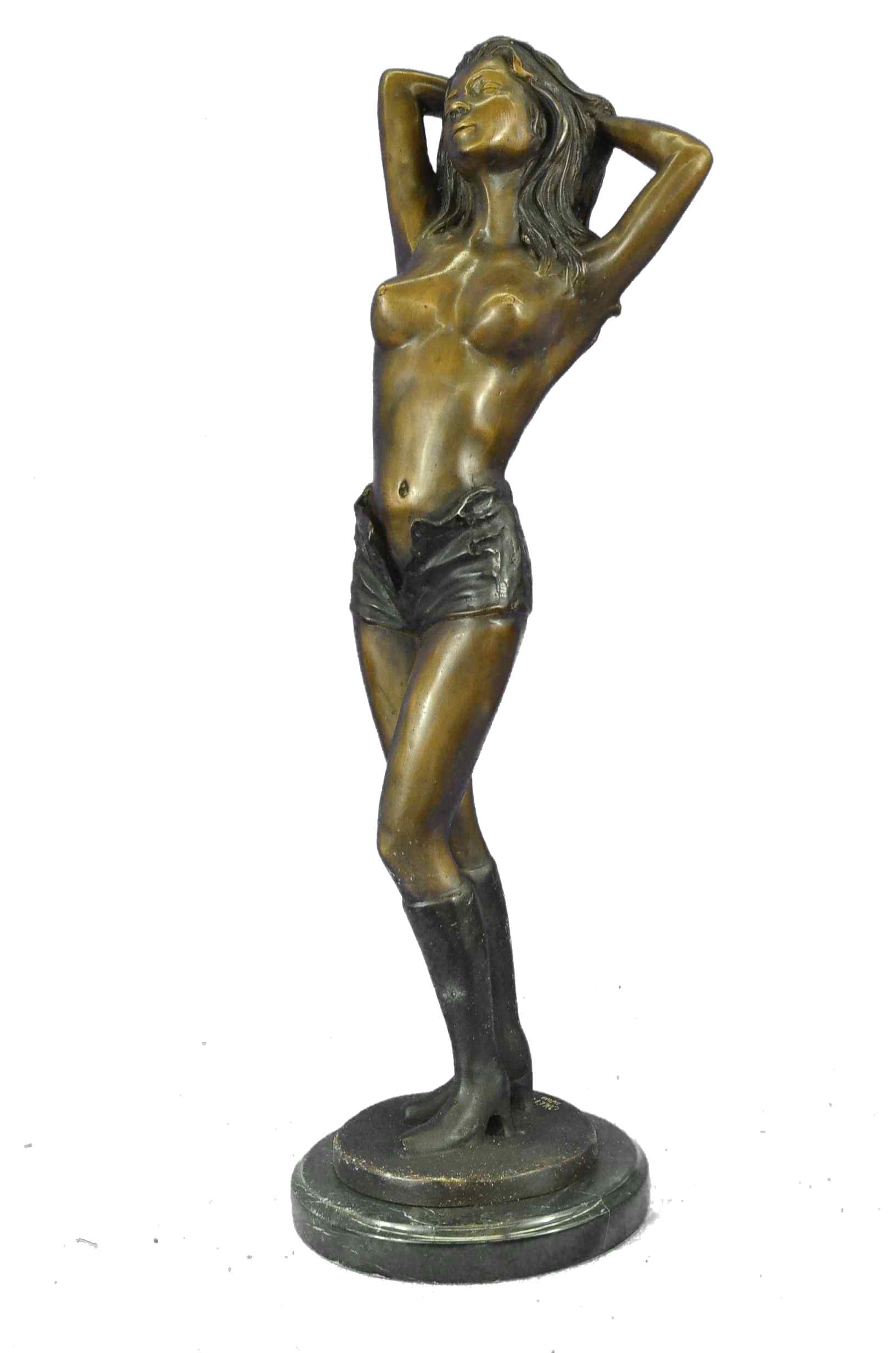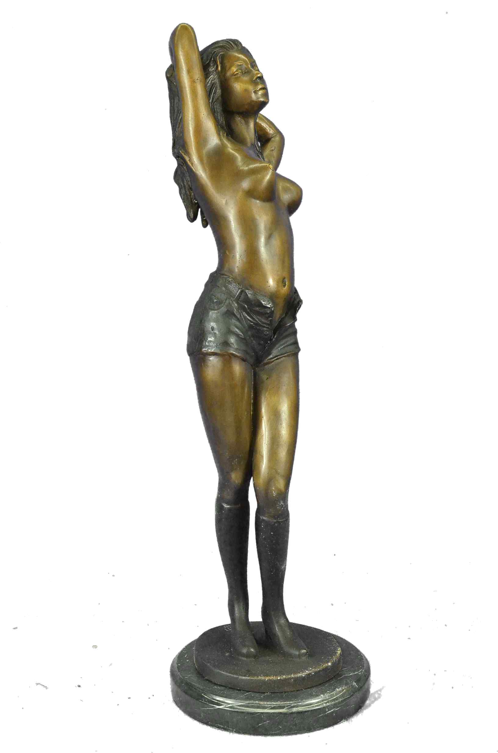 SIGNED COLLETT SEXY NAKED GIRL W/ SHORT BRONZE SCULPTURE HOT CAST STATUE FIGURE