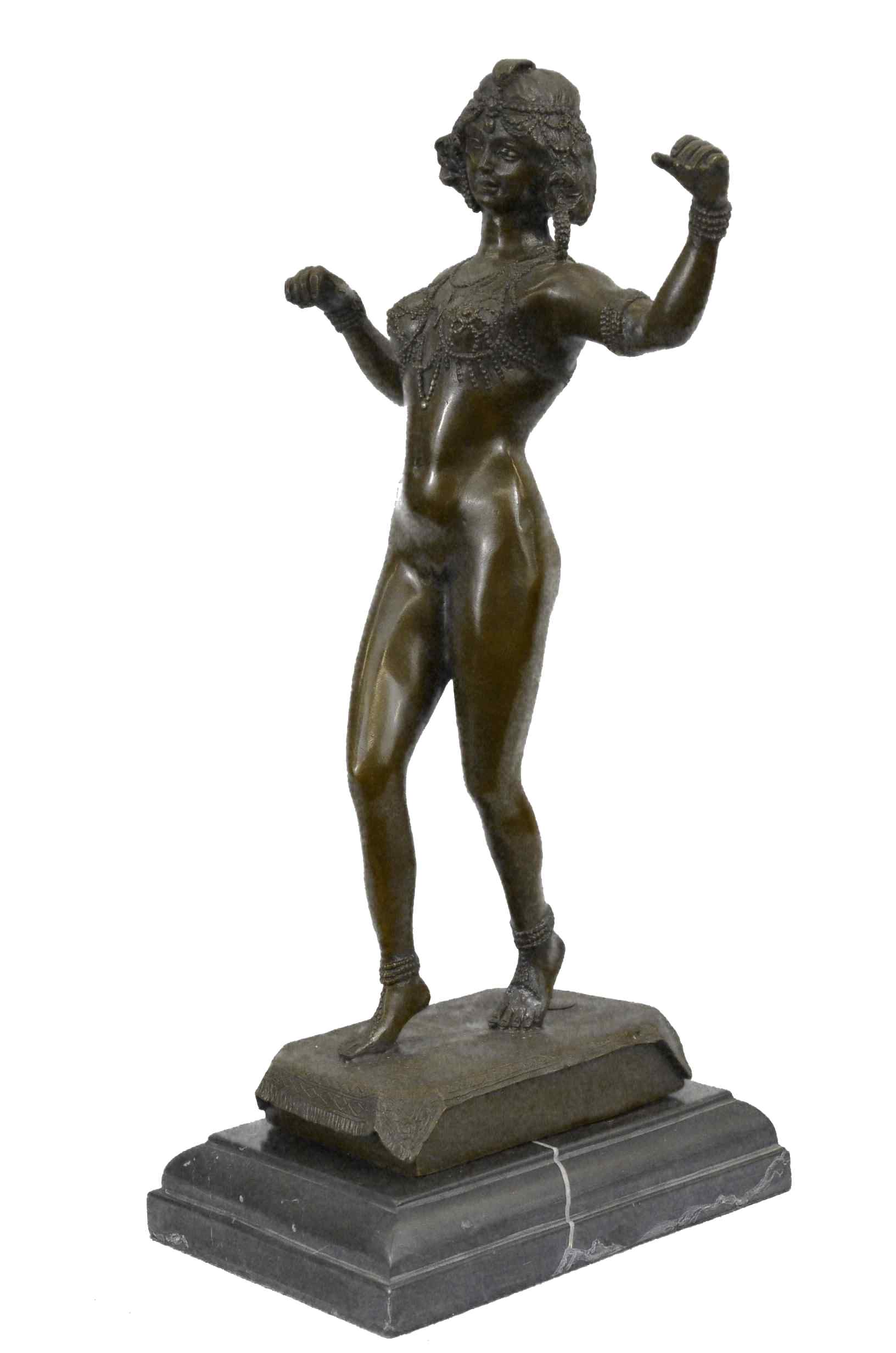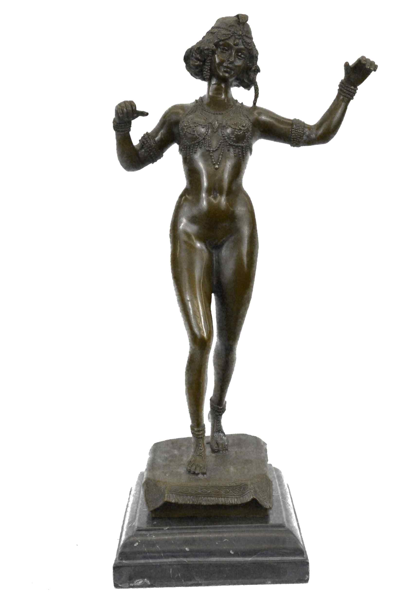 Signed German Preiss Carefree Sensual Sexy Woman Bronze Marble Statue Sculpture