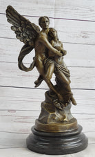 Eros & Psyche Romantic Lovers Angel Bronze Statue Sculpture Figure on Marble Base 13" x 6"