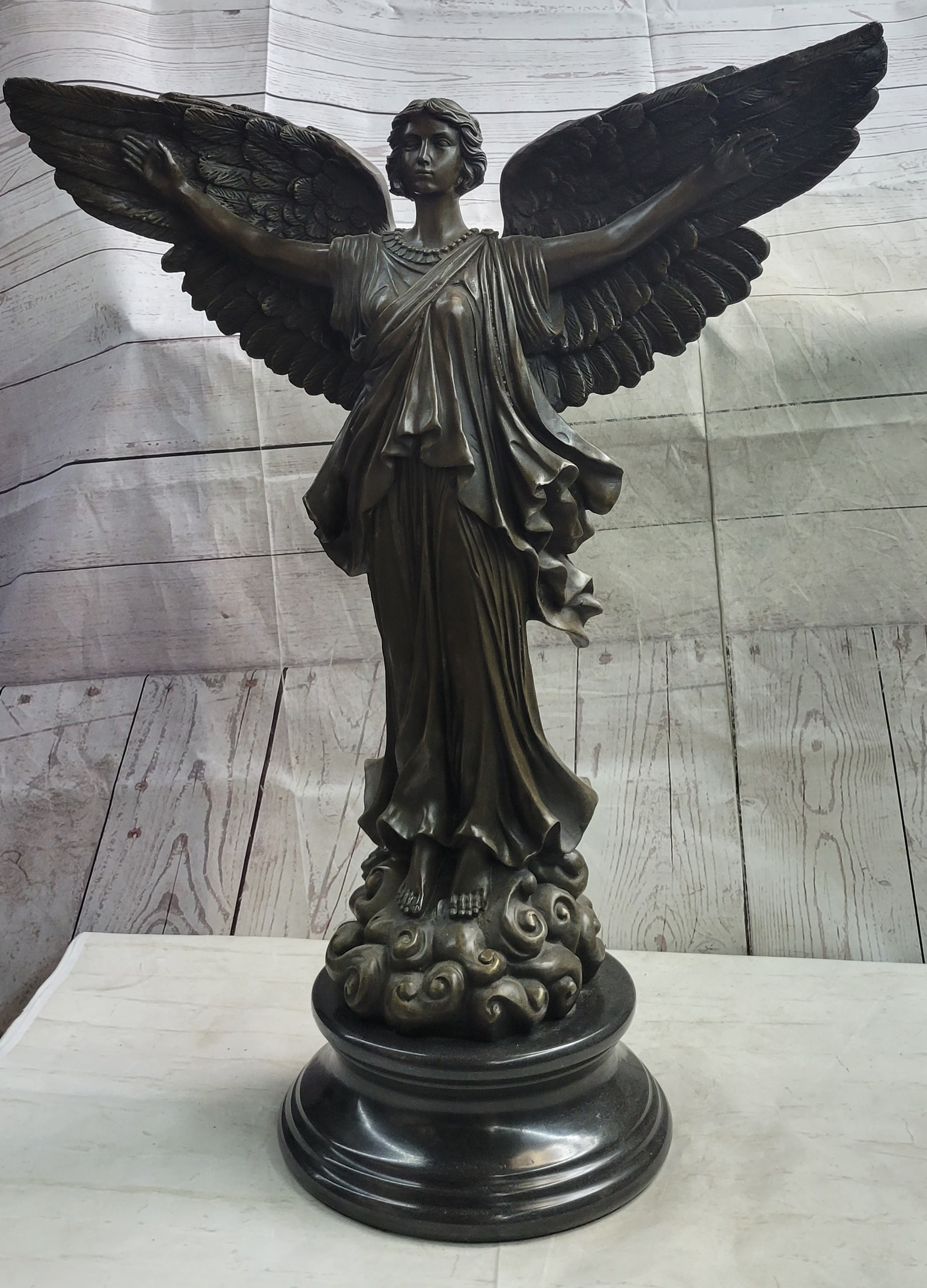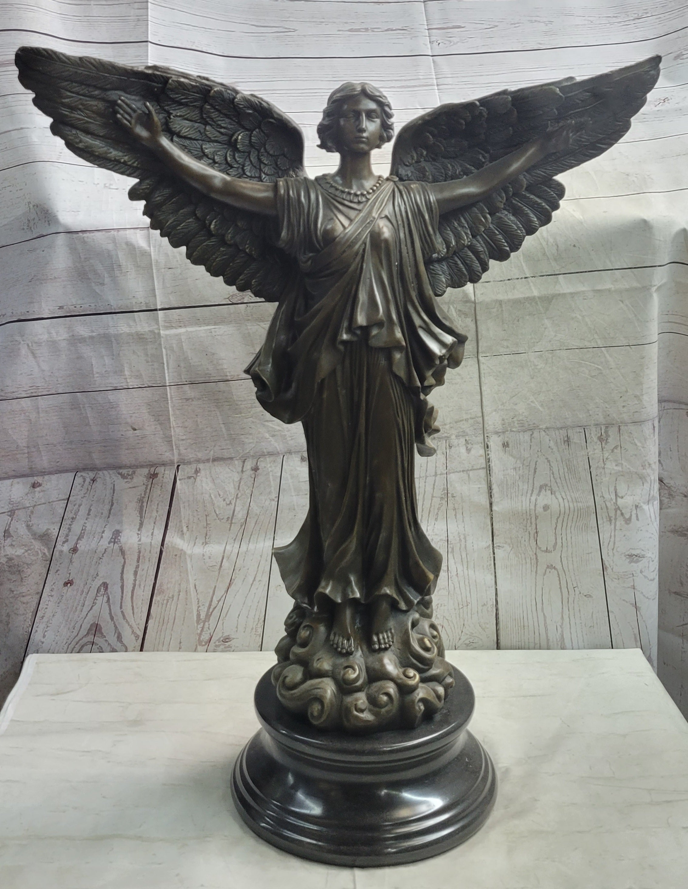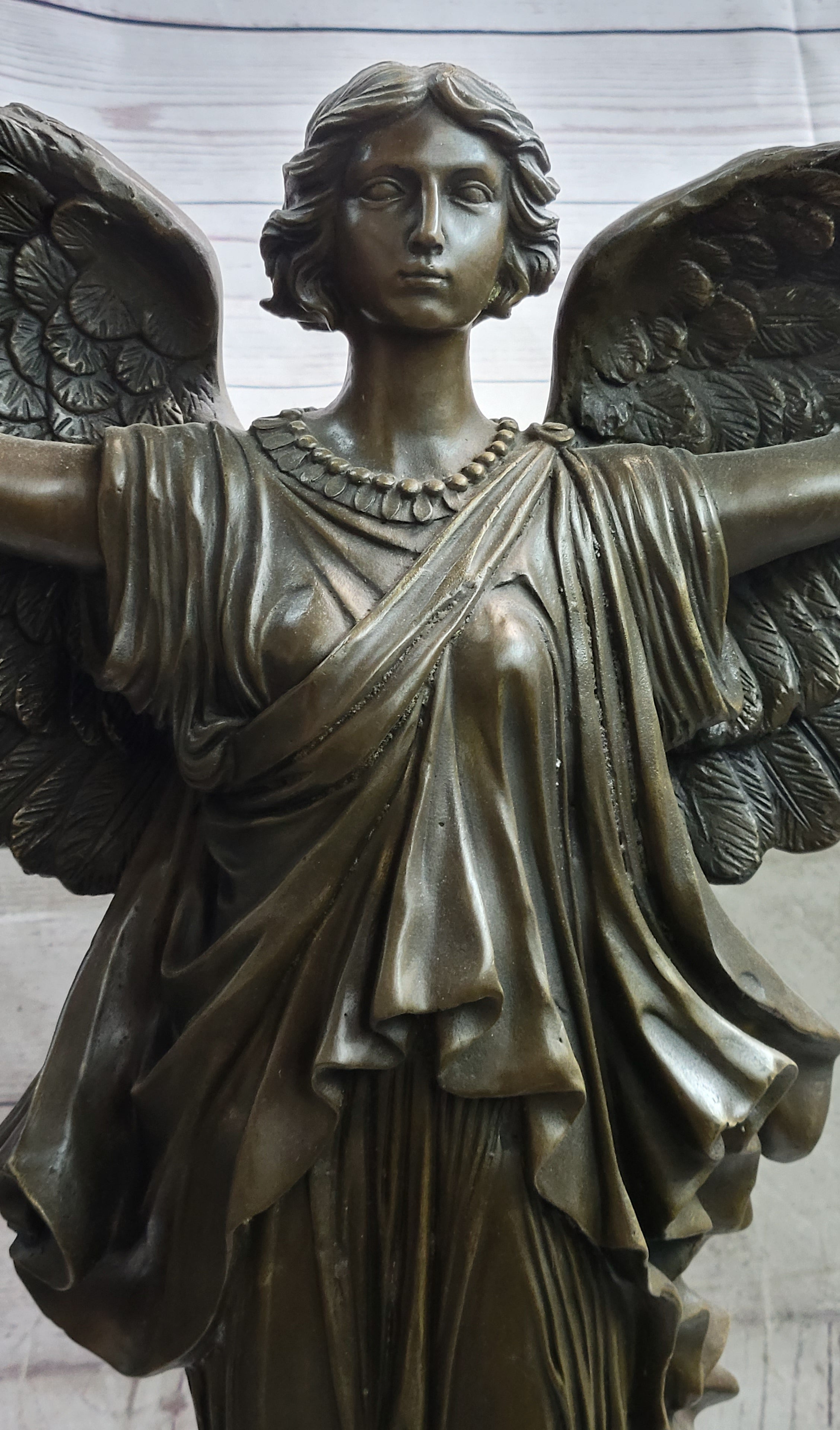 Female Winged Angel Figure Bronze Statue Sculpture Religious Decor Signed Art by Vitaleh
