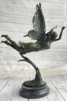Flying Angel Fairy Bronze Figure Figurine Statue Sculpture Marble Base Original Art 16" x 13"
