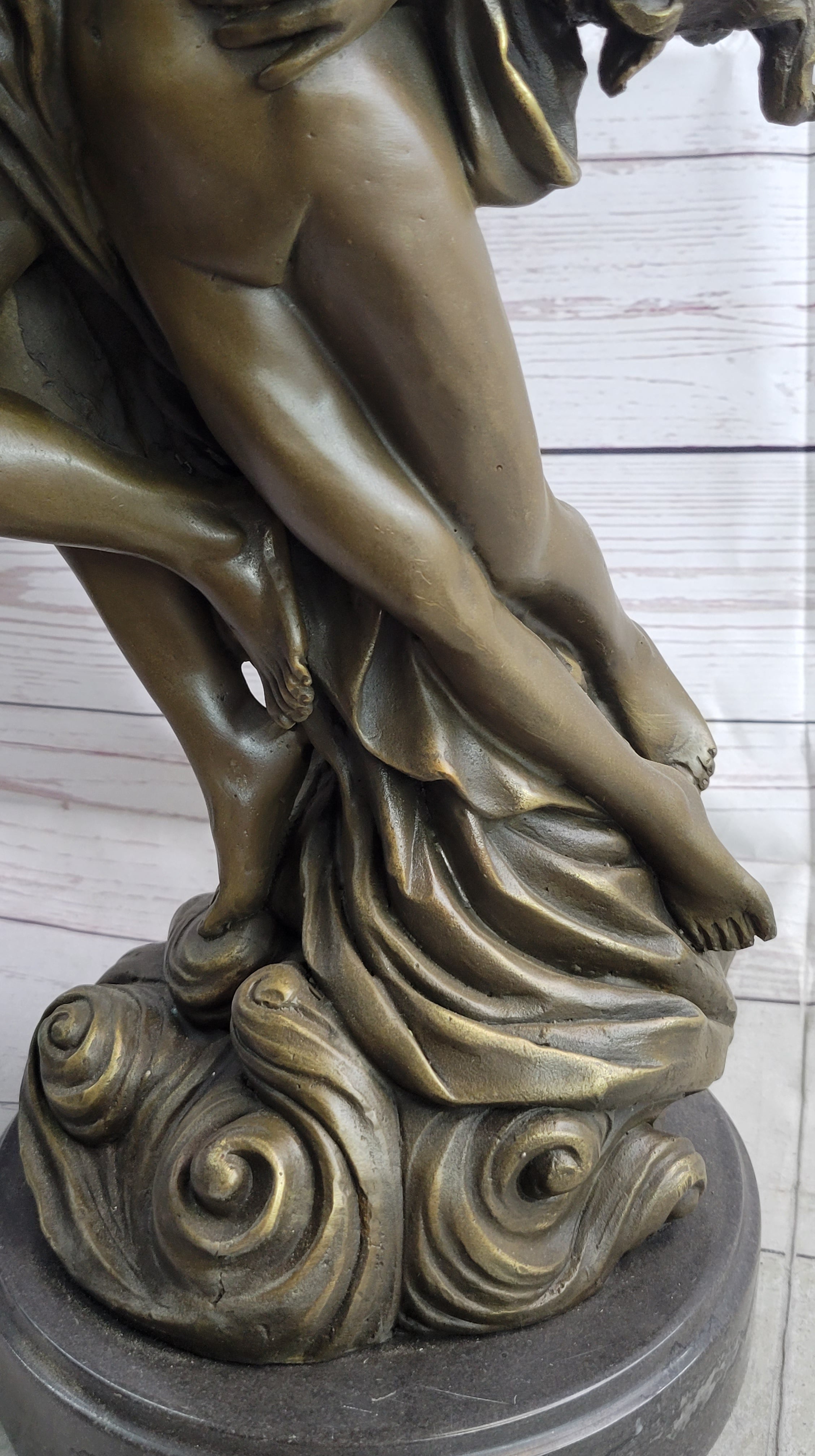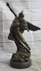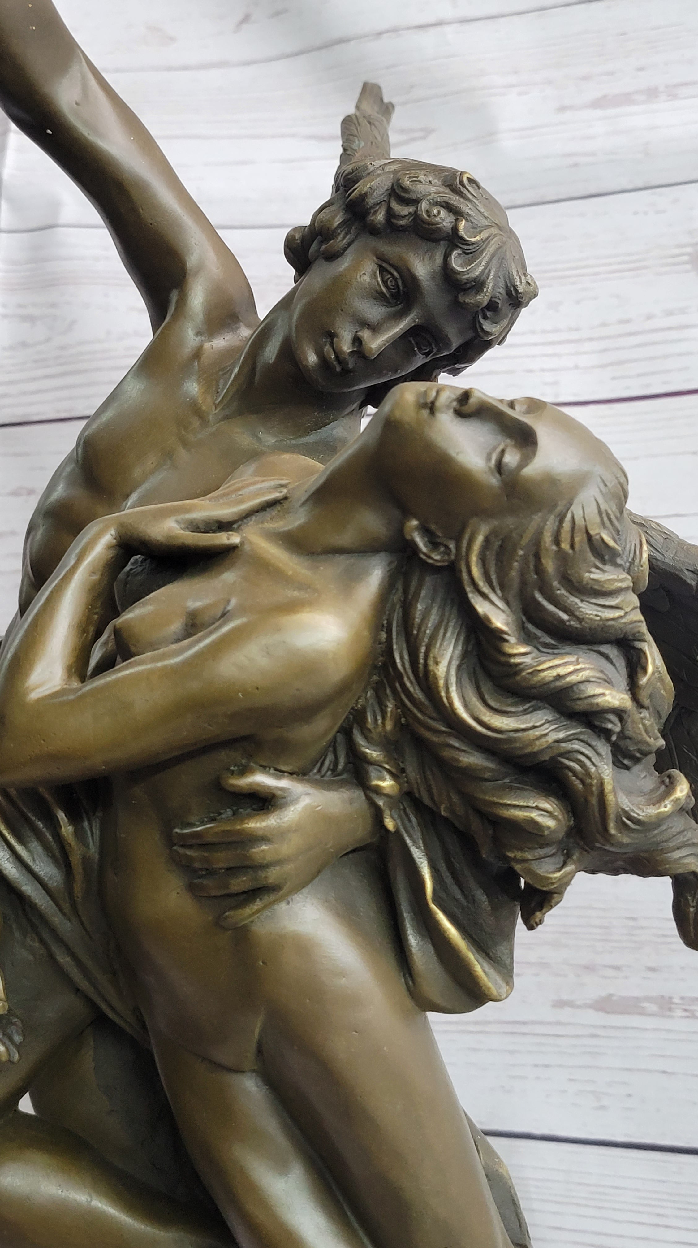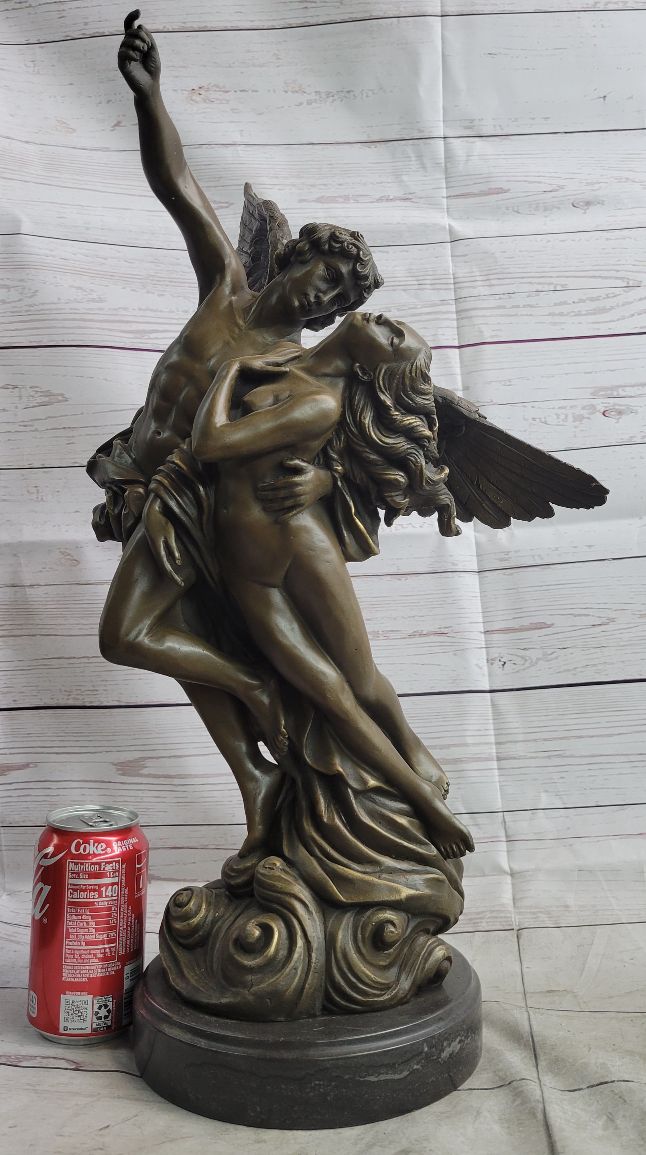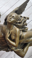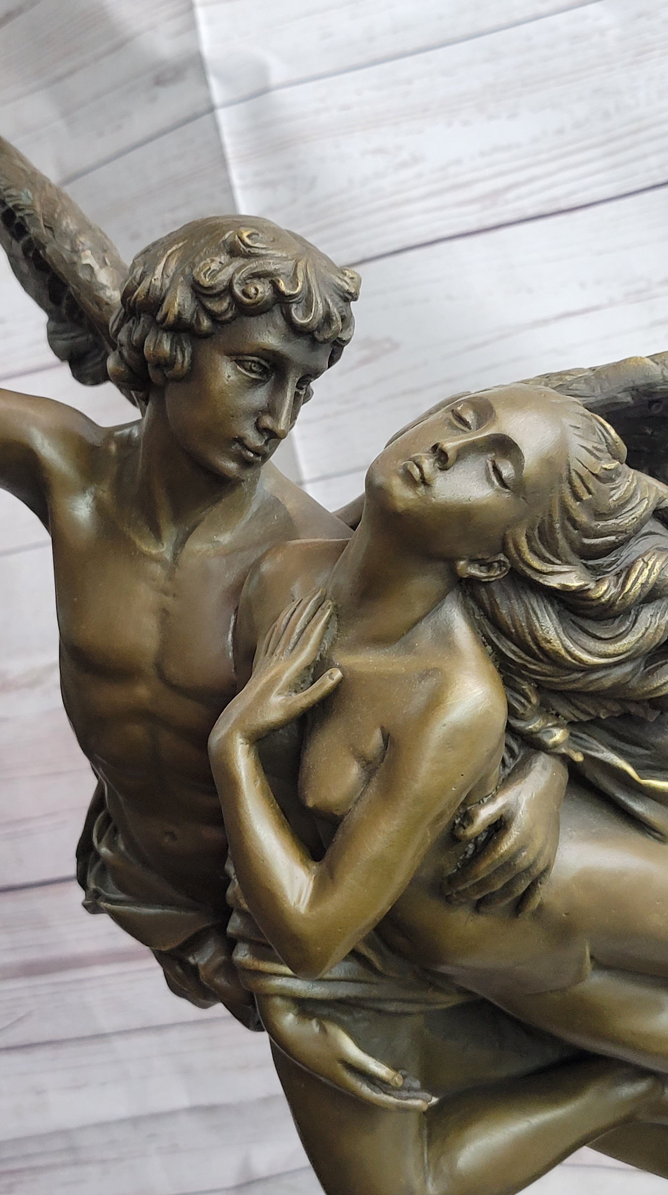 Male Angel Taking Nude Woman Romantic Bronze Sculpture Statue Figure on Marble Base