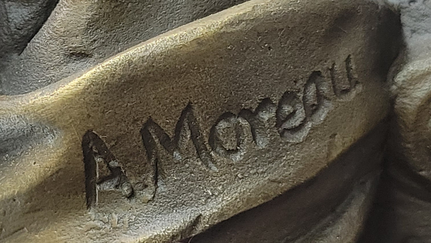 Showcasing an extraordinary tribute to victory and triumph, this remarkable bronze sculpture highlights the awe-inspiring winged Gloria statue, also known as "Gloria Victis," crafted by the esteemed French artist Auguste Moreau. With its commanding presence and impressive scale, this sculpture embodies the spirit of conquest and achievement, serving as a captivating centerpiece that effortlessly captures the essence of classical mythology and timeless artistry. Bearing the distinctive signature Moreau t, the sculpture stands as a testament to the enduring legacy and artistic prowess of its creator, solidifying its status as a coveted treasure for discerning art collectors and enthusiasts alike.