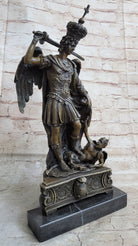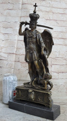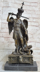 Saint Michael Archangel Slaying Lucifer Devil Religious Art Bronze Sculpture Statue Decor