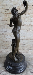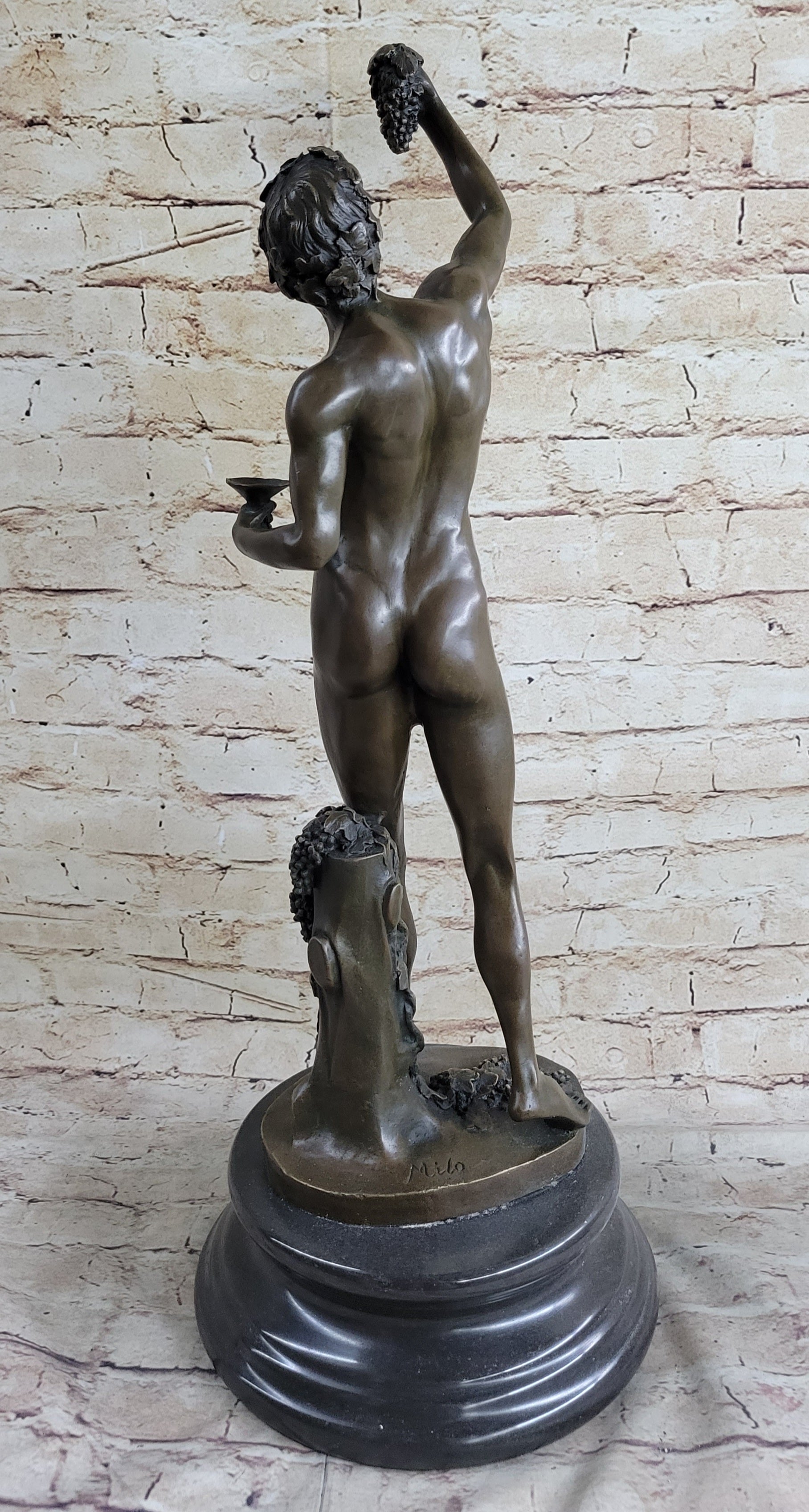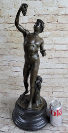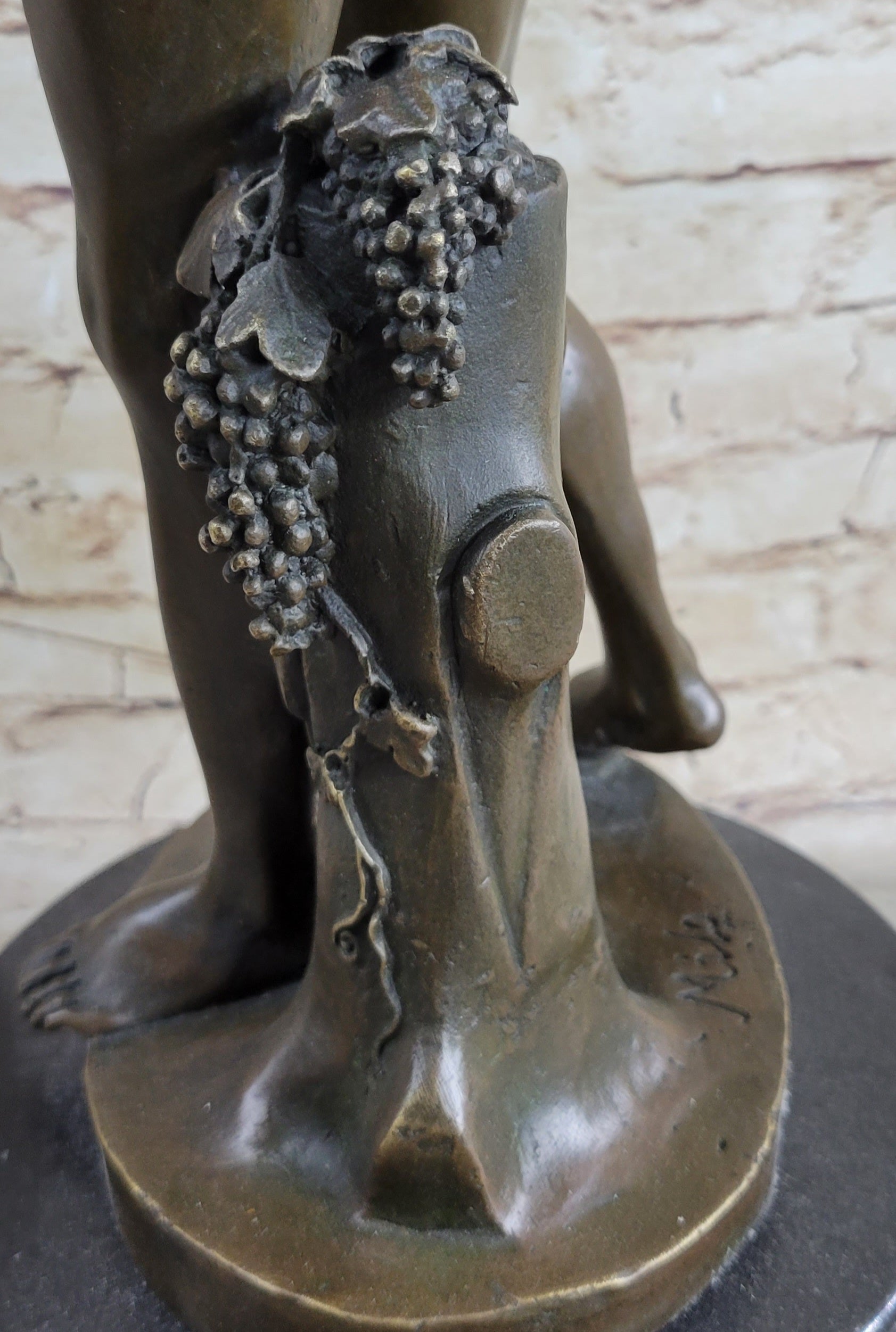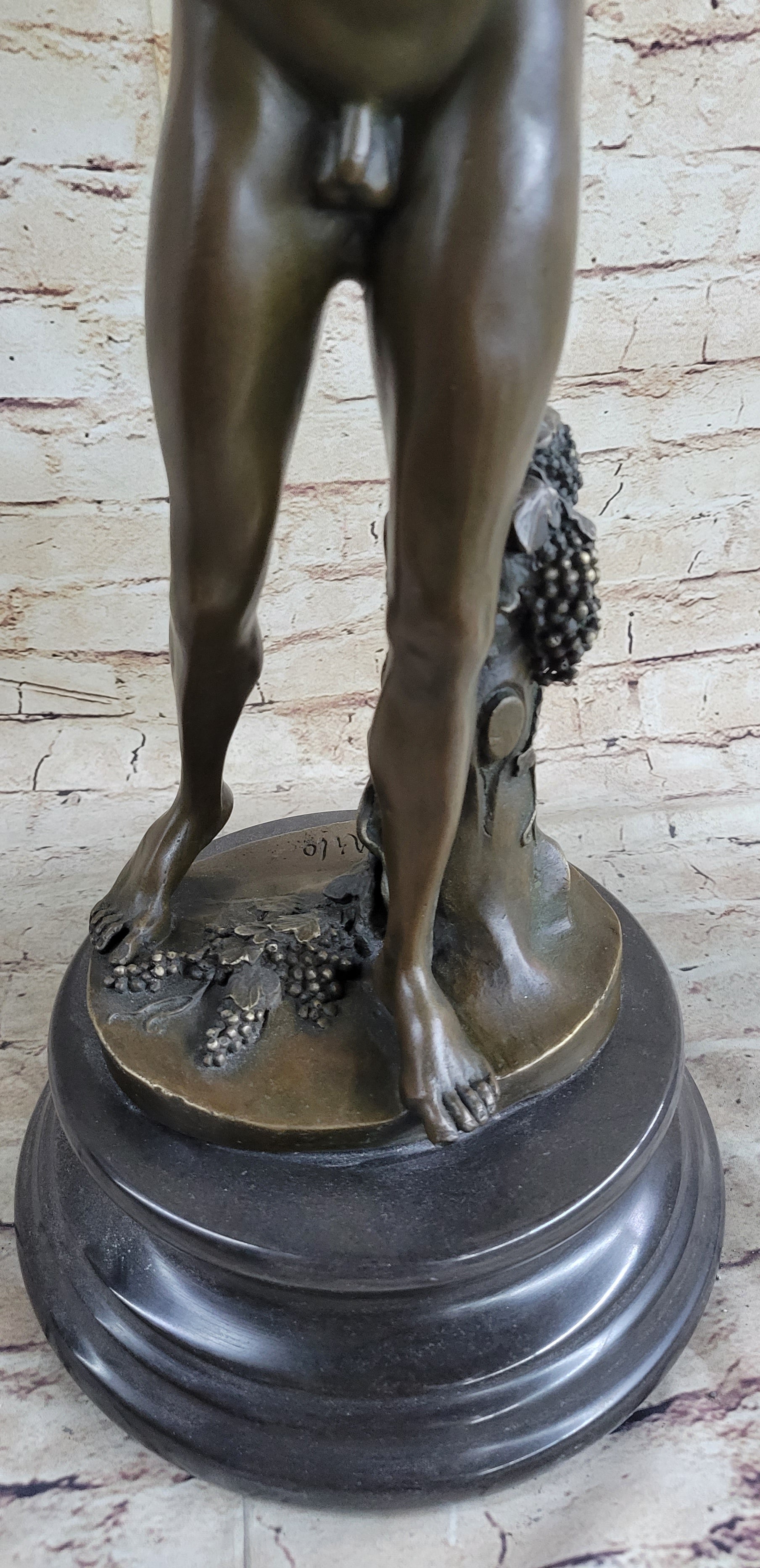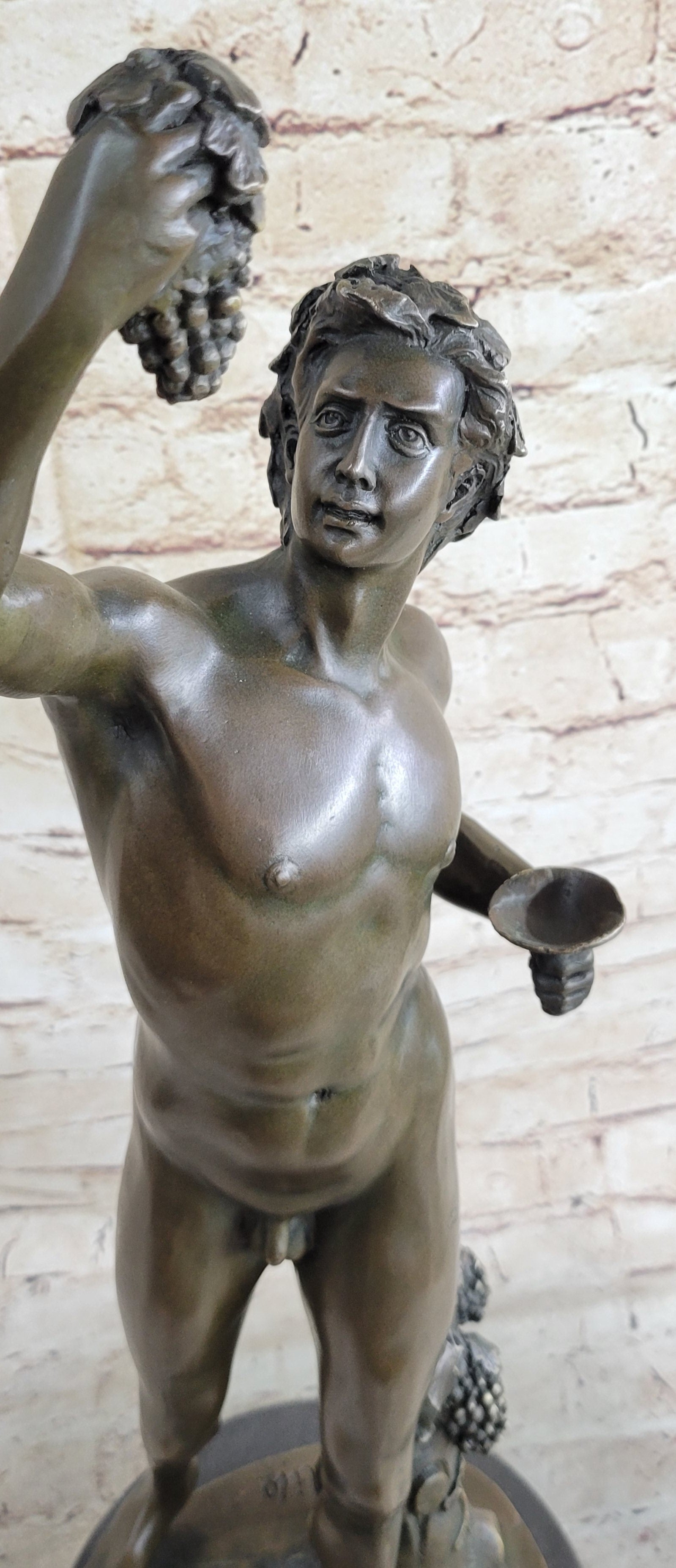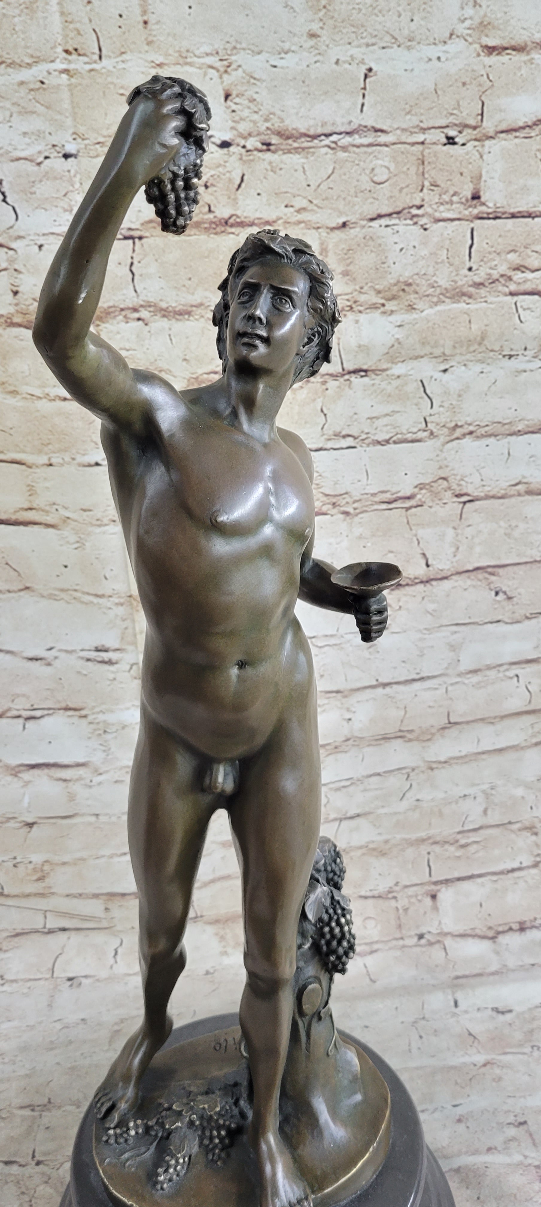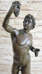 Signed Michelangelo Nude Young Dionysus Greek God Grape Harvest Bronze Figurine