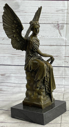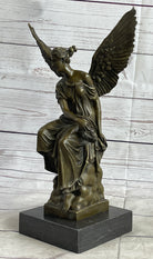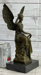 Signed Moreau Angel sits on Celestial Throne Bronze Marble Sculpture Decor