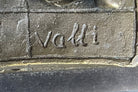 To ensure stability and grace, the sculpture is mounted on a sturdy black marble base, elevating its presence and providing a fitting foundation for display. It proudly bears the signature of the talented artist, Valli, attesting to its authenticity and artistic excellence.