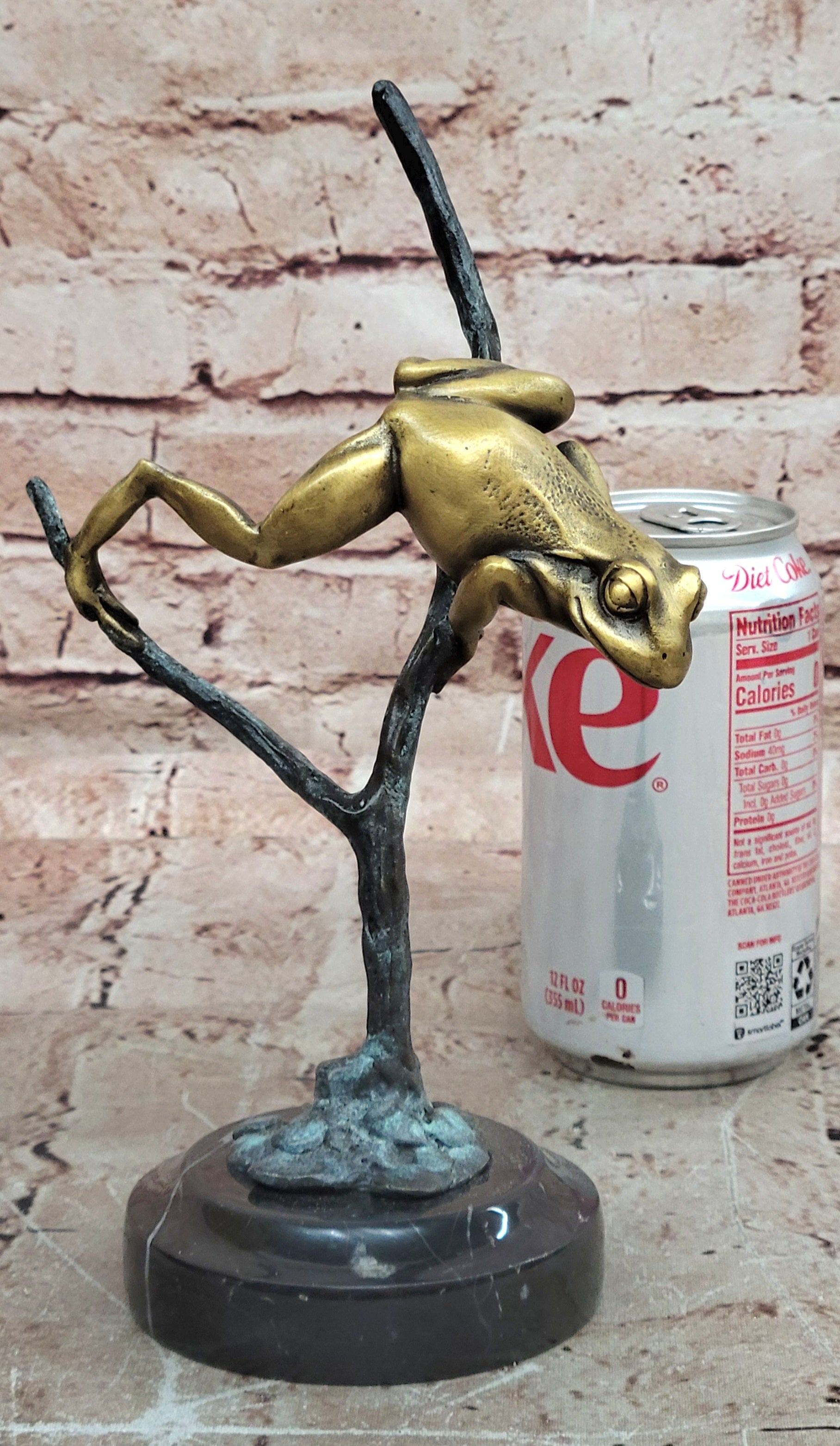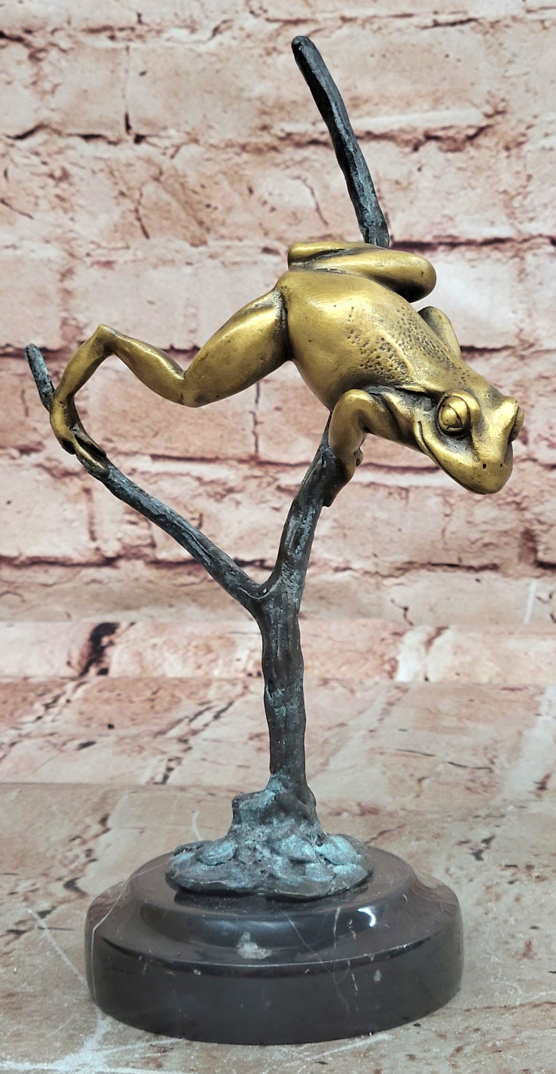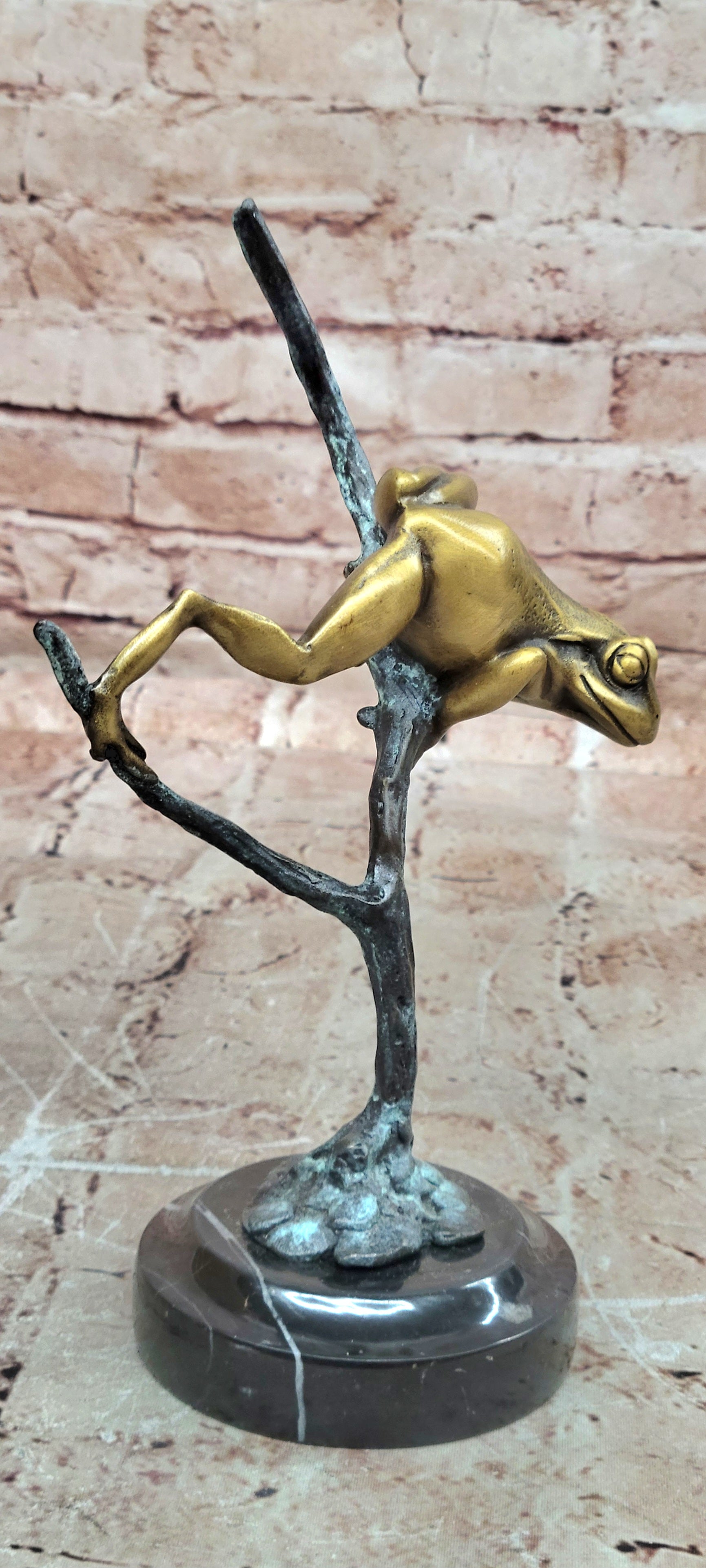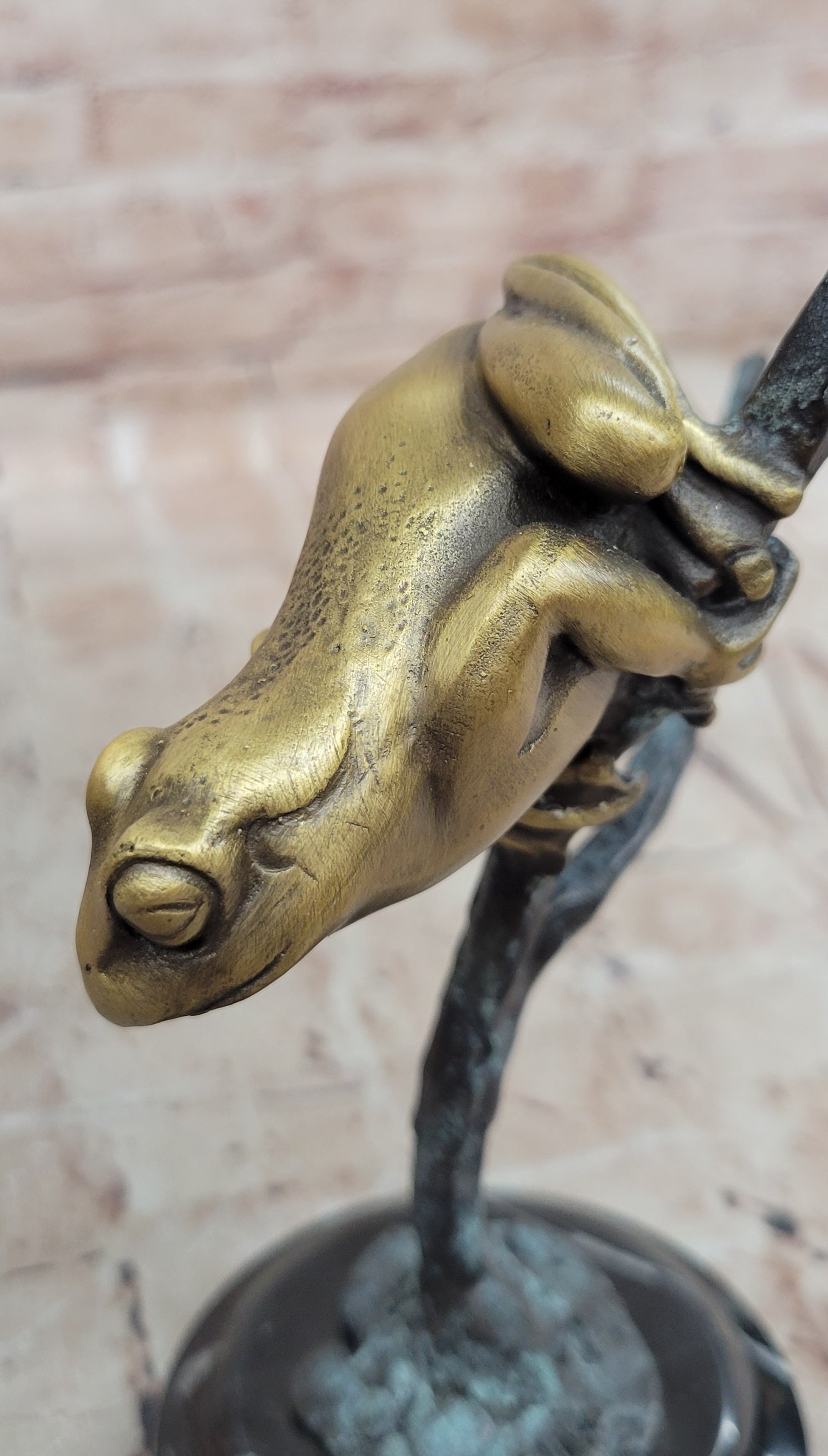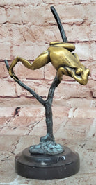 Beautiful Hot Cast Bronze Frog on Branch Marble Base Signed Milo