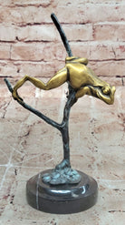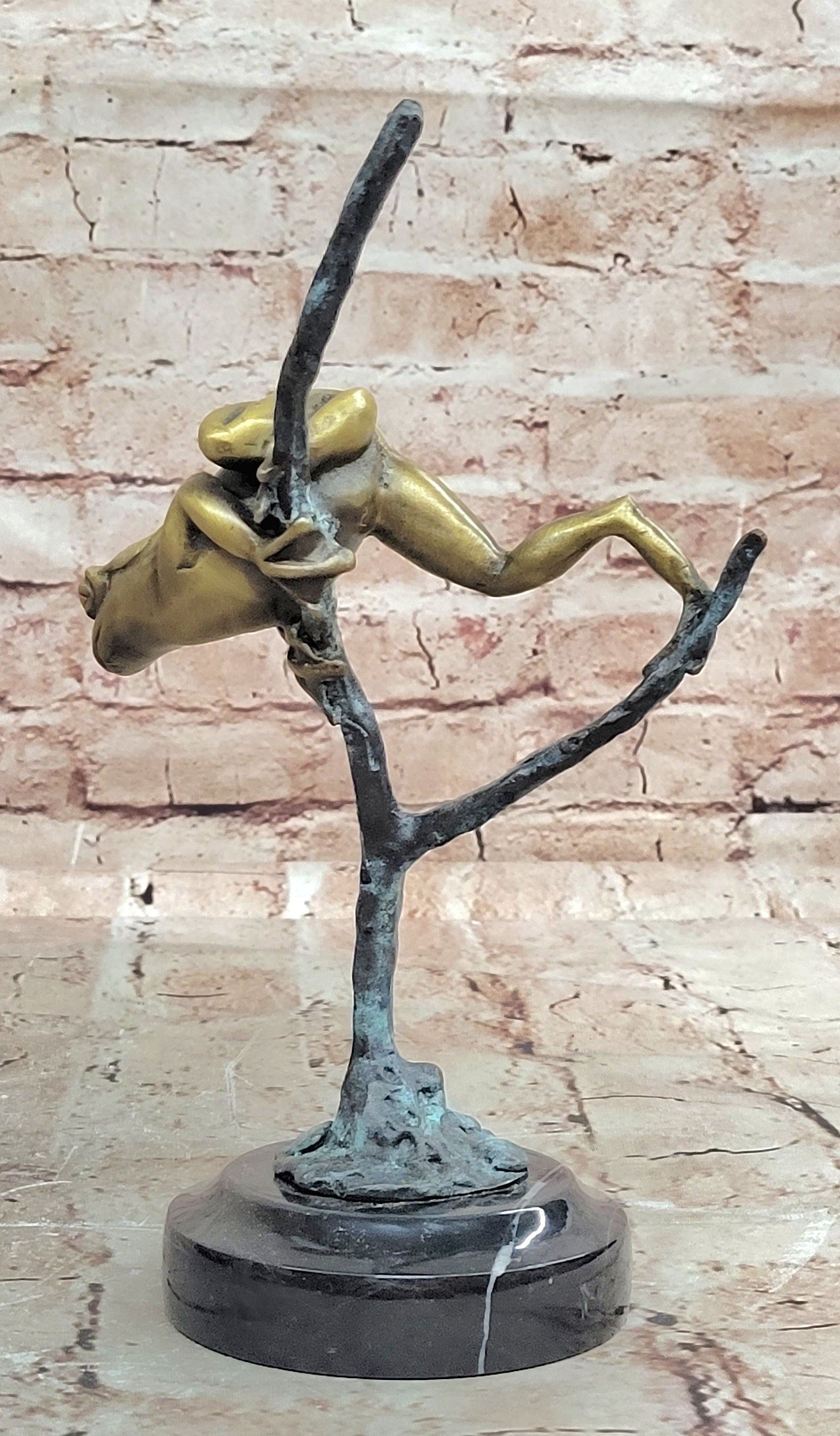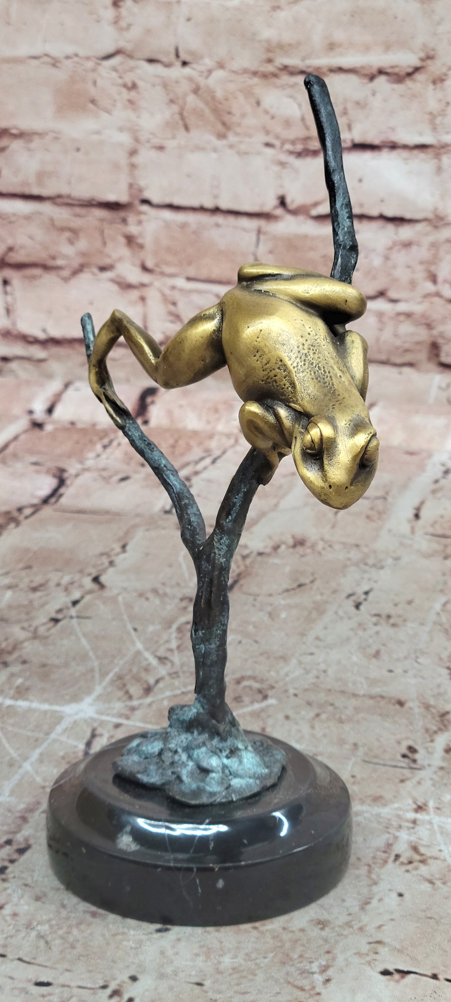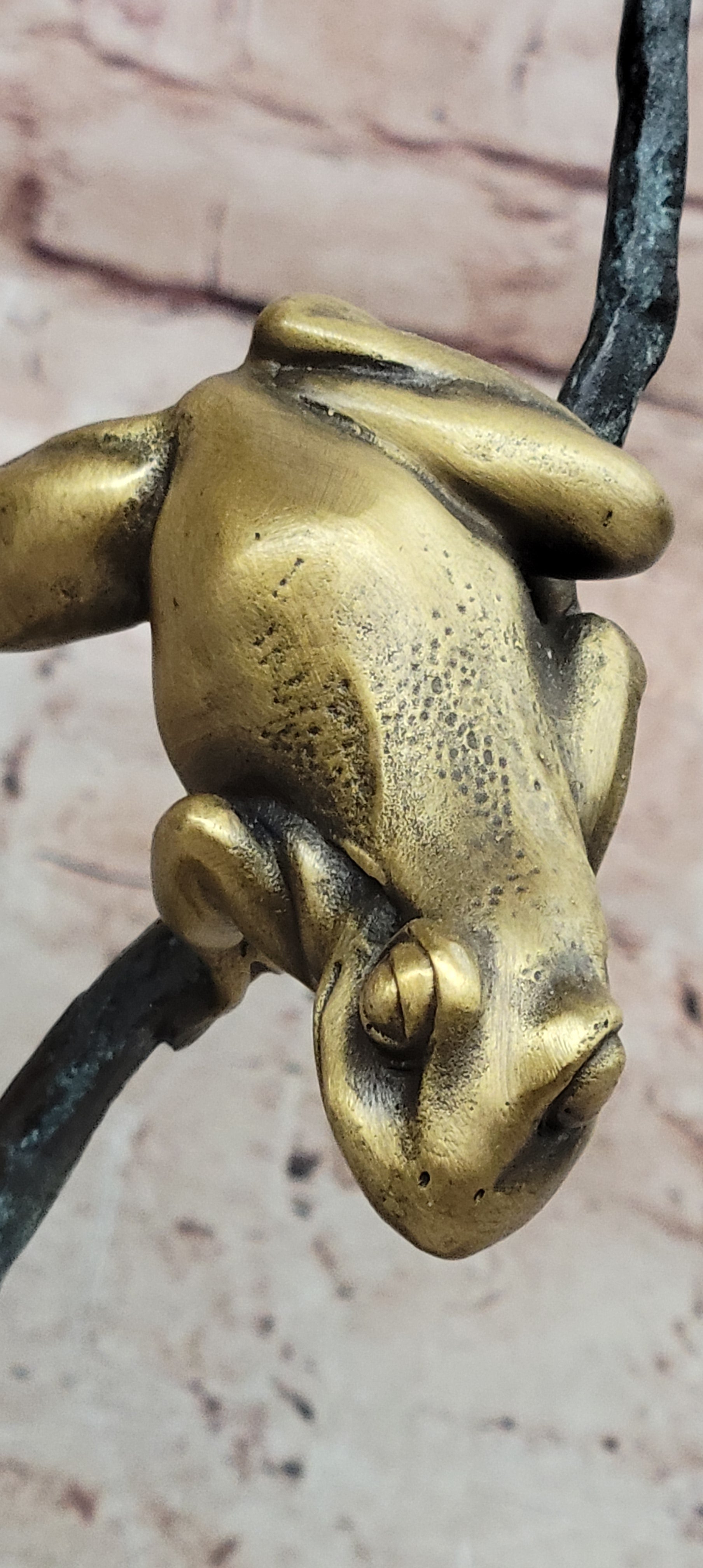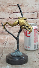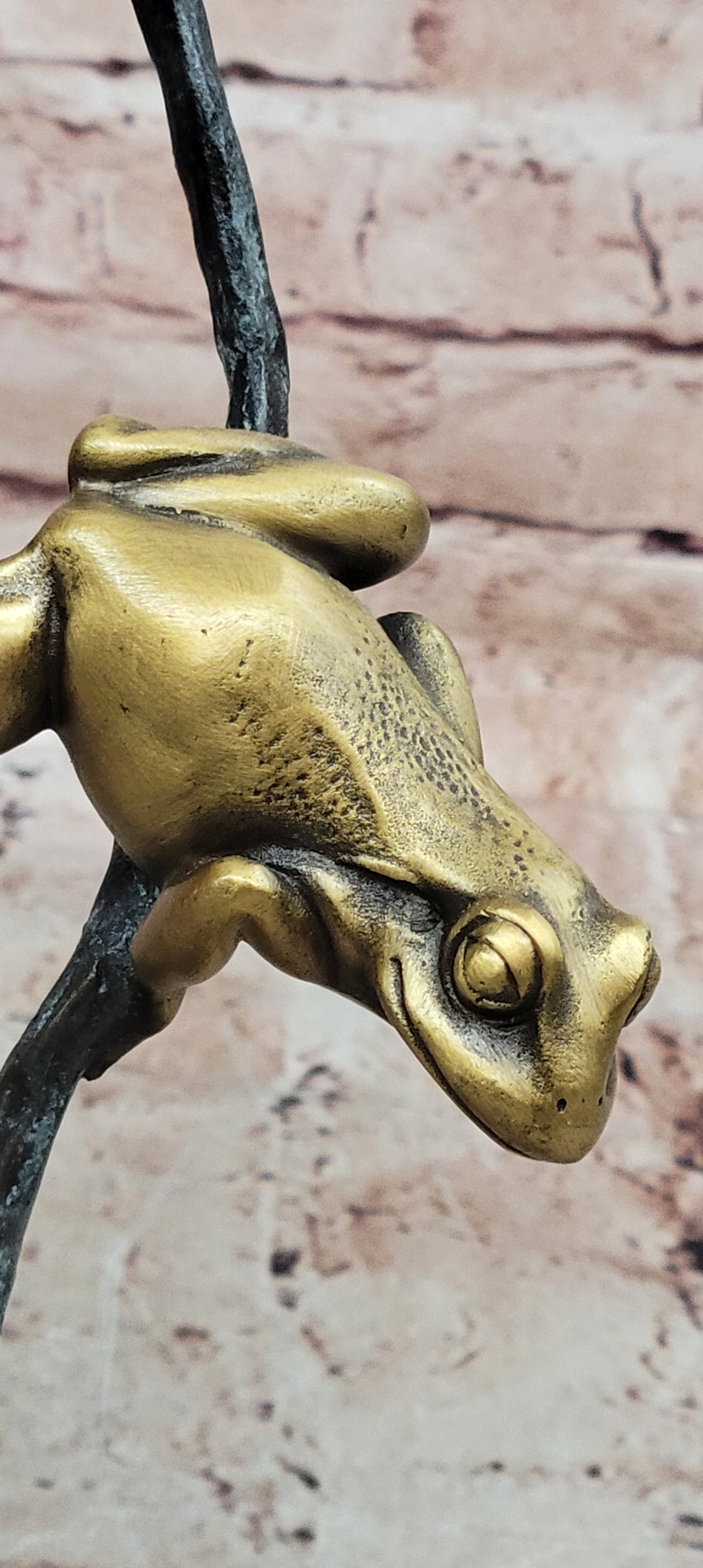 Beautiful Hot Cast Bronze Frog on Branch Marble Base Signed Milo
