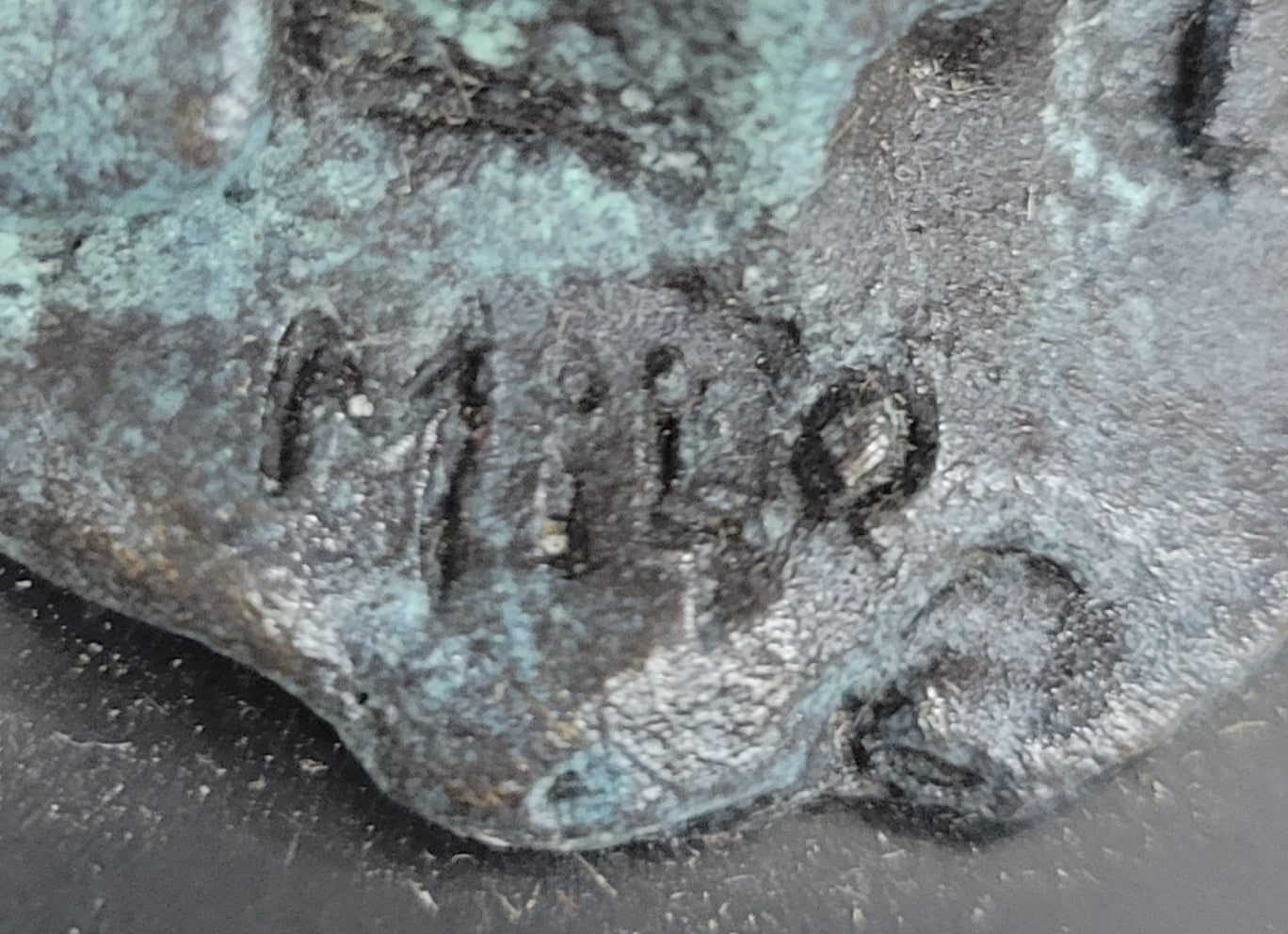 This beautiful hot cast bronze sculpture by Milo depicts a charming frog perched naturally on a branch, capturing a moment of quiet balance and alert curiosity found in nature. The frog’s posture and expressive form convey lifelike character, while the organic flow of the branch adds a sense of realism and movement. The composition blends whimsy with fine artistic detail, making it an appealing accent for both traditional and contemporary spaces. Handmade using the traditional lost wax method, this sculpture reflects exceptional craftsmanship and attention to detail. The multicolor patina enriches the bronze surface, bringing depth and vibrancy to the frog’s textured skin and the branch beneath it. Each subtle color variation enhances the naturalistic quality of the piece, highlighting Milo’s skill in transforming wildlife subjects into refined works of art. Mounted on a polished round black marble base, the sculpture offers stability and an elegant contrast to the warm bronze tones. Signed by the artist Milo, this genuine bronze artwork is ideal for animal lovers, nature enthusiasts, and collectors of fine sculpture. Perfect for display on a desk, shelf, or table, it adds character, artistry, and a touch of nature-inspired charm to any home or office décor.