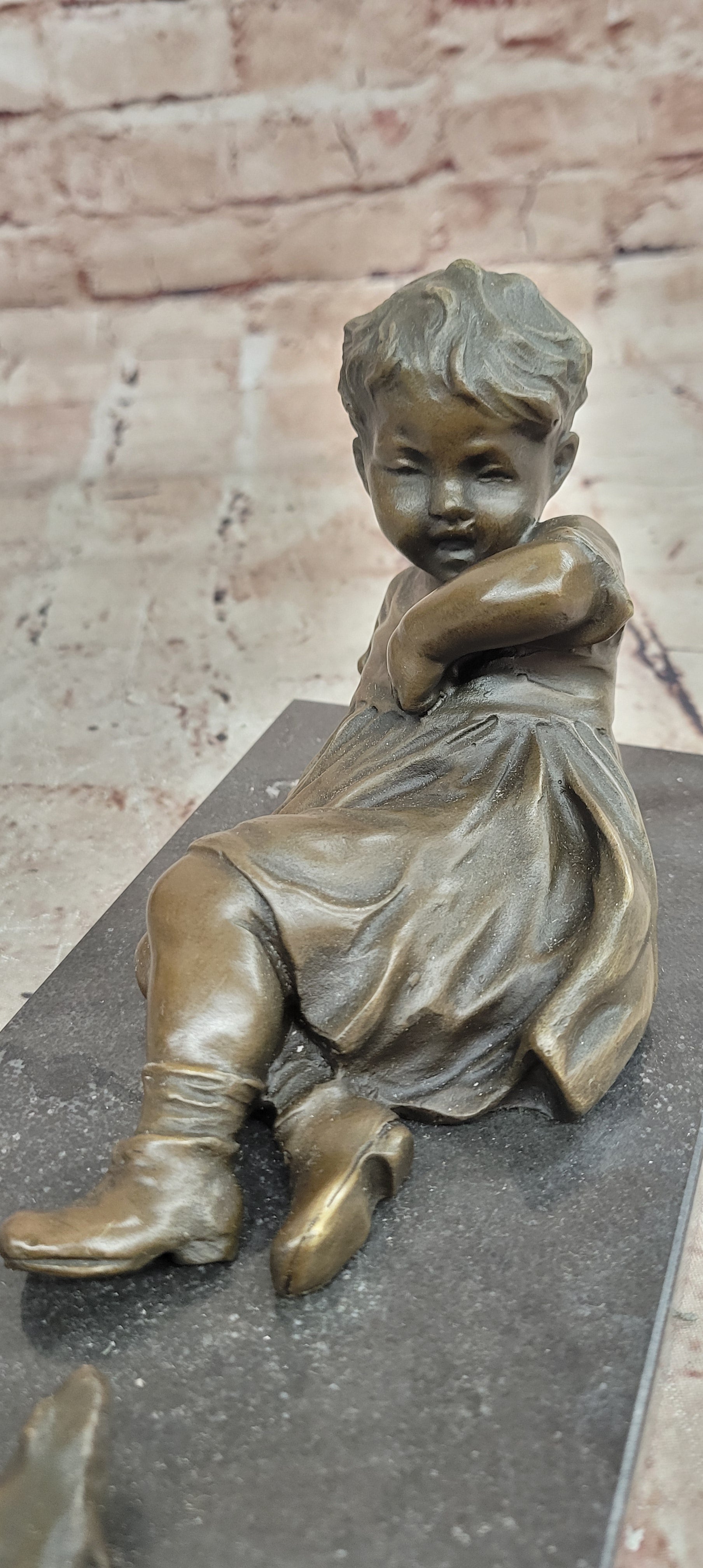 Bronze Child Sculpture – Seated Toddler w/ Frog Figurative Art Statue