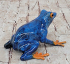 The Frogman Frog Bronze Sculpture is an exquisite piece of art that stands as a testament to fine craftsmanship and artistic expression. This collectible features a beautifully detailed frog, sculpted with meticulous attention to anatomical accuracy and character. The frog is captured in a dynamic, lifelike pose that exudes both whimsy and elegance, making it a captivating addition to any home or office. Crafted from high-quality bronze, the sculpture boasts a rich, Royal blue patina, complemented by vibrant orange accents that highlight the frog's form and bring a burst of color to the piece.