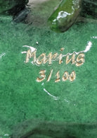 Signed and numbered by the artist Marius, this sculpture is a true collector's item, offering both authenticity and exclusivity. The use of green and black enamel enhances the sculpture's visual appeal, adding depth and contrast to the frog's intricate features. The vibrant colors create a striking contrast against the rich bronze backdrop, capturing the eye and inviting closer inspection.