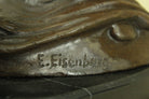 Here is a sweet styled Art Deco bronze on marble base, created by the famous artist E.Eisenberg. It displays a little schoolgirl that is sad. The little sculpture is standing on oval marble base and was designed by the well known artist. This figure is made of finest bronze material and was casted in our foundry in an amazing agreement to the original. Artist Eisenberg signed the sculpture at the upper side of the bronze socket. This true detailed museum bronze cast is a focal point in every exhibition! It can be called an absolute eye-catcher for friends of bronze sculptures.Bronze Dimensions with Marble Base:Height 11" x Width 6"
