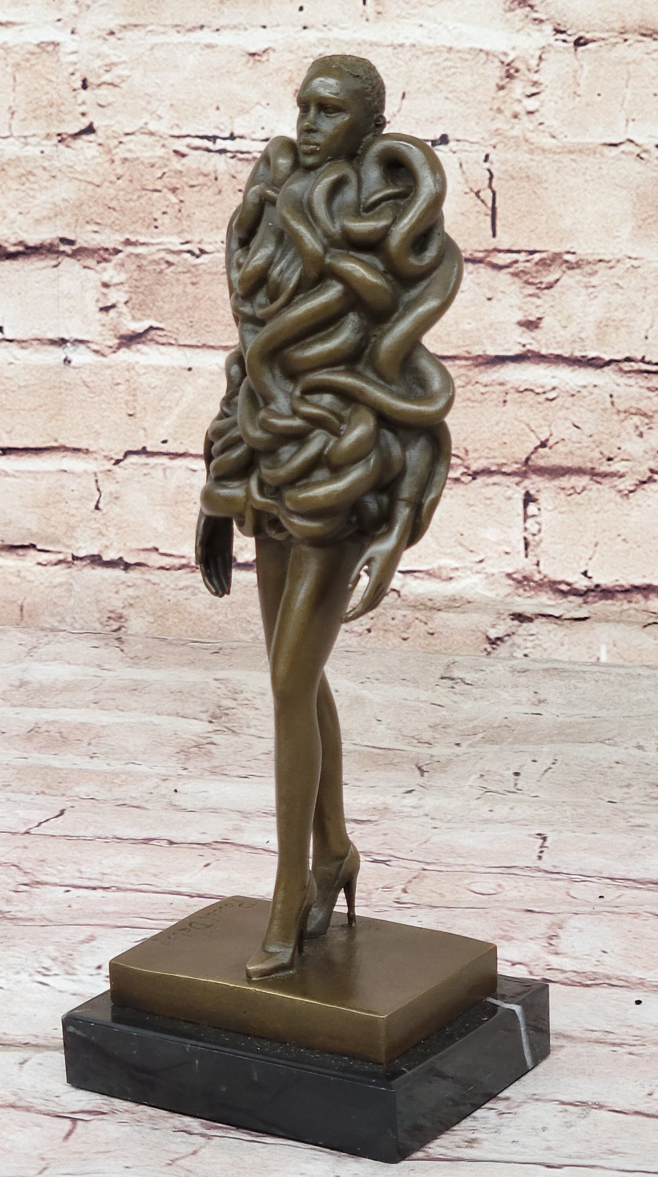Contemporary Art Bronze Sculpture of Woman Wearing Snakes - Unwavering by Pascal Delor
