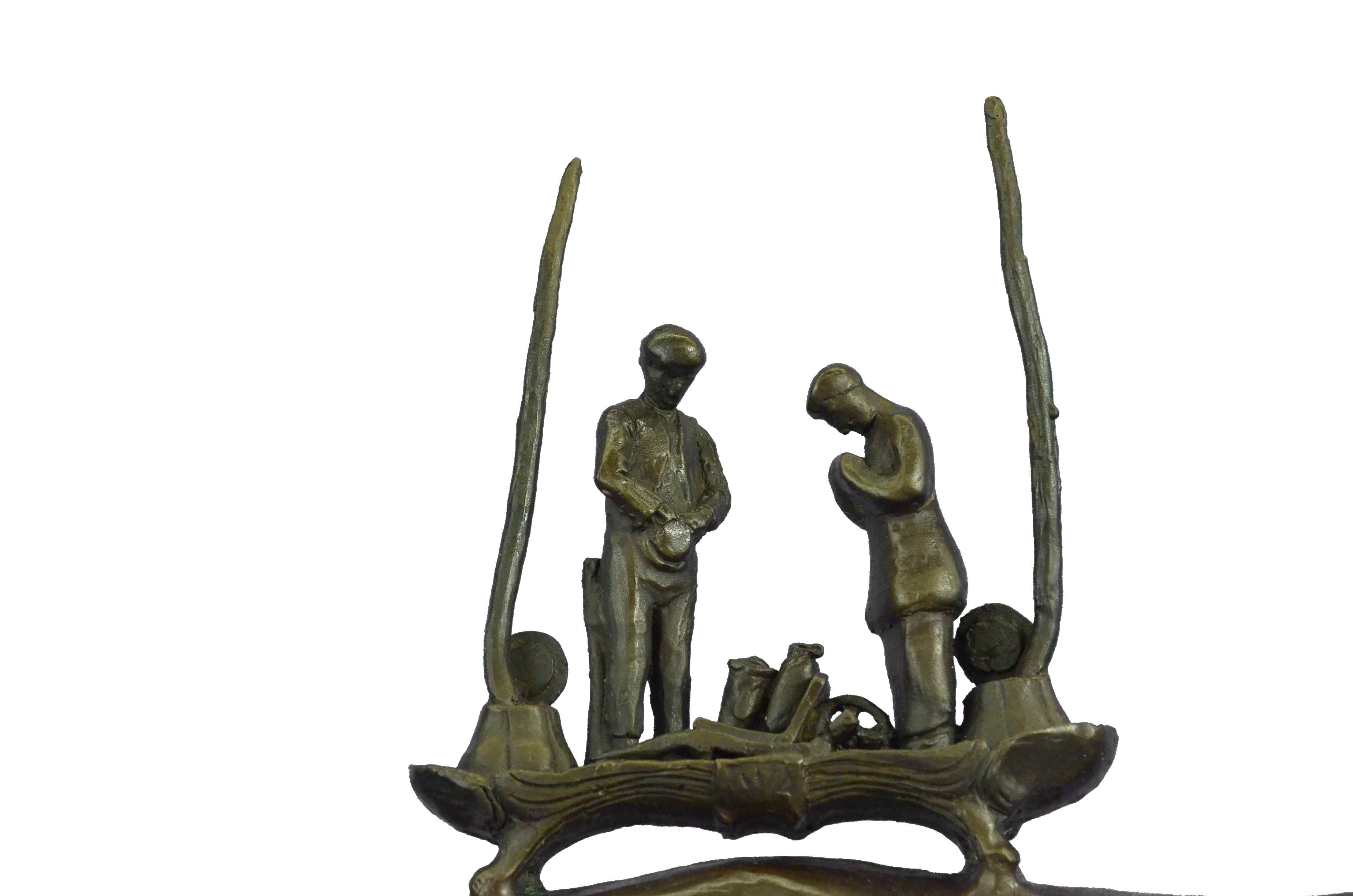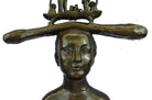 Several of Dali`s obsessions translate into elements of this now iconic work. Atop the head of the naked woman is a kind of hat comprised of a bread loaf and a couple, the latter based on Jean Millet`s widely-known painting, The Angelus. Most anyone who follows Dali`s art knows that this painting intrigued, haunted and obsessed Dali all his life - ever since he first saw a reproduction of it hanging in his grade school. Millet`s famous picture is of a poor peasant couple facing each other in a field, lamenting the death of their child. The woman`s hands ore clasped together and her head is bowed in a prayerful pose. Dali`s various interpretations of the motif are essentially sexual suggesting that the woman is akin to the preying mantis, paging pre-coital homage to her mate before eventually devouring him. According to Dali the man had his hat lowered to conceal an erection. This allusion suggests a key Freudian concept of castration anxiety that Dali was keen to explore within his `paranoid-critical` method. In another depiction Millet`s Architectonic Angelus, Dali uses biomorphic forms that depict the probe of the female mantis penetrating the male, its phallic tenure by a female alluding to the ideal androgyny that had possession of both male and female genitalia. This sculpture was casted using the ancient "Lost Wax Method" using two tone brown patina. Mounted atop a black marble base, signed Dali.Original or Reproduction: Reproduction