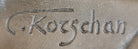 The signature of the esteemed artist, C. Korschann, adorns the sculpture, ensuring its quality and adding to its collectible value. This piece is not only a work of art but also a conversation starter that invites contemplation of the stages of life and the allure of artistry. Placing this captivating bronze sculpture in any setting will infuse it with sophistication, charm, and a touch of youthful spirit.Bronze Dimensions: Height 6 1/2" X Width 12"