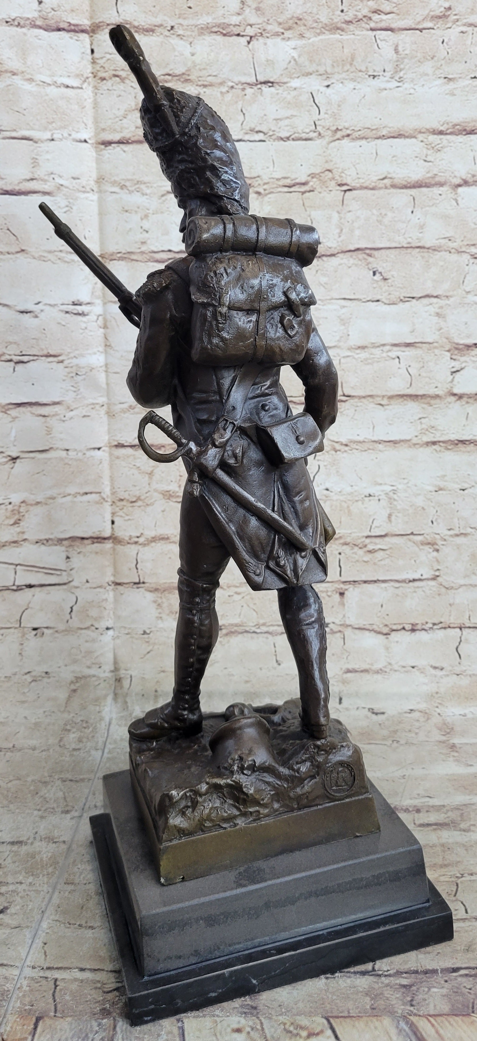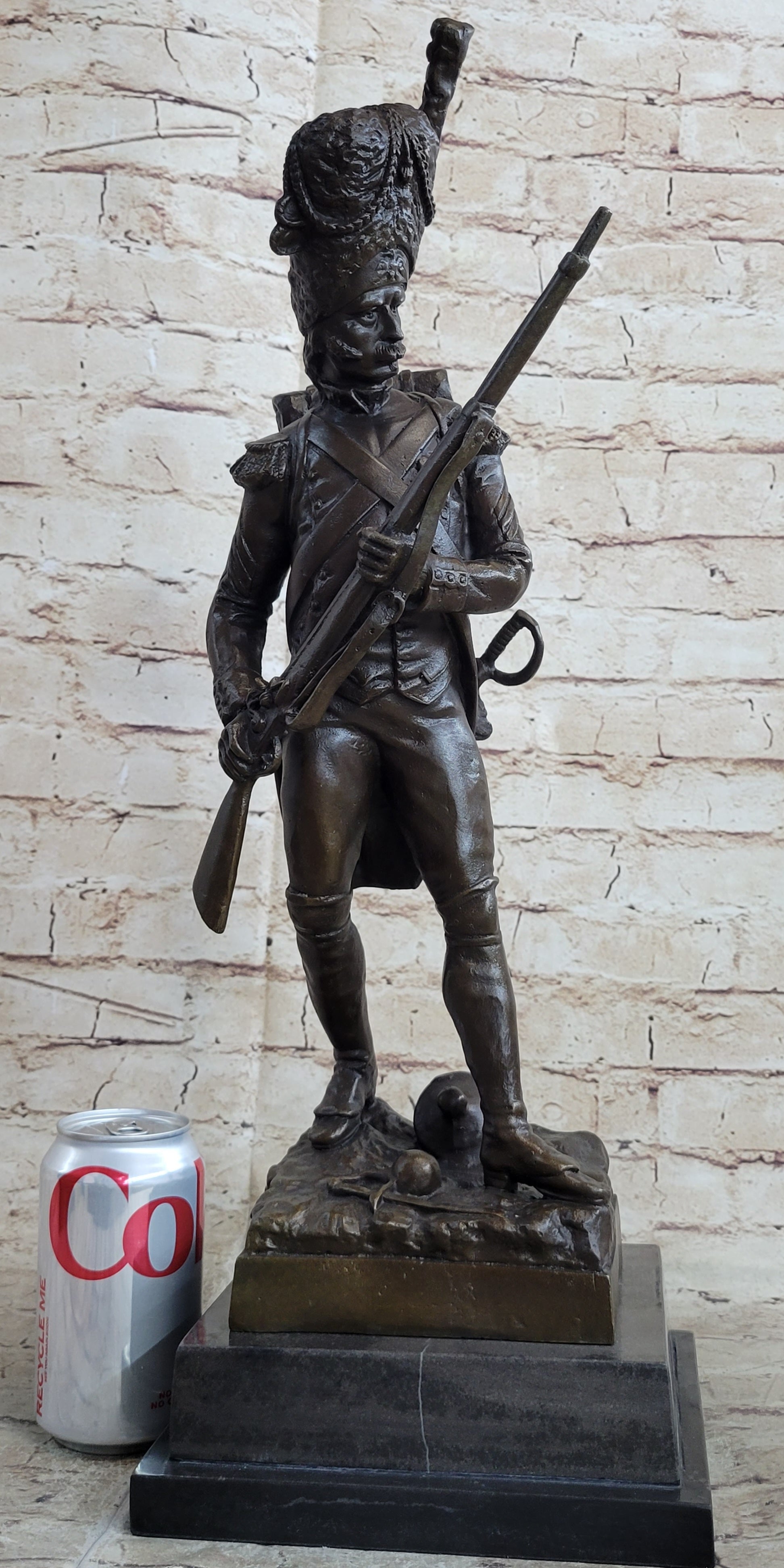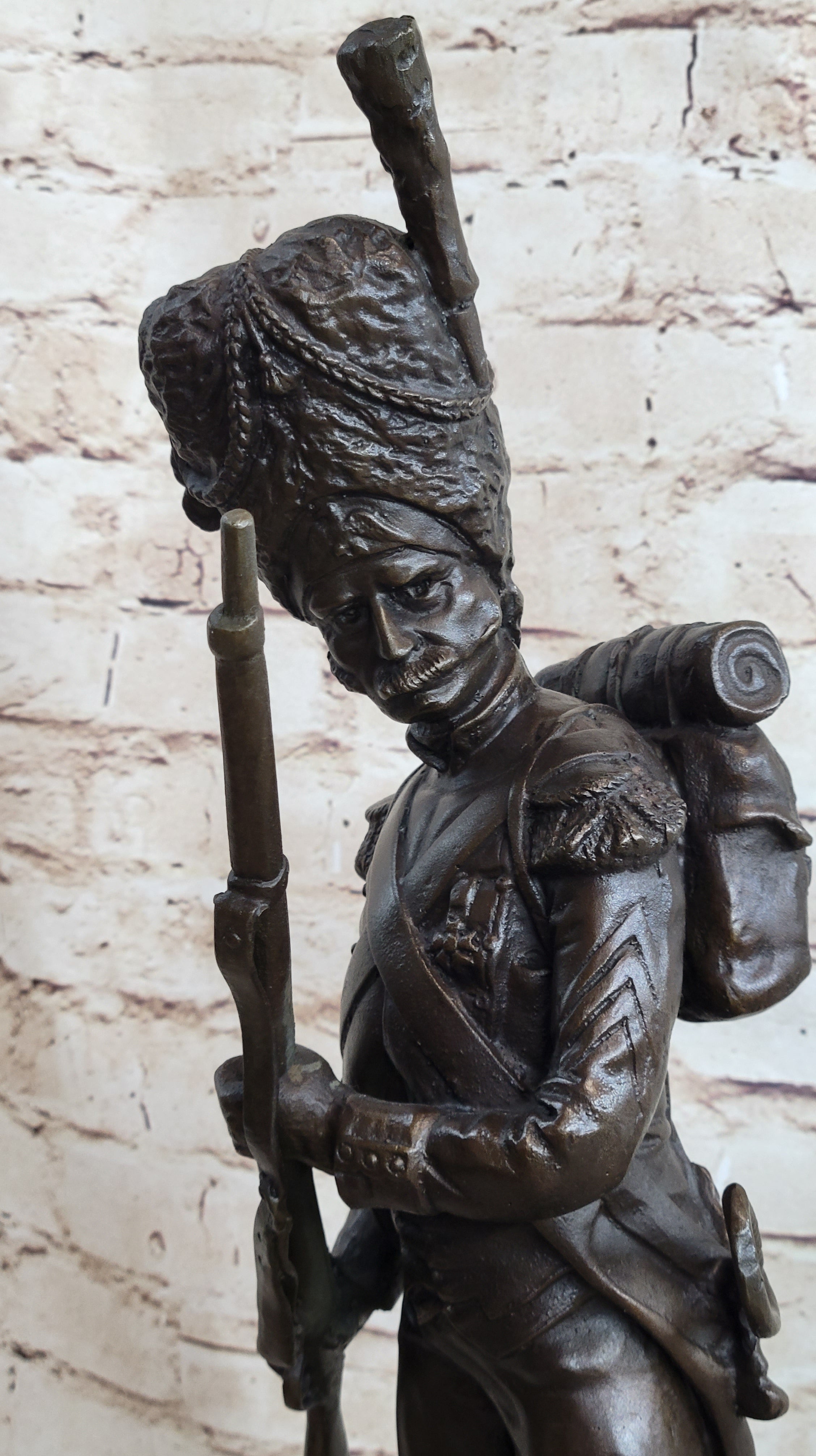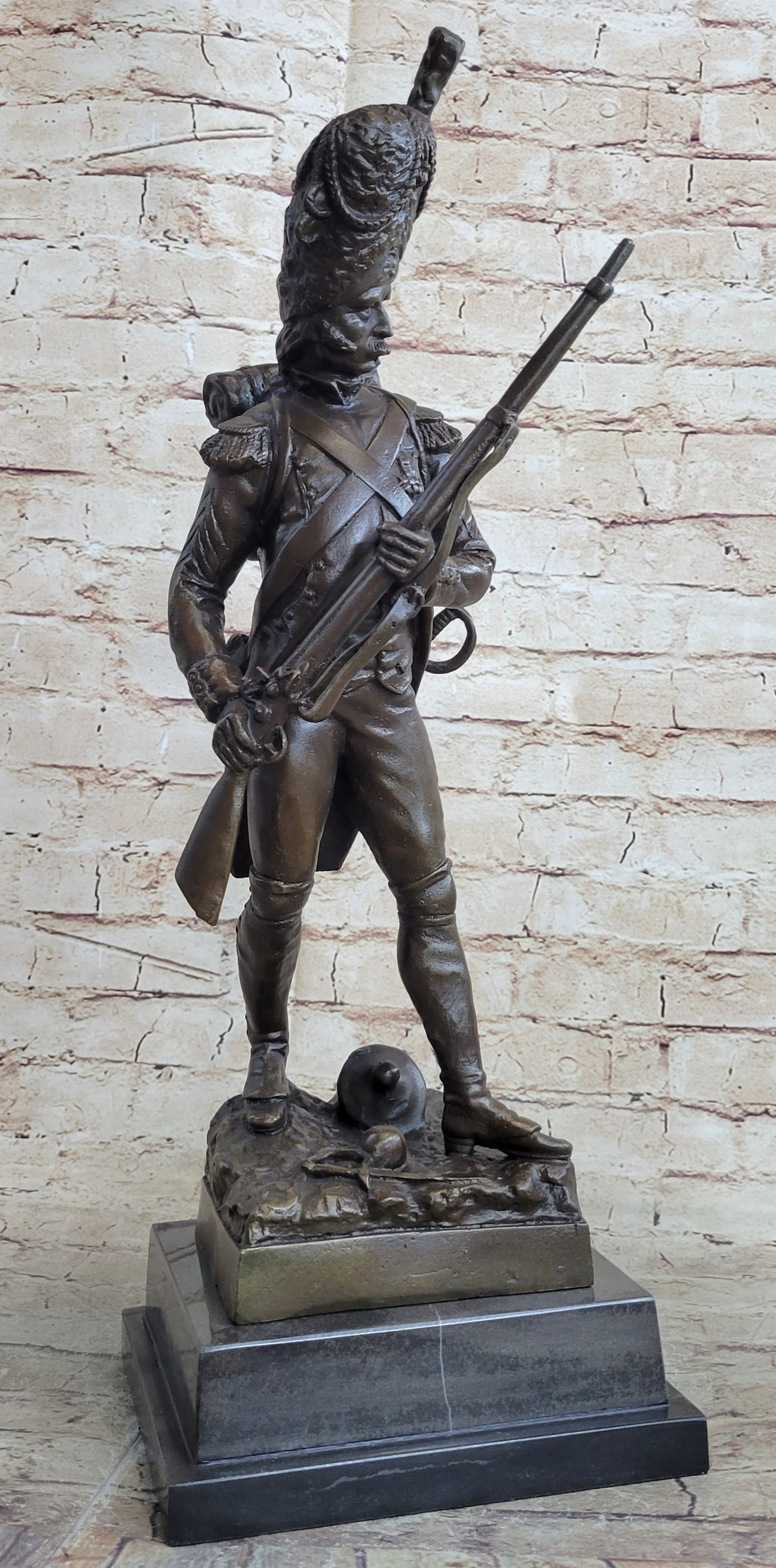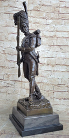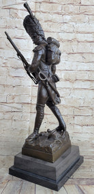 19th Century European Soldier w/ Rifle in Bearskin Hat Bronze Metal Statue Sculpture
