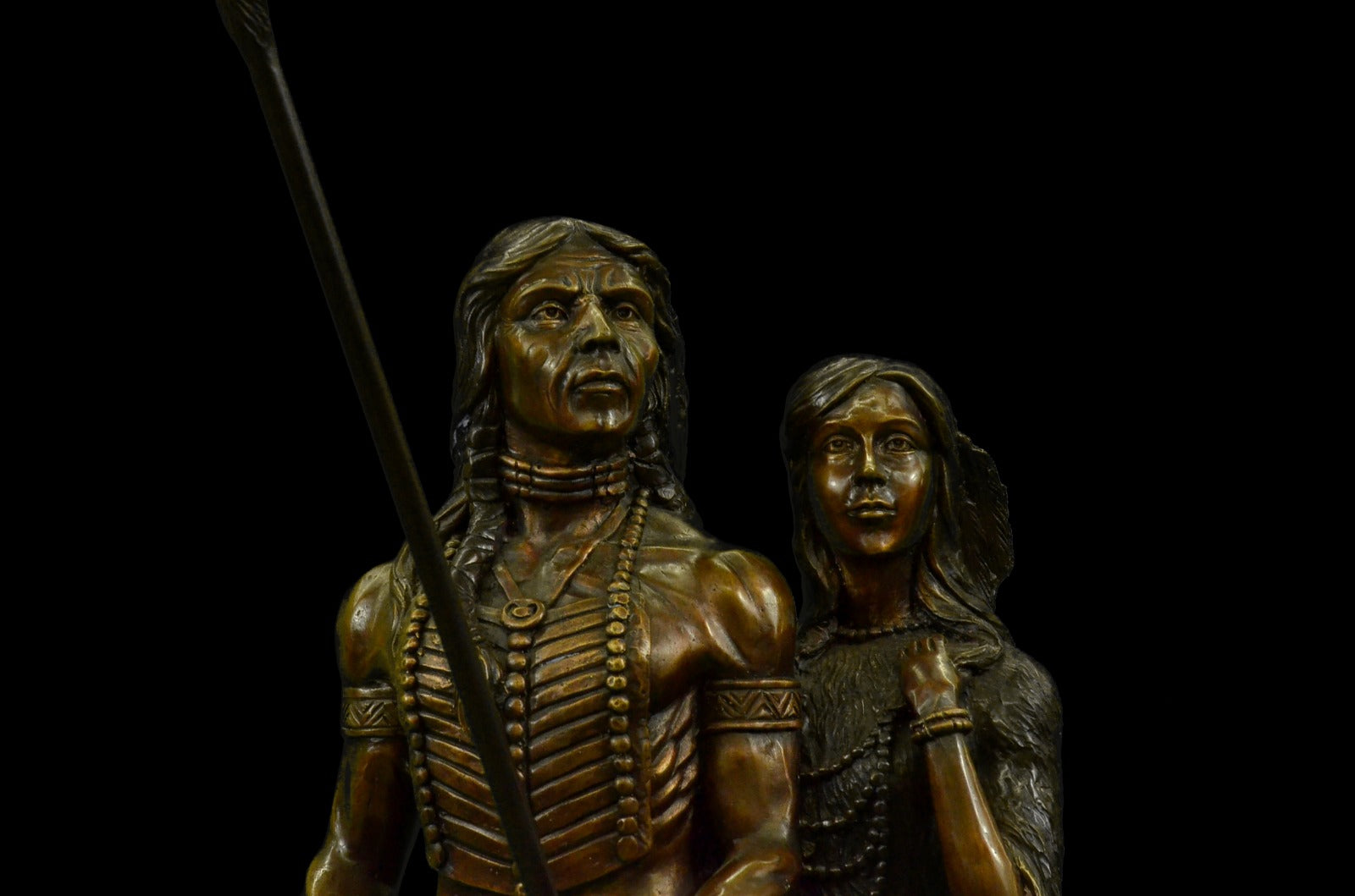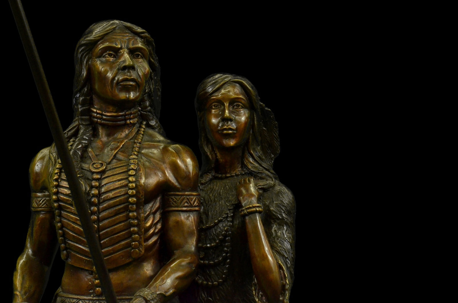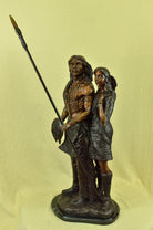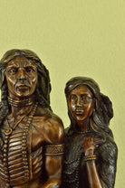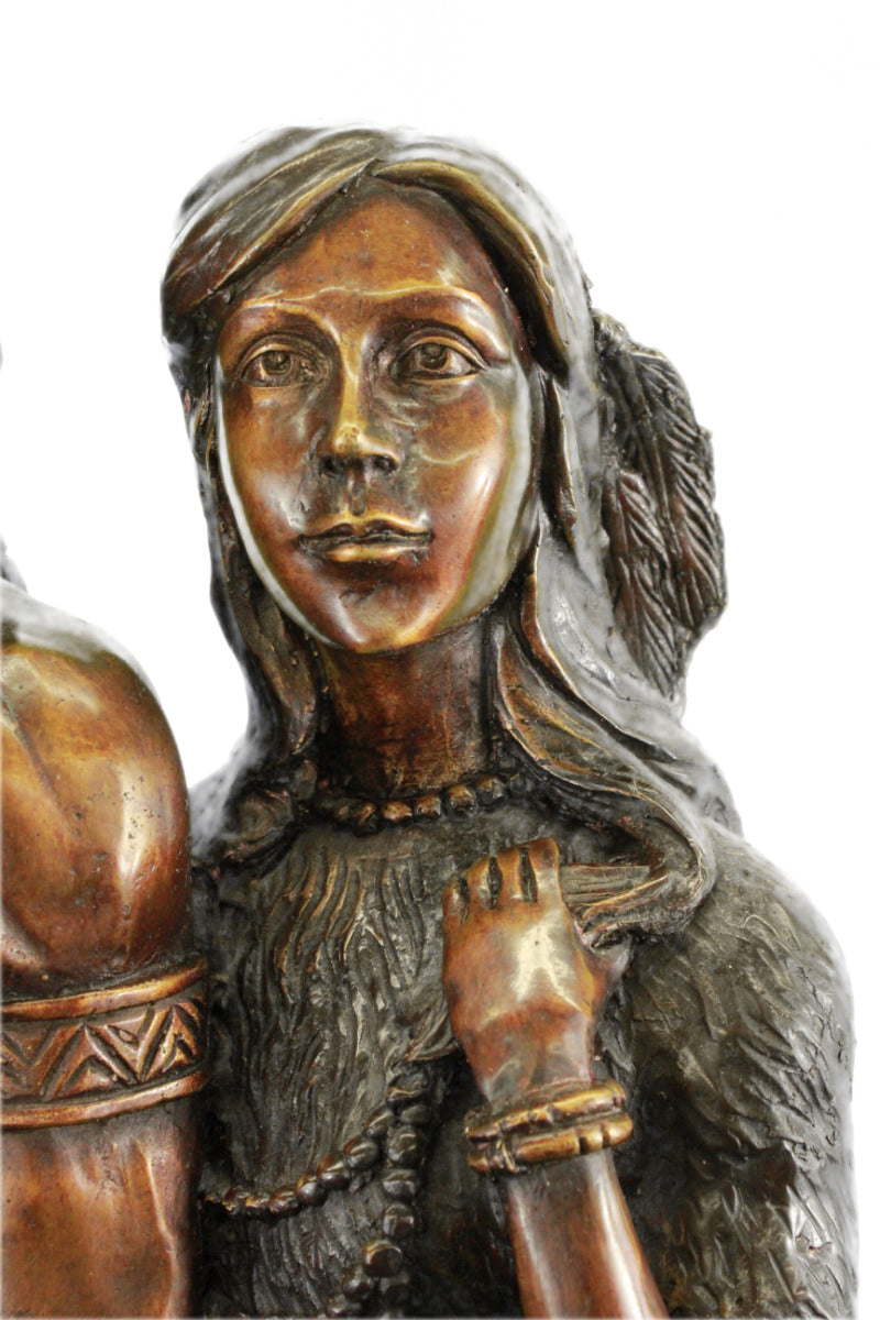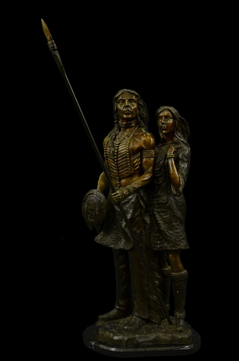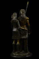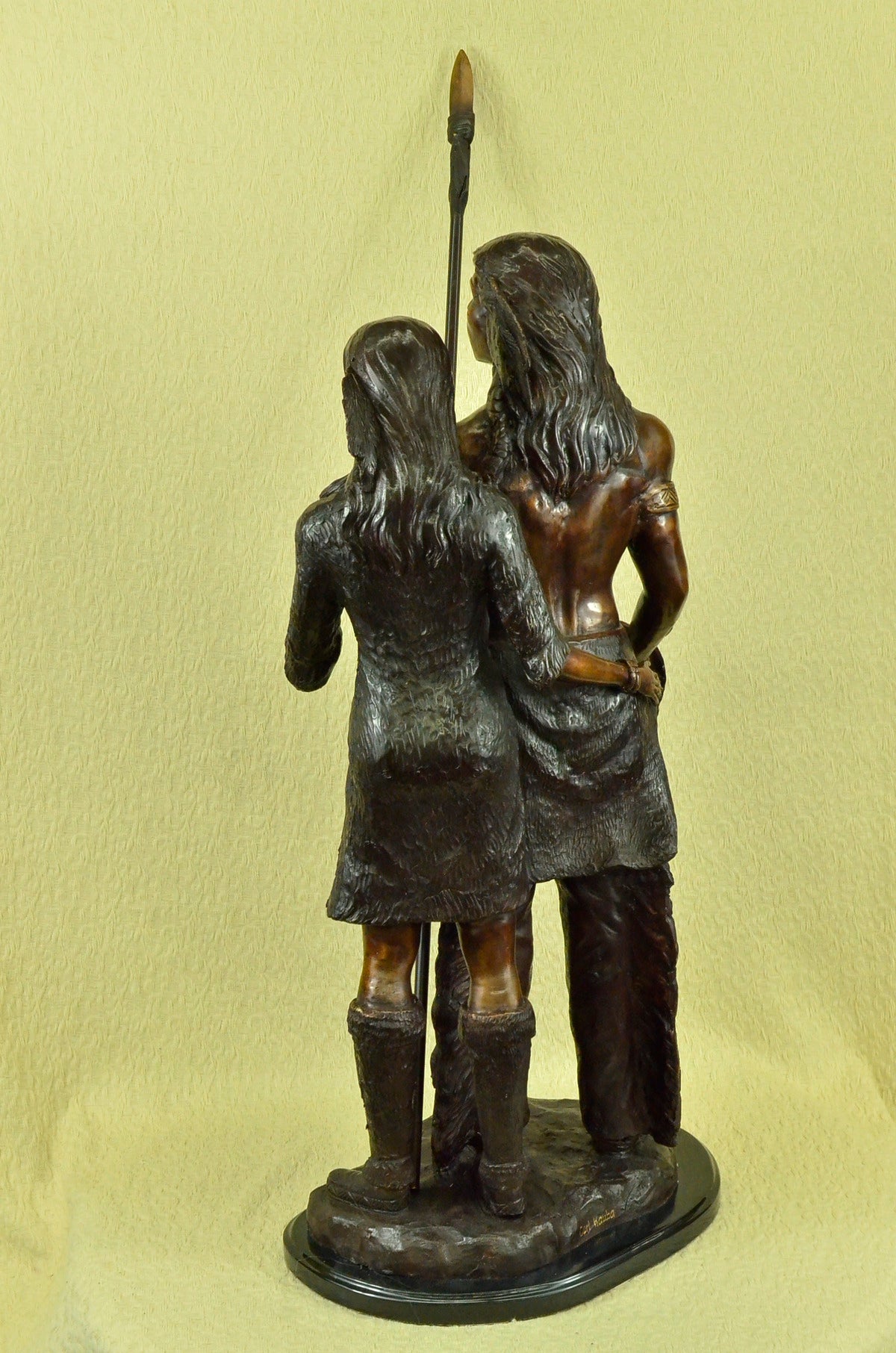 42'' Tall Massive Native American Indian Woman and Her Man Bronze Figurine