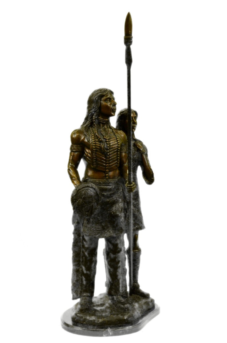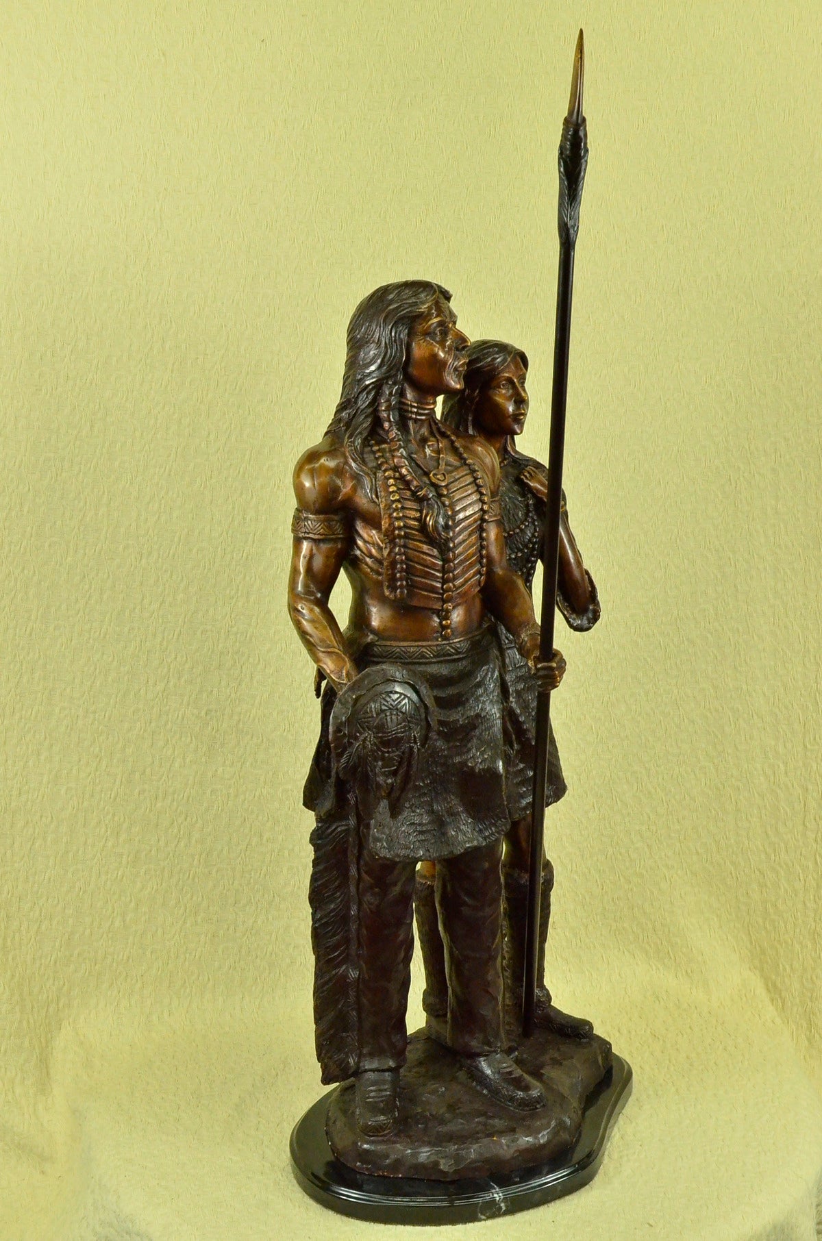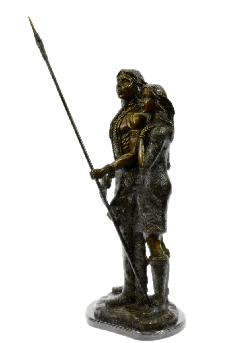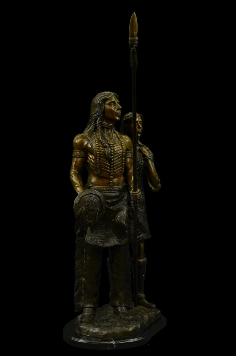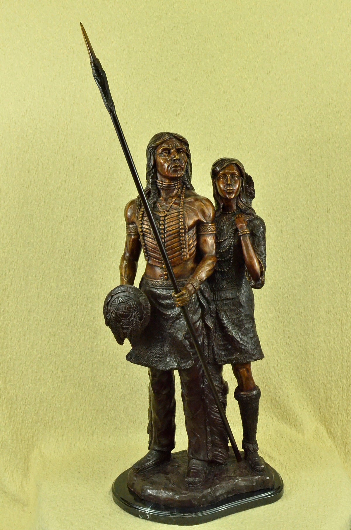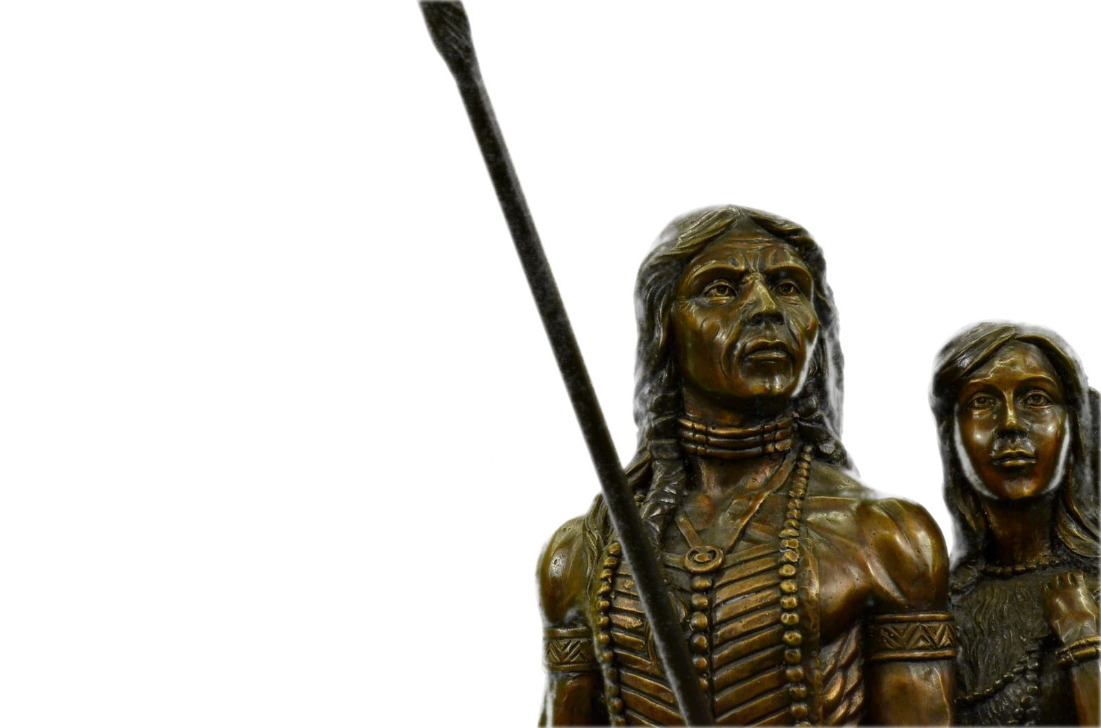 42'' Tall Massive Native American Indian Woman and Her Man Bronze Figurine