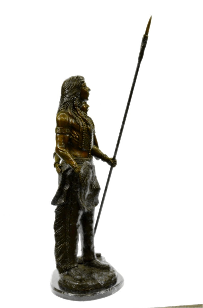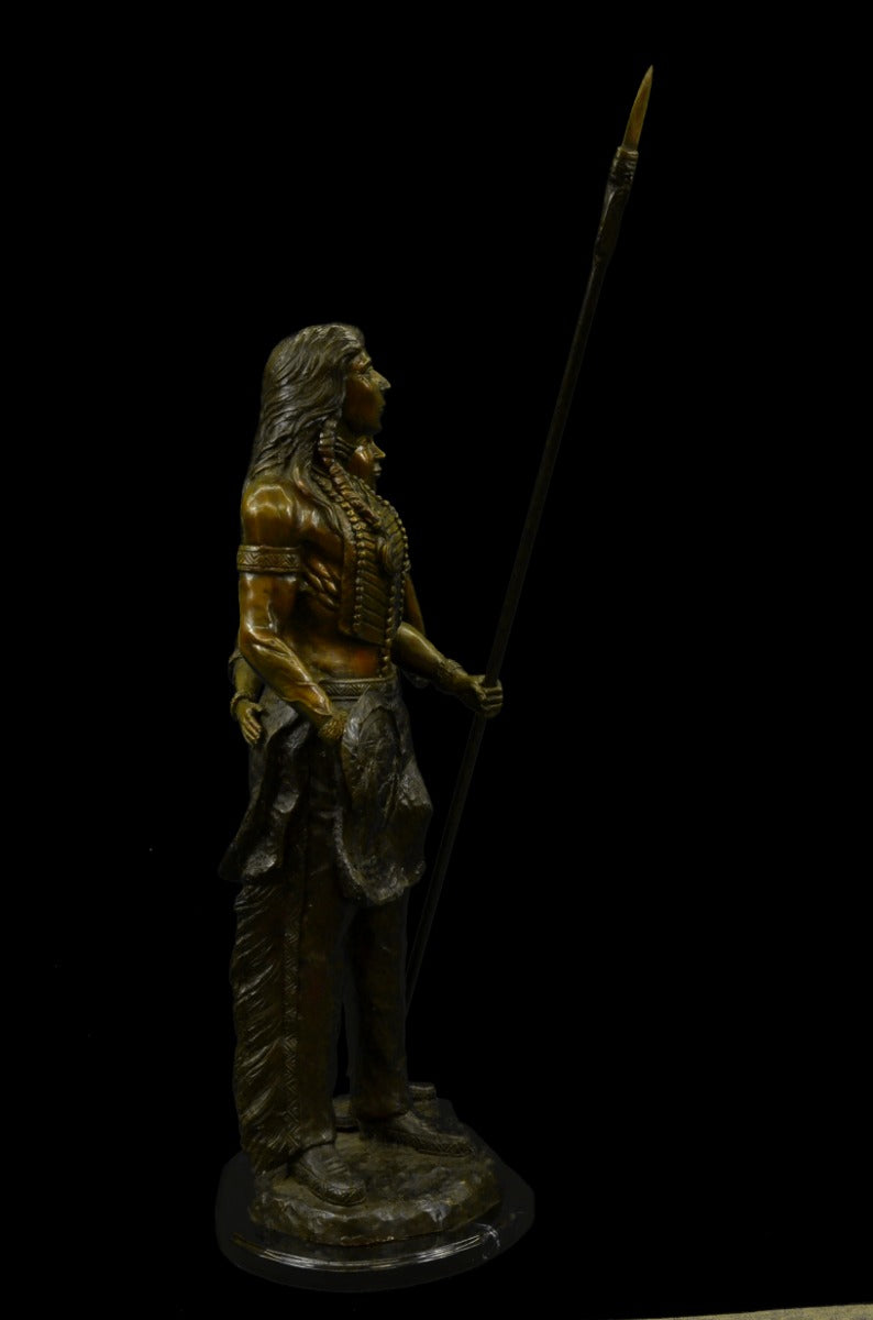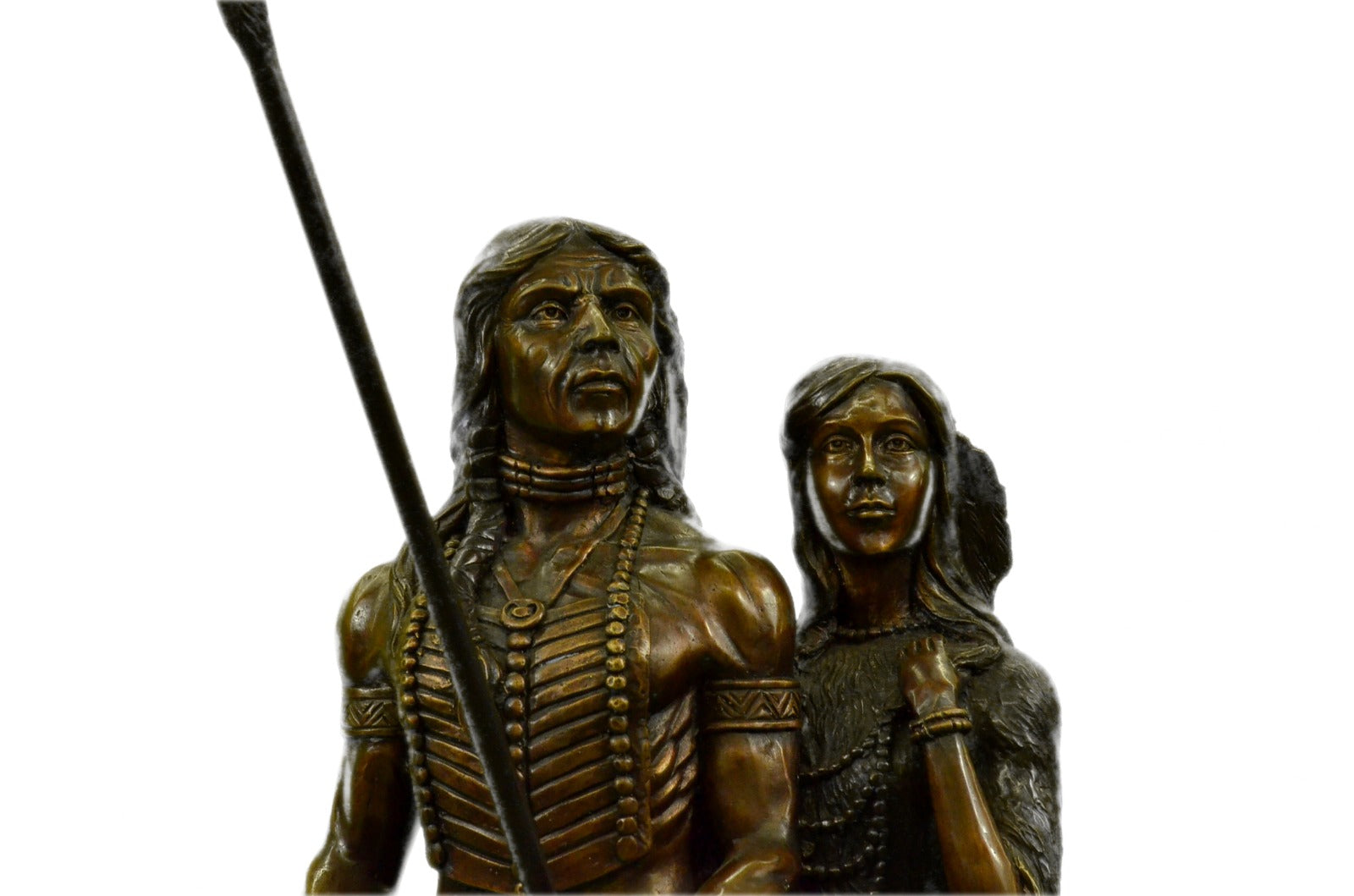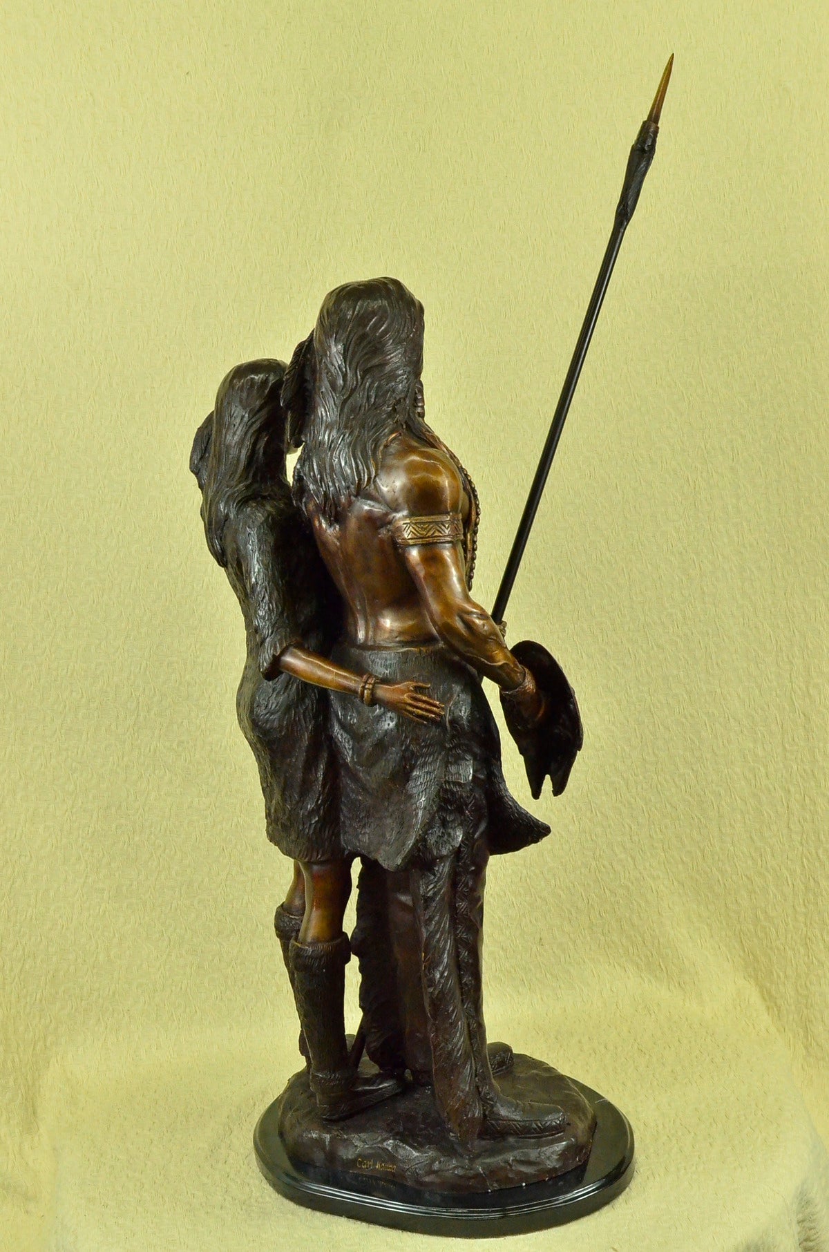 This gorgeous Native American Couple Collectible Indian Figurine Sculpture Statue has the finest details and highest quality you will find anywhere! Our team prides ourselves on finding the best prices without reducing quality, and in this North American Tribe Collection, we have definitely done just that! The craftsmanship of this lovely Native American Couple Collectible Indian Figurine Sculpture Statue is truly remarkable and is signed Carl Kauba.Bronze Dimensions with Marble Base:Height 42" x Width 24"