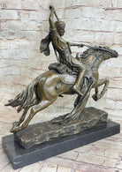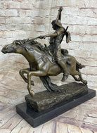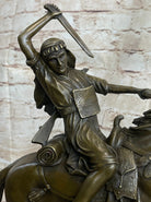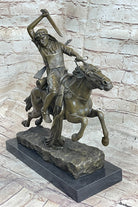 Arabian Arab Warrior on Horseback Bronze Statue Sculpture Figure on Marble Base