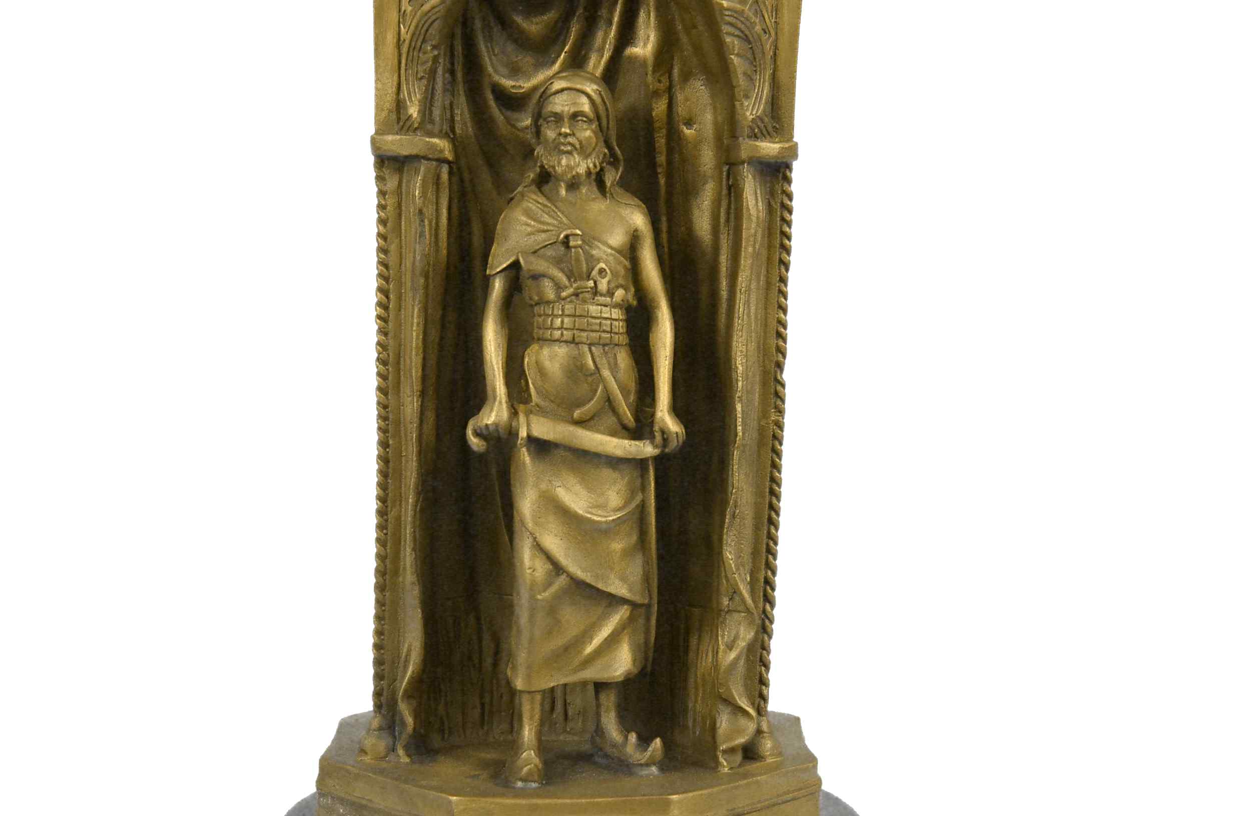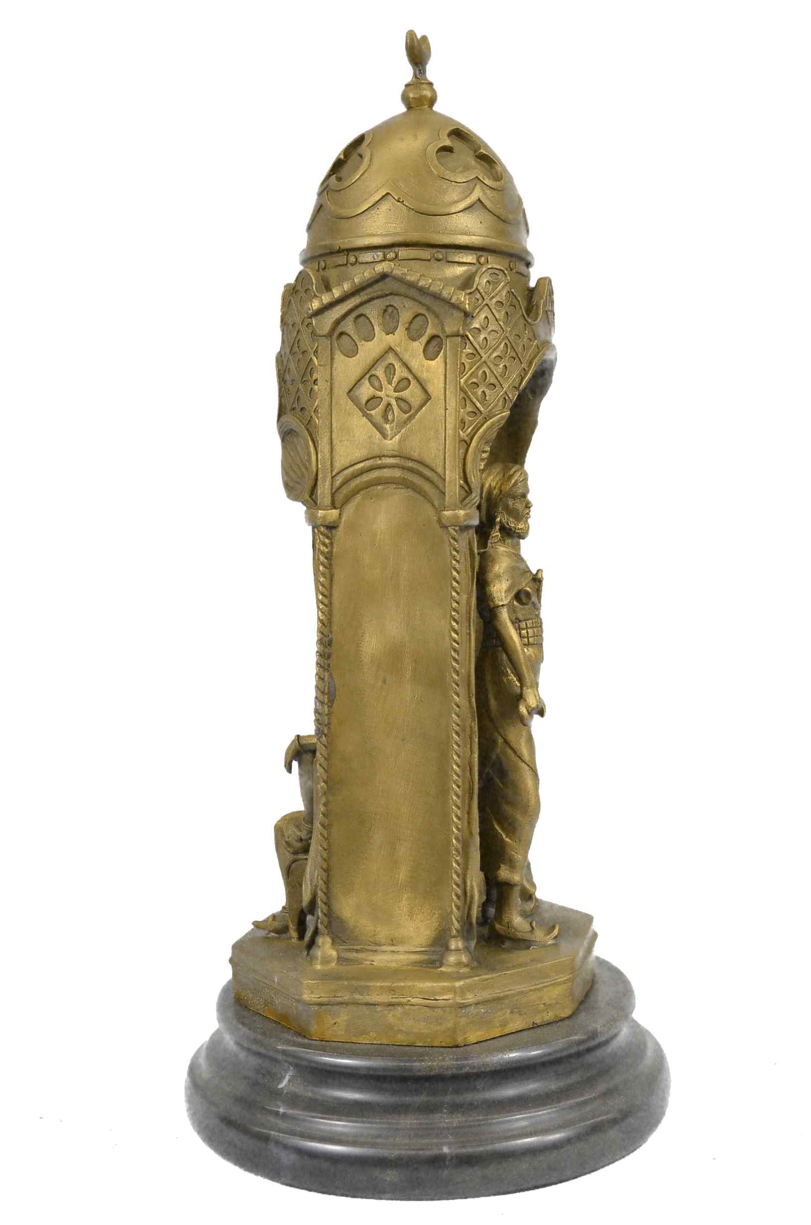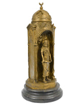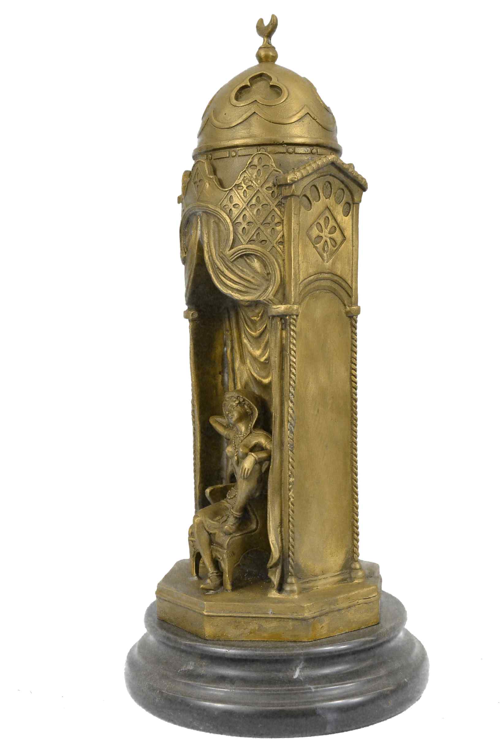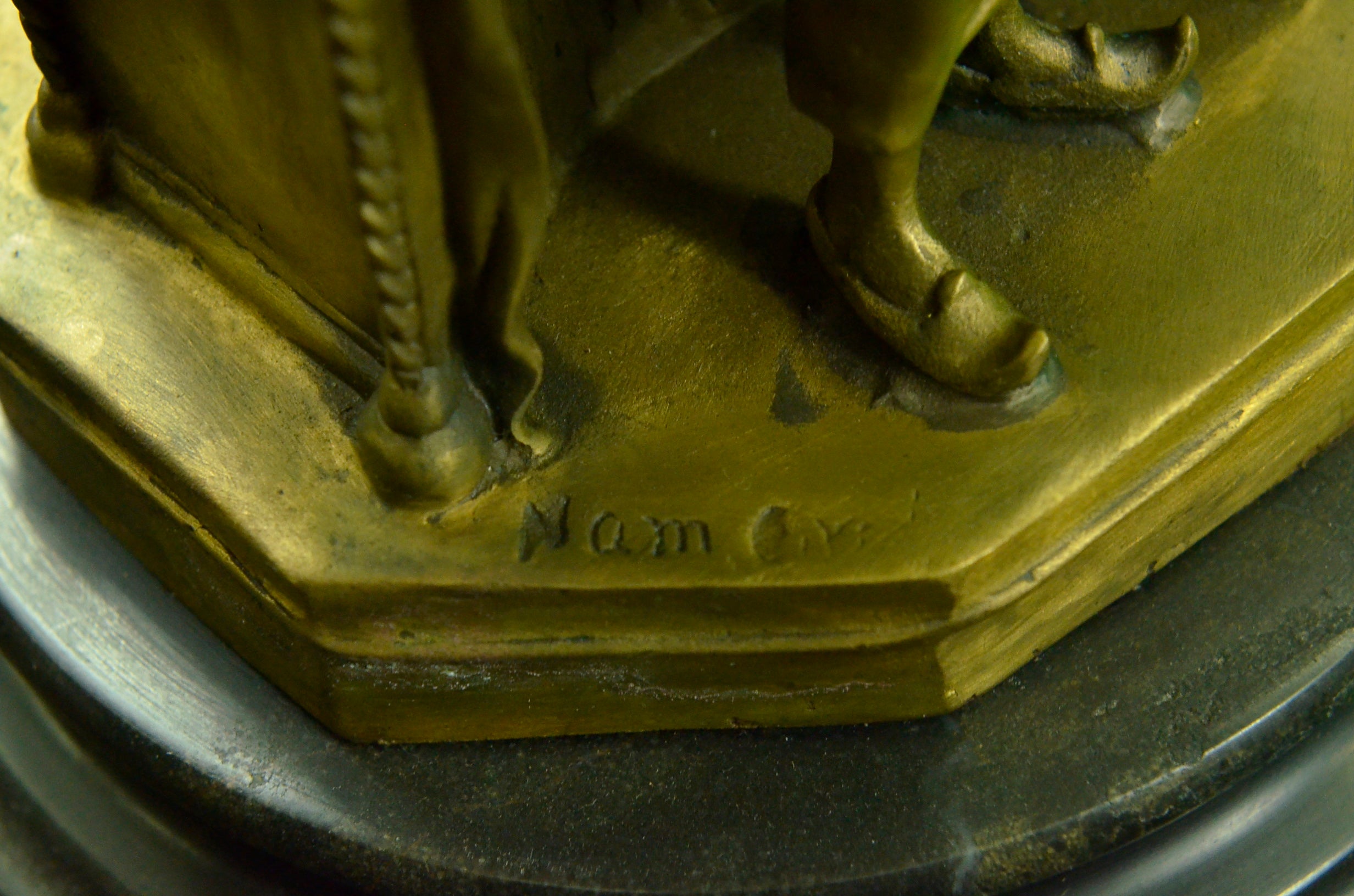 Here is a beautiful large bronze reproduction sculpture by Nam Greb (Franz Bergman). This beautiful and very well done bronze reproduction measures 14" high sitting on a black marble base. Features a Guard protection a slave young lady in the harem. Signed Nam Greb for the 19th Century artist Franz Bergman who spelled his name backwards on his erotic bronzes. It is in great condition with no flaws and ready for display.Bronze Dimensions with Marble Base:Height 14" x Width 6"