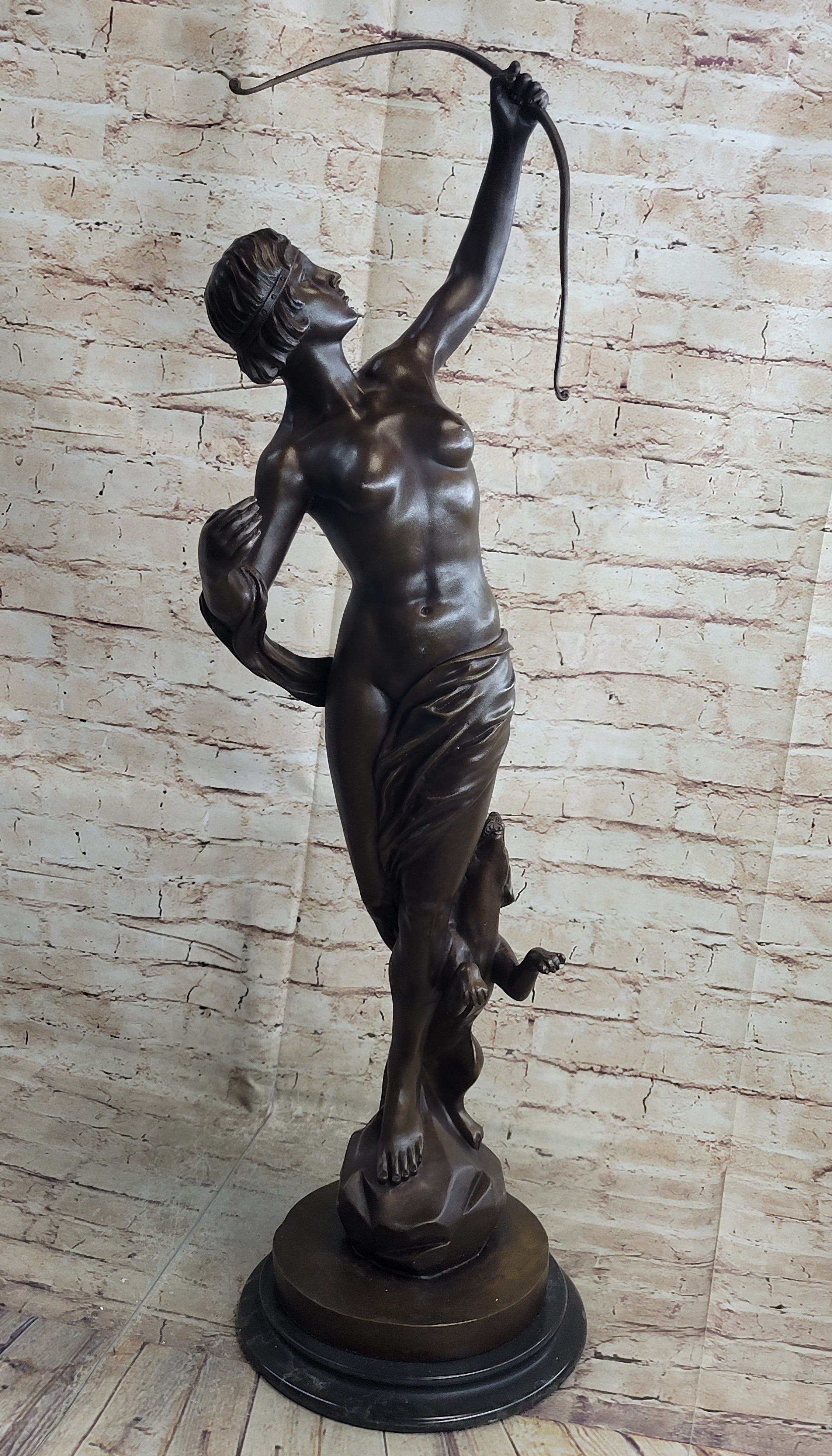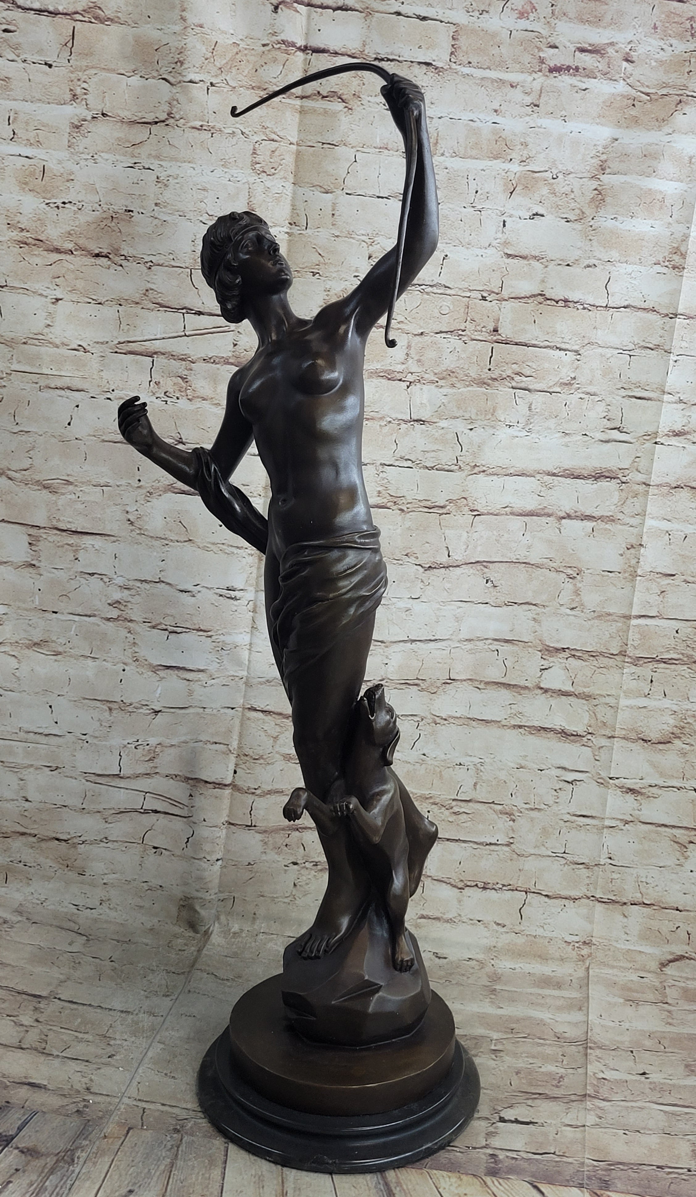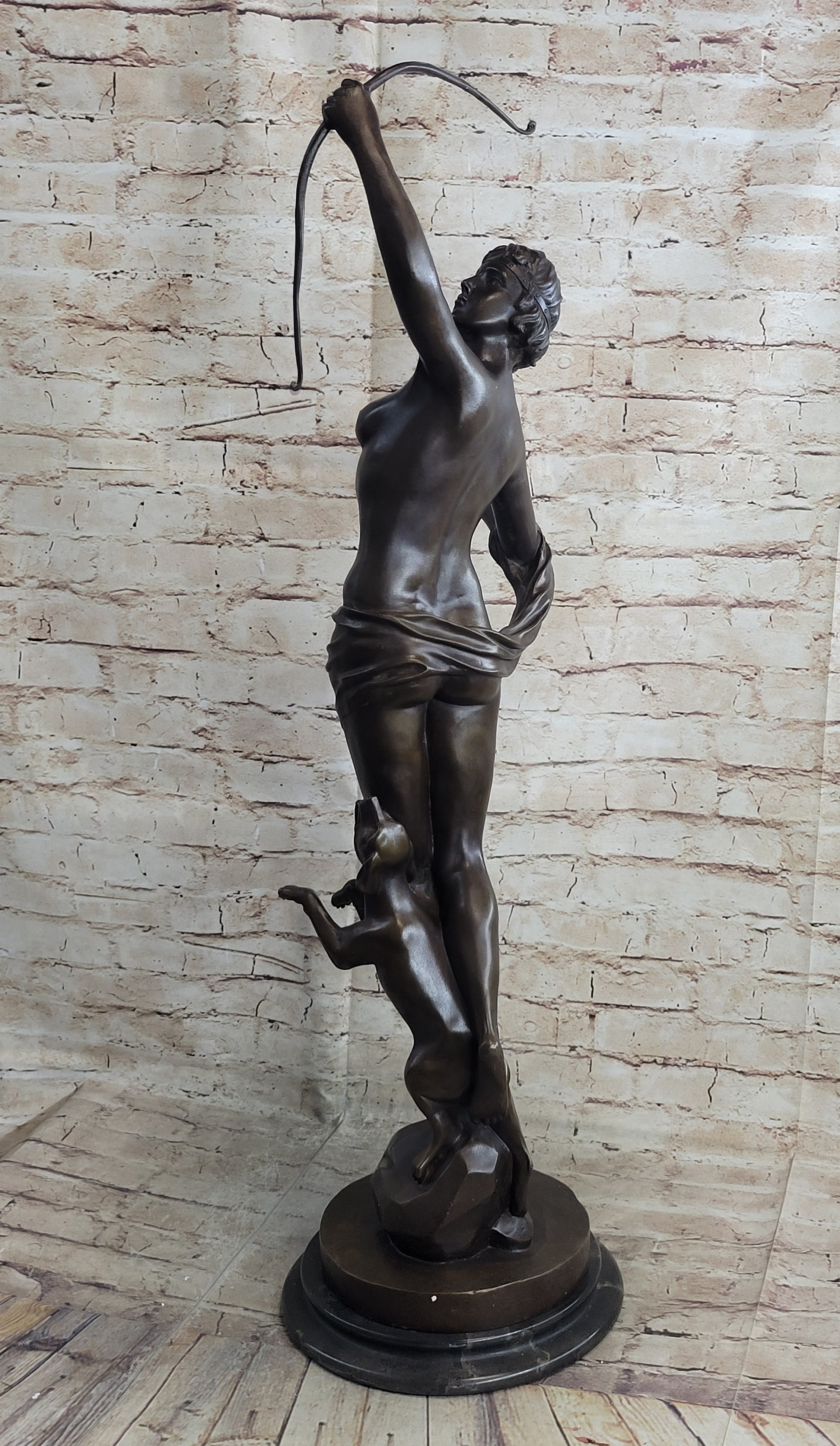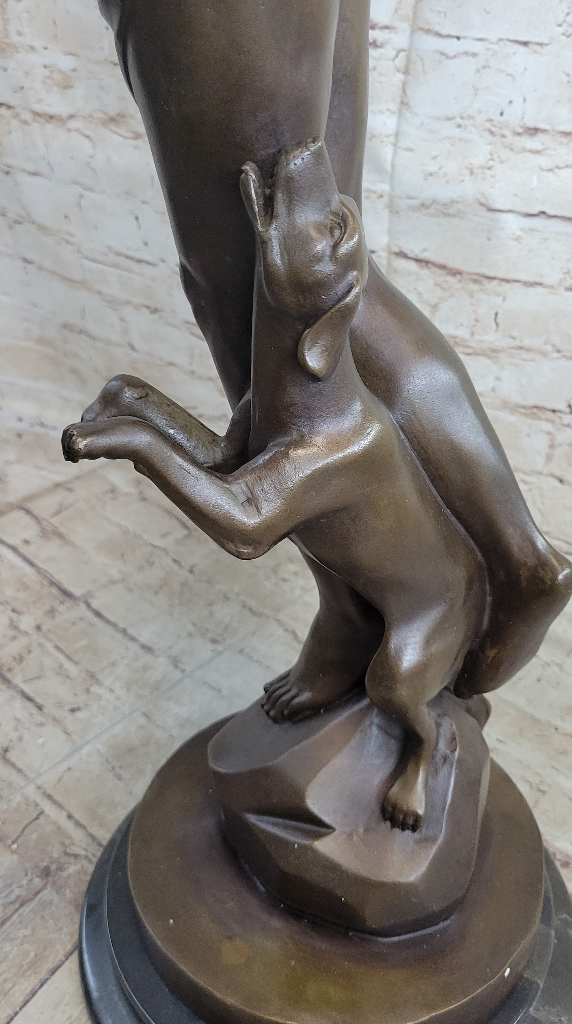 Artemis Diana the Huntress Goddess with Dog Bronze Statue Sculpture Figure Marble Base