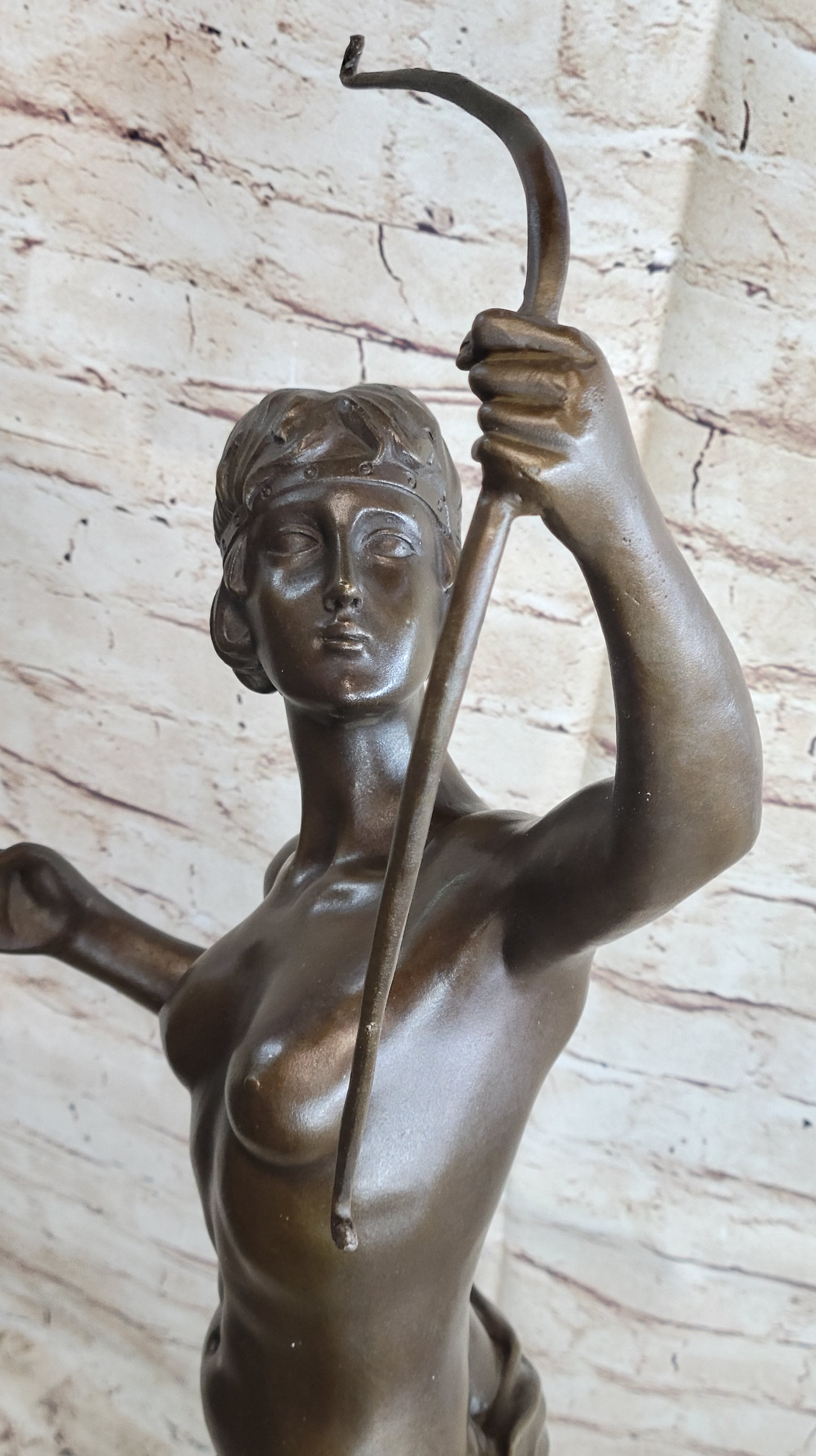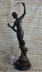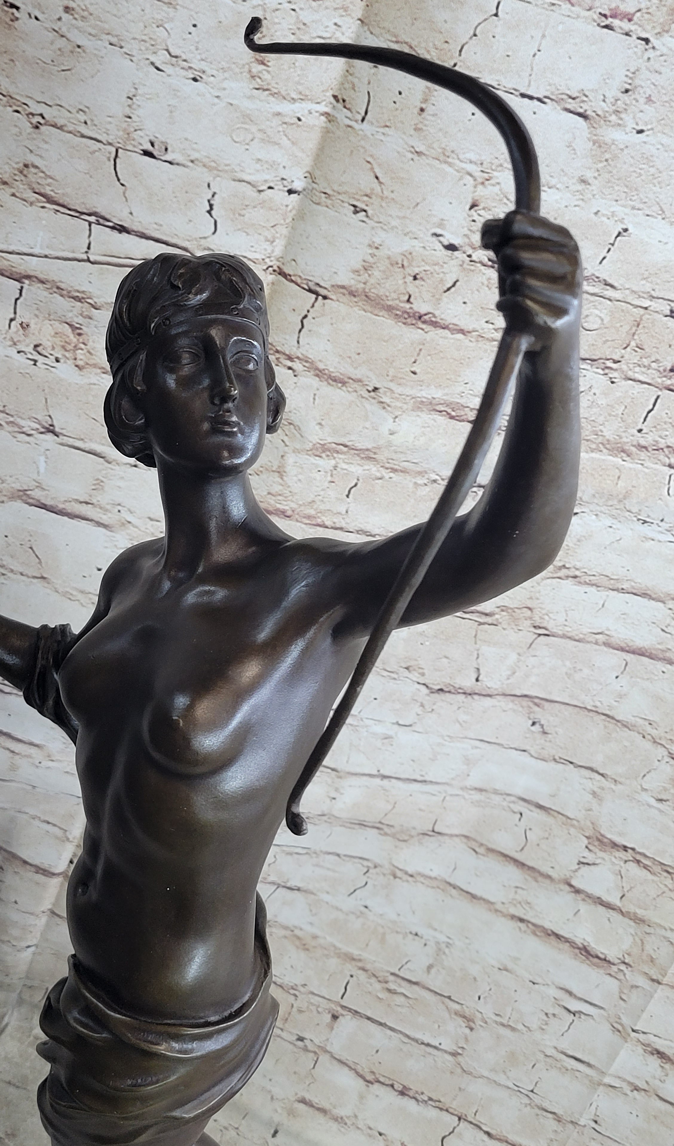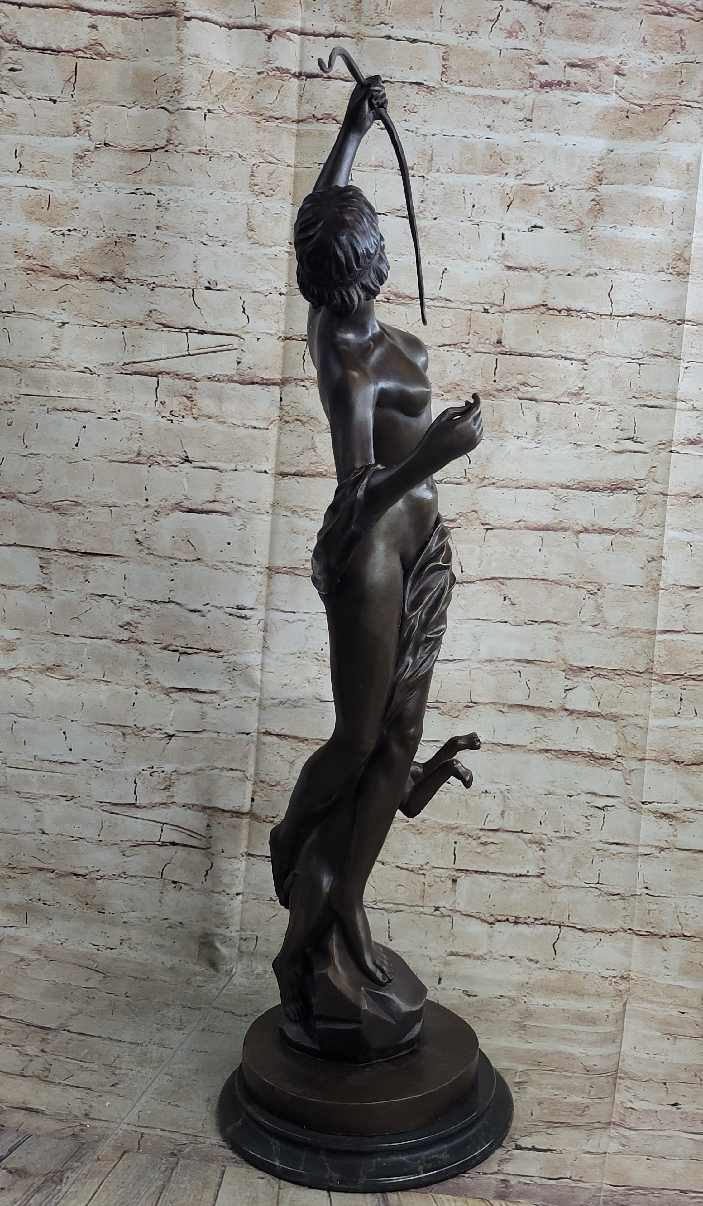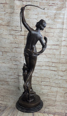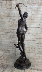 Artemis Diana the Huntress Goddess with Dog Bronze Statue Sculpture Figure Marble Base