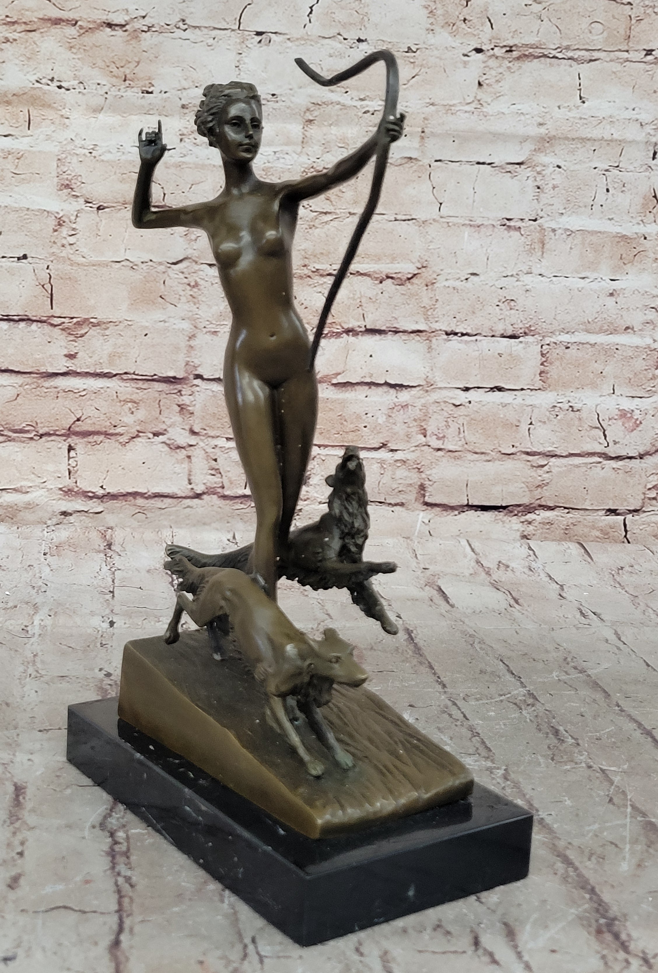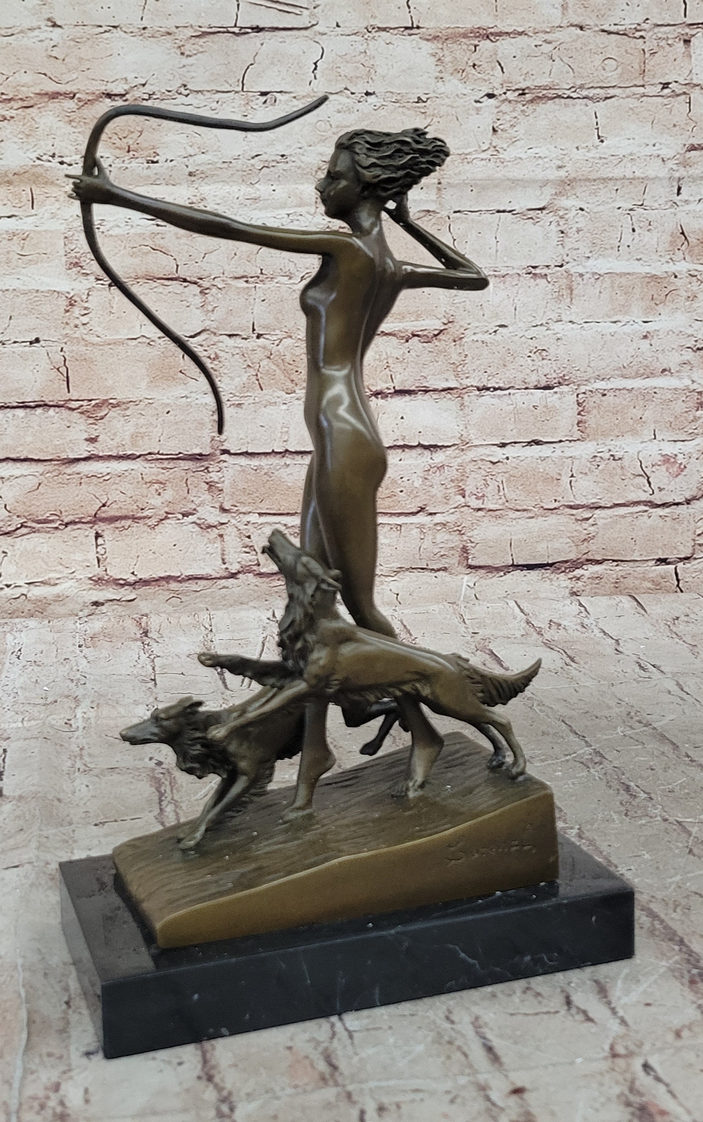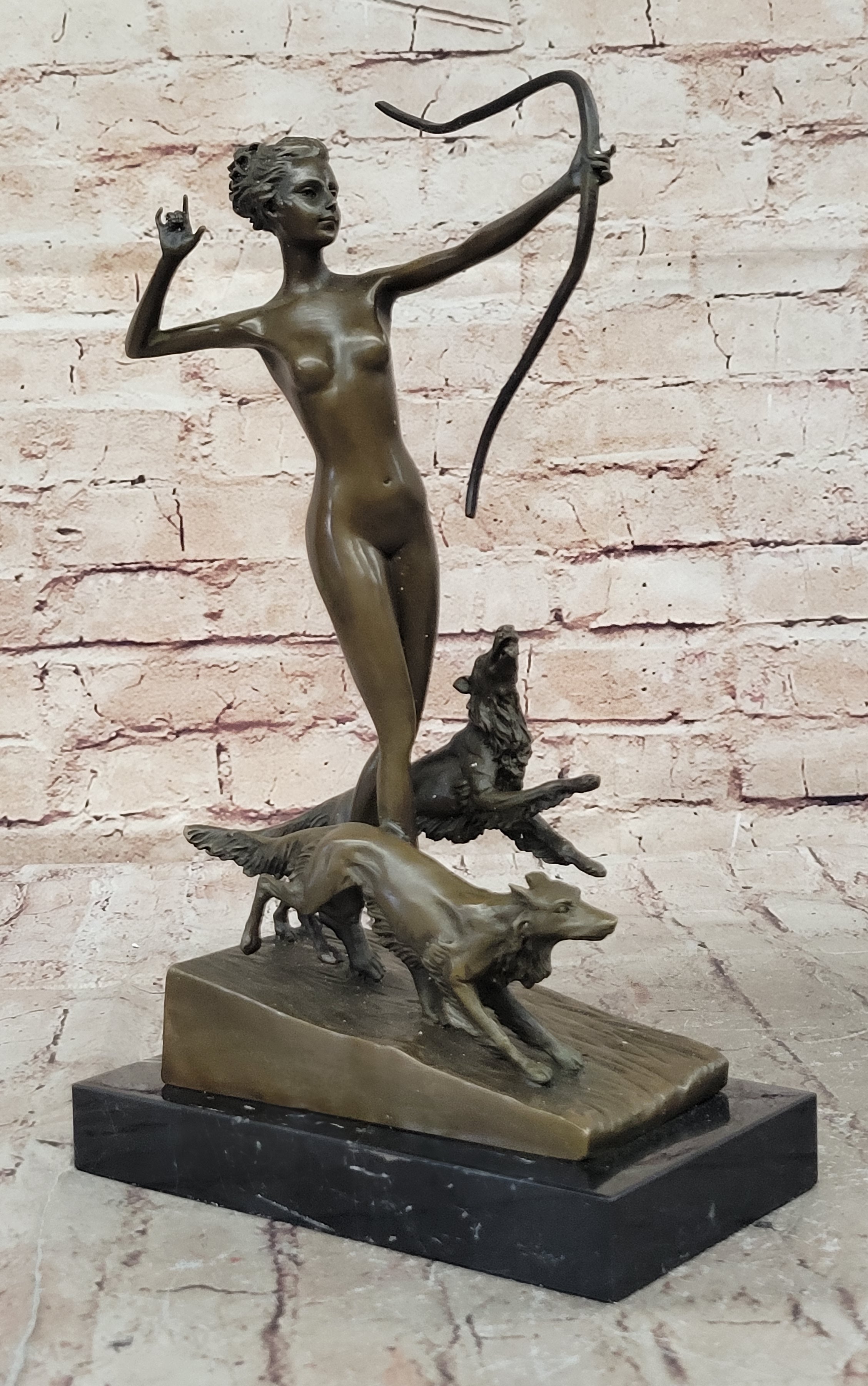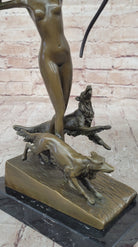 Artemis Diana The Huntress w/ Dogs Nude Figure Bronze Sculpture Statue by J. Lorenzl