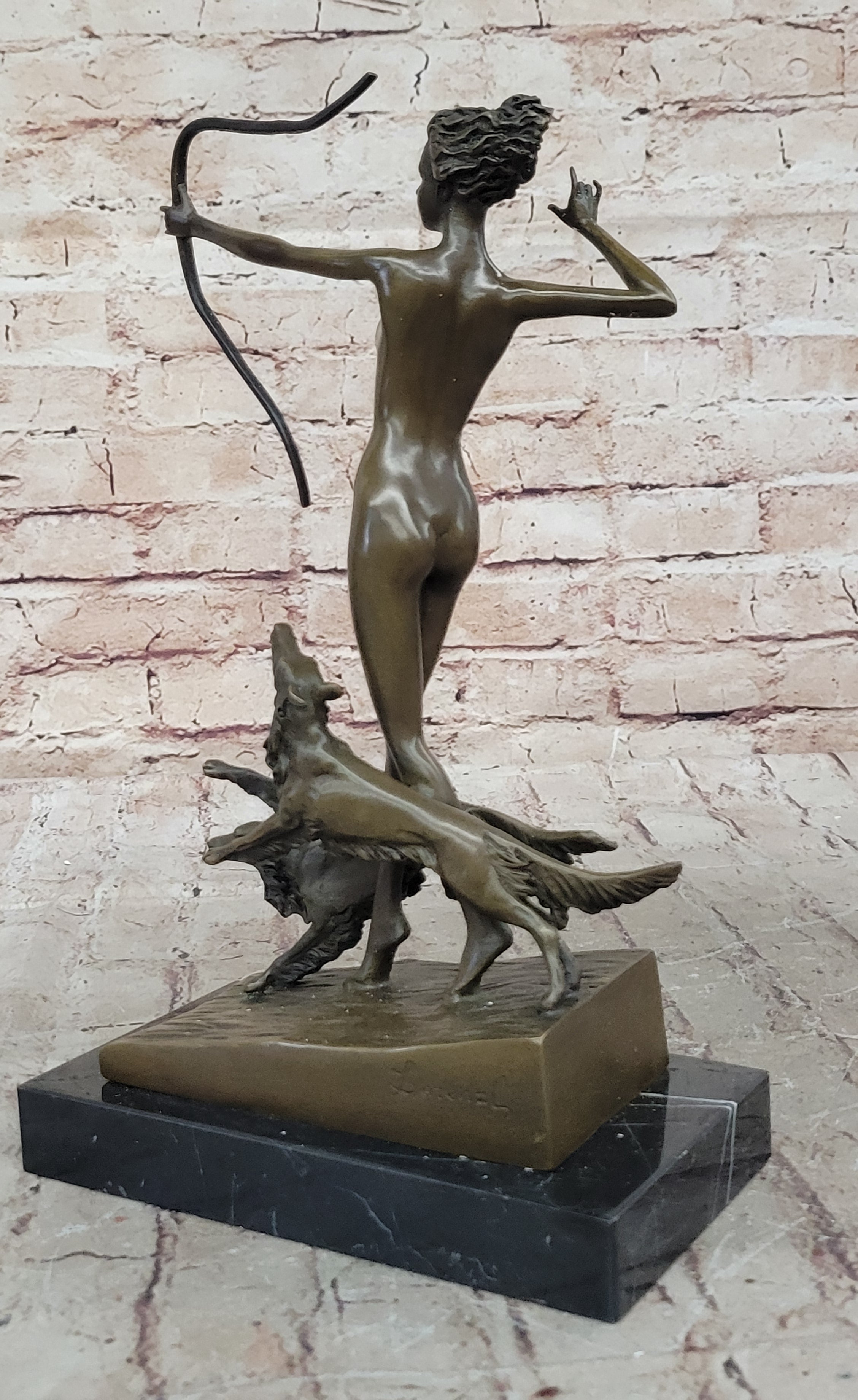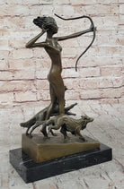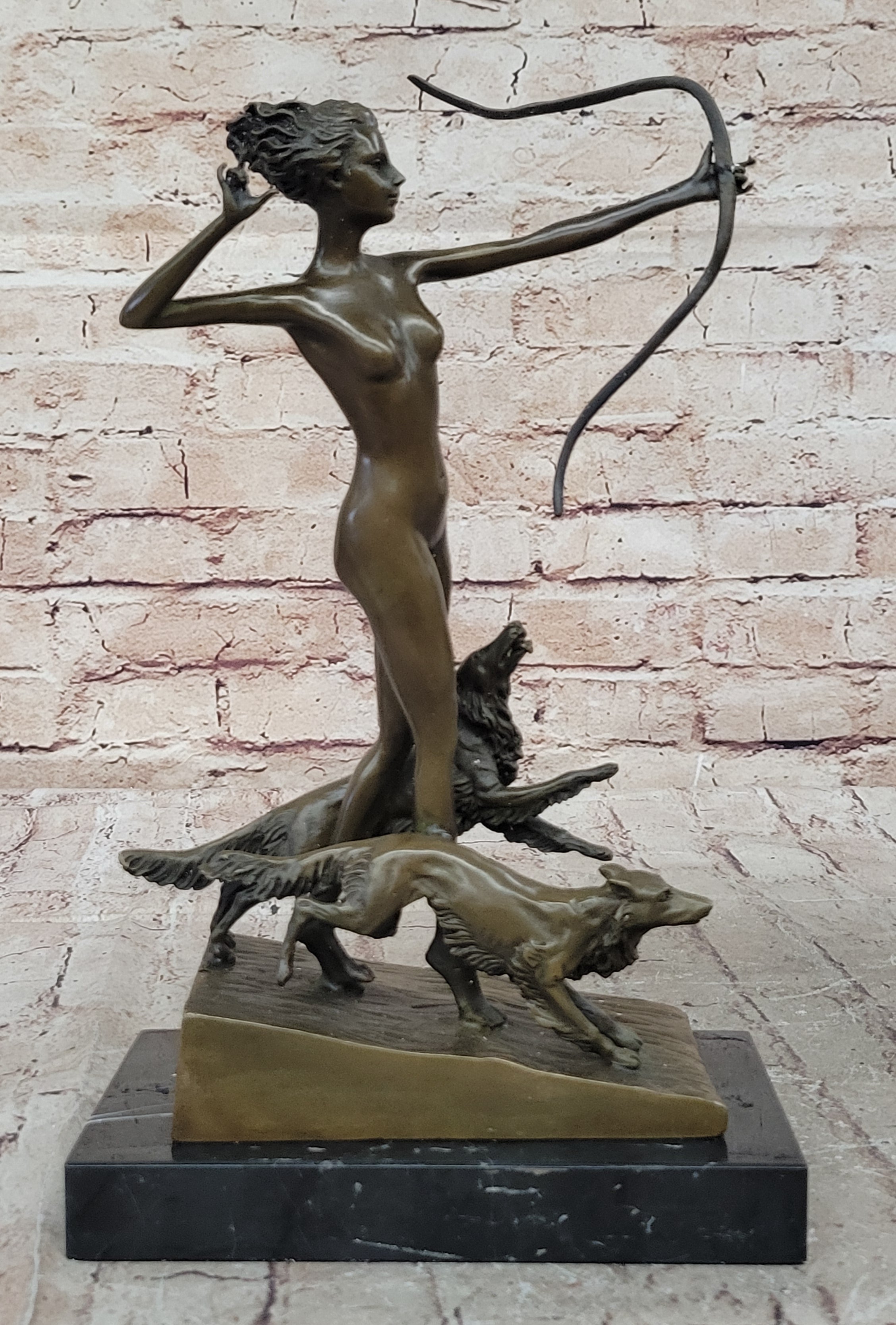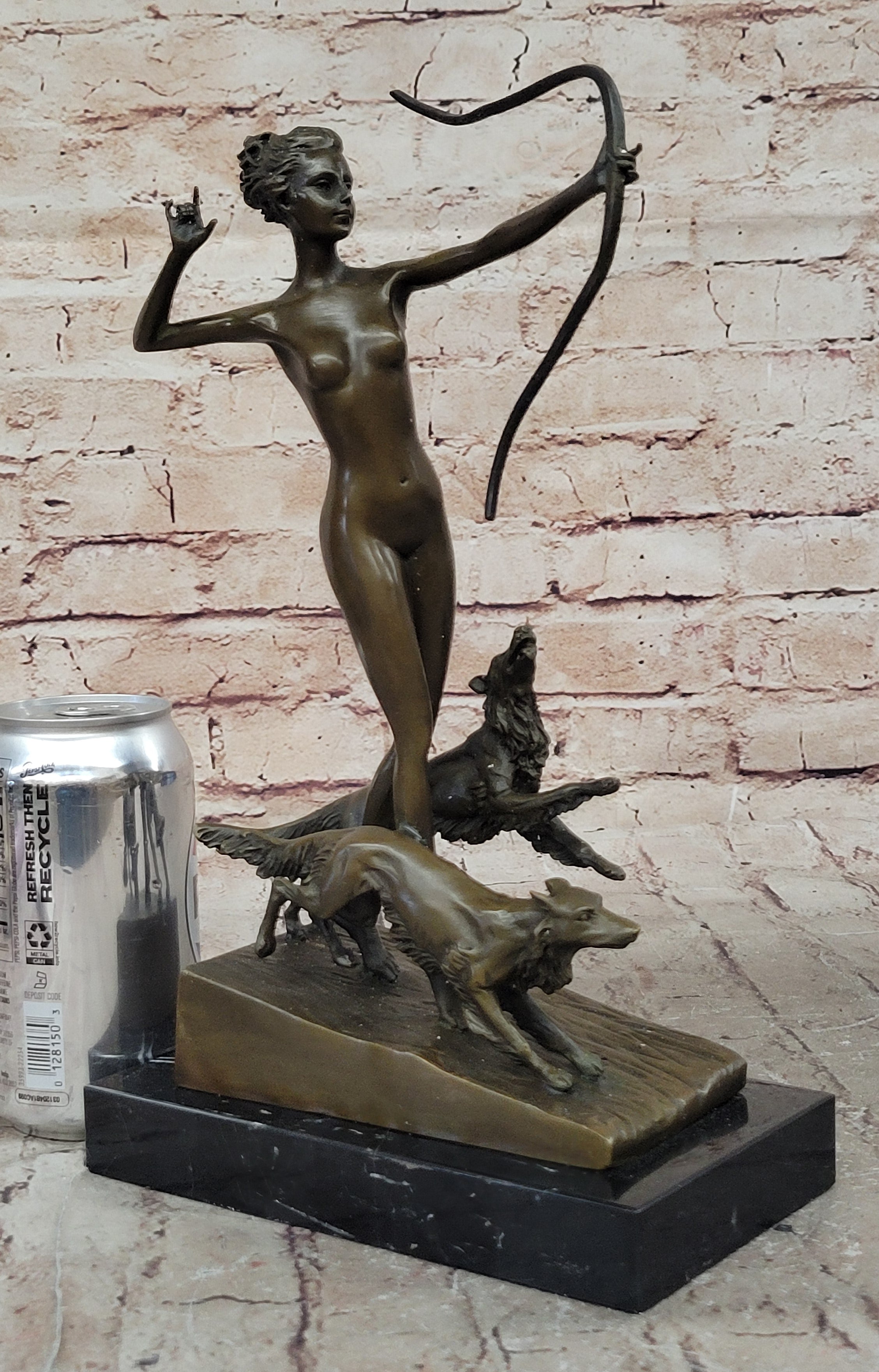 Artemis Diana The Huntress w/ Dogs Nude Figure Bronze Sculpture Statue by J. Lorenzl