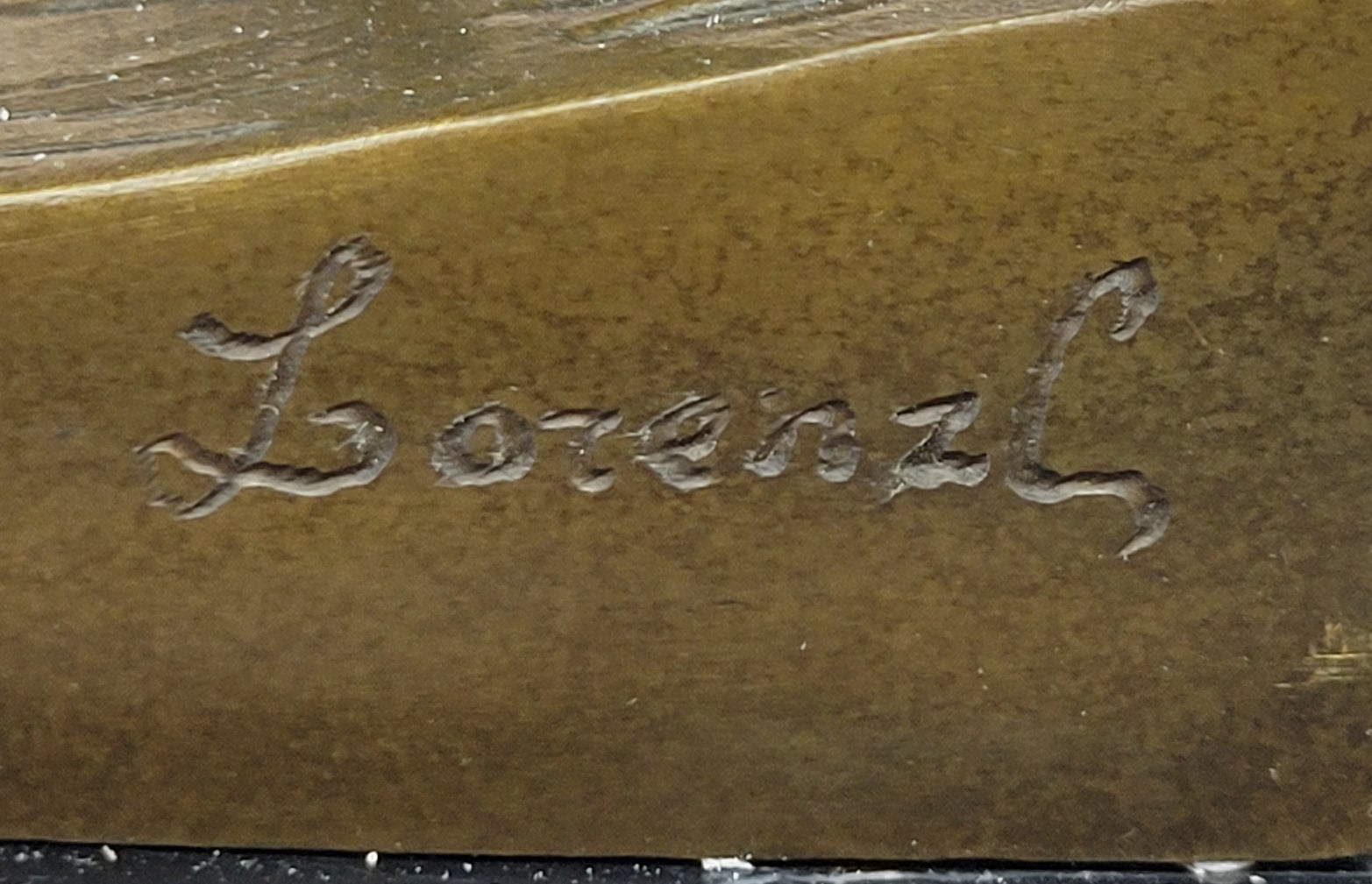 Diana, known as both "Diana Nemorensis" and "Artemis," is a complex figure in Italian and Greek mythology. The sculpture alludes to the duality of her identity and the merging of Italian and Greek influences. The mythological context surrounding Diana, as a goddess of the woodland with rites involving brutality and human sacrifice, adds layers of intrigue to the narrative. This unique piece, signed by the talented artist Josef Lorenzl, invites viewers to contemplate the rich mythology and symbolism associated with Diana the Hunter.Bronze Dimensions with Marble Base: Height 12" X Width 7"