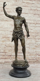 Handcrafted using the lost wax method, the sculpture exemplifies Kuchler's dedication to precision and detail. This traditional technique allows for intricate and lifelike depictions, showcasing the muscular form and poised stance of the warrior. The use of the lost wax method ensures that each nuance and expression is faithfully reproduced in bronze.
