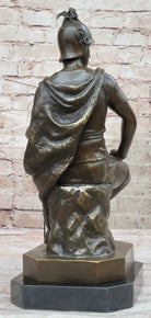 BRONZE MARBLE SCULPTURE ROMAN GOD WARRIOR STATUE SIGNED PICAULT FIGURE FIGURINE