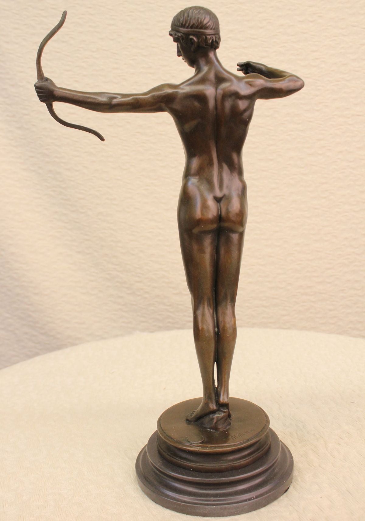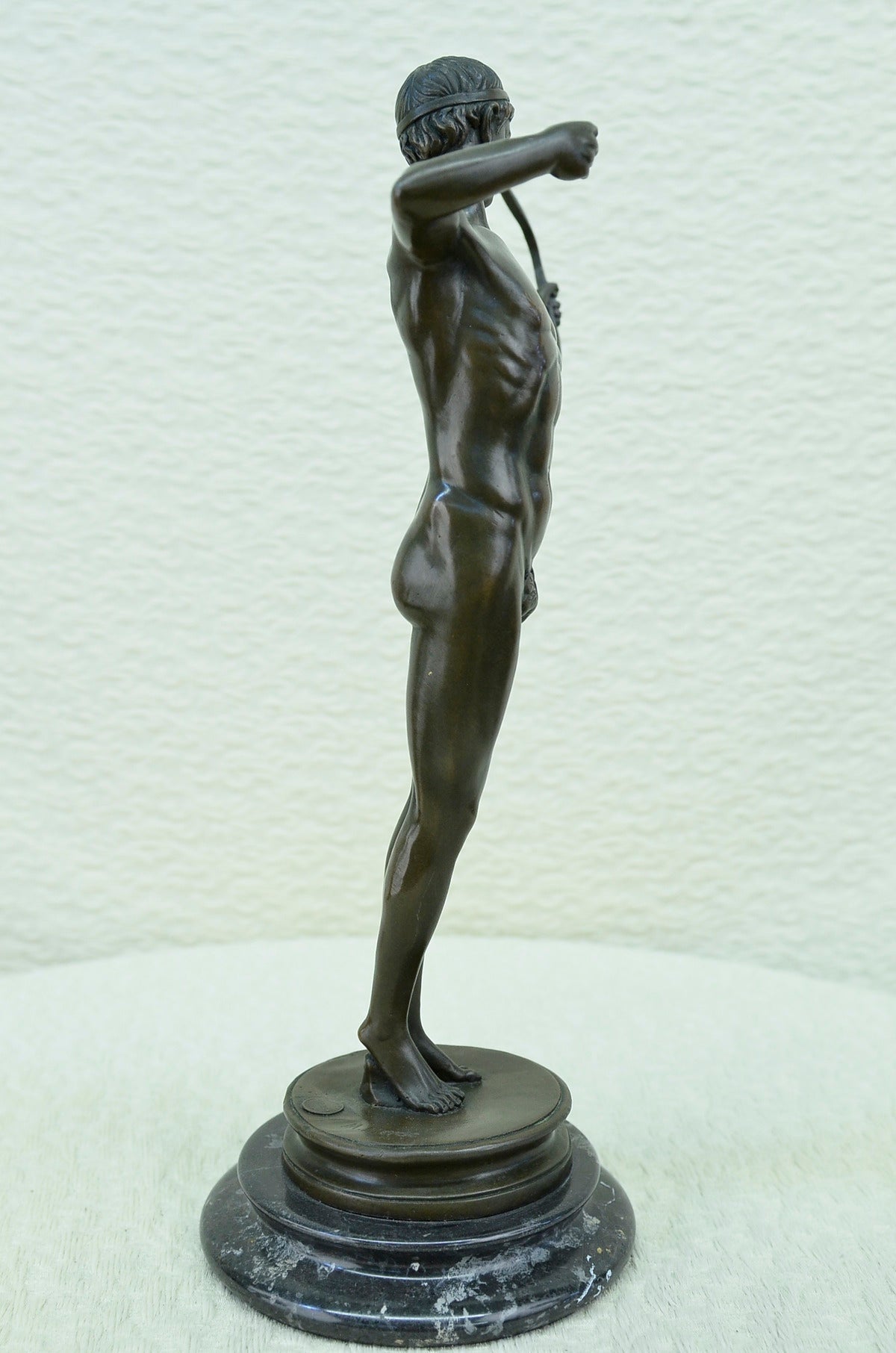 Bronze Metal Art Deco Classic Sculpture Male Archer Bow Arrow Statue Marble SALE