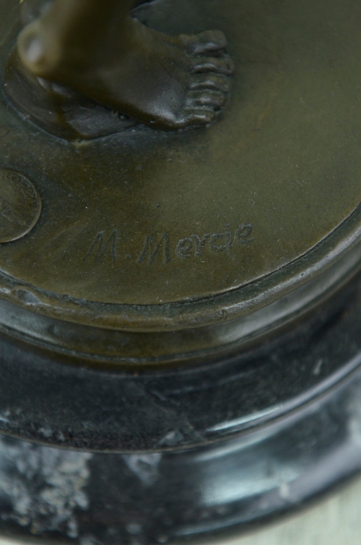 Condition: This Sculpture Is In Very Good Condition. Bronze Dimensions With Marble Base:Height 17" X Width 10"Marble Dimensions: Diameter 6"Height Without Base: 15" Weight :10 Lbsinventory : 73Ds0693937 REFERENCE_NUMBER:DS069 SIZE:17"x10" (43x25 Centimeters) WEIGHT:10 lbs.