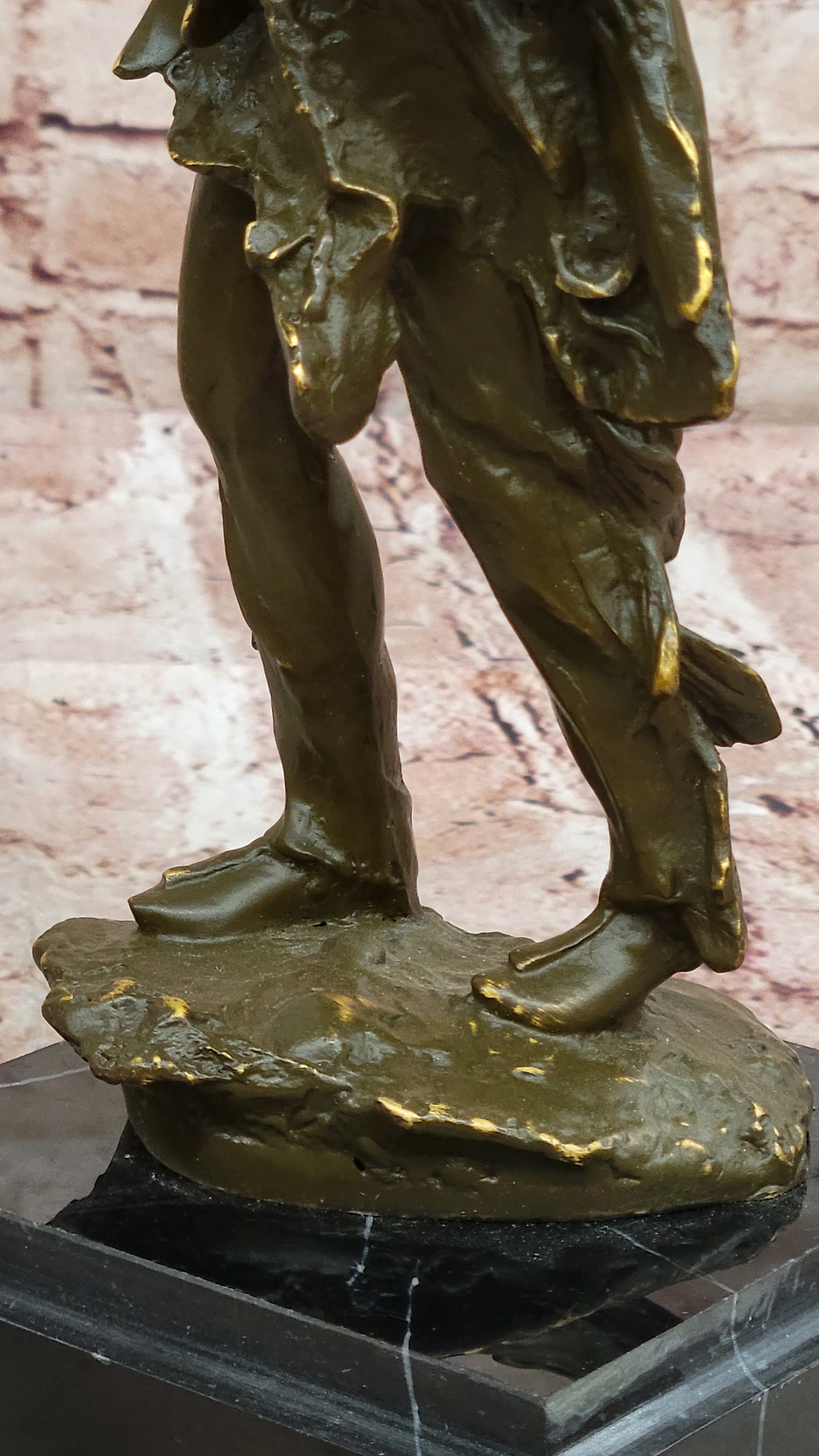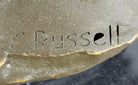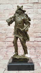 Mounted on a polished black marble base, this signed collectible is both a tribute to C. M. Russell's artistic legacy and a fine example of Western-themed bronze sculpture. Ideal for collectors of American history or Native American art, it adds cultural depth and refined beauty to any home or office display.Bronze Dimensions with Marble Base: Height 12" X Width 5"