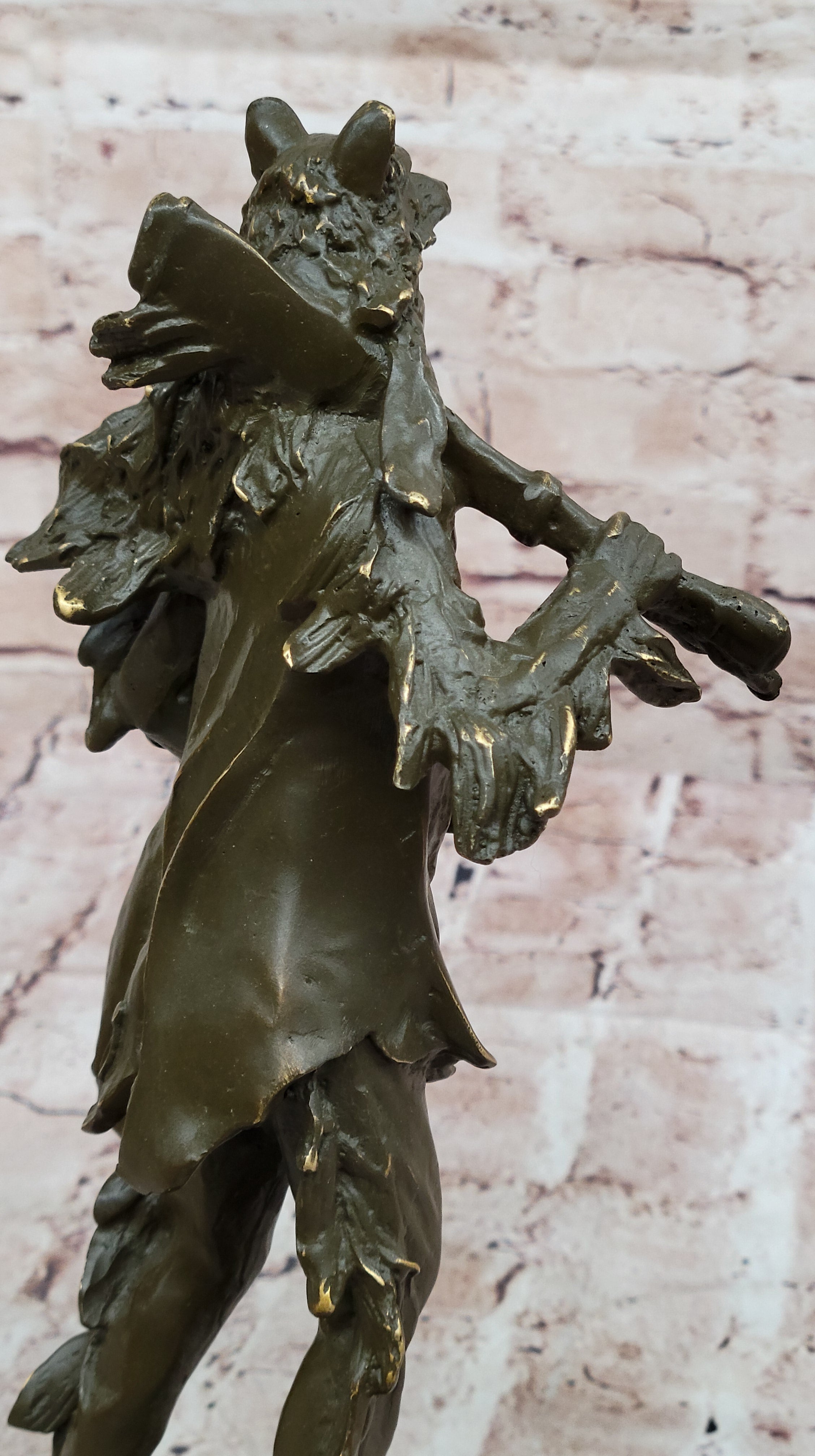 Bronze Native American Warrior Sculpture with Wolf Headdress