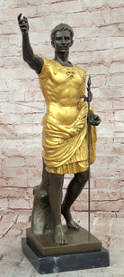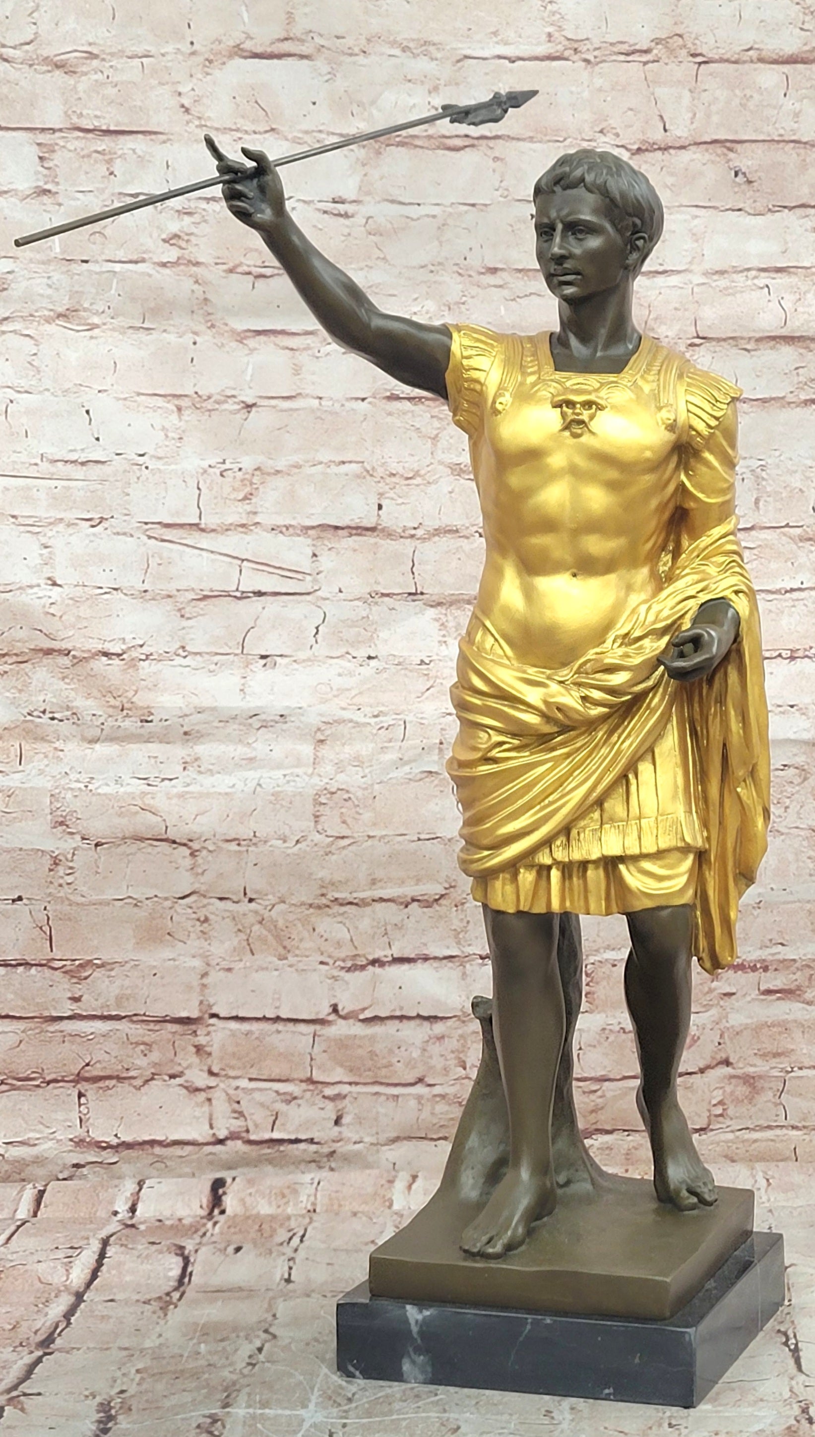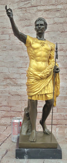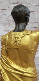 Bronze Roman Caesar Warrior Statue with Gilded Armor and Spear on Base