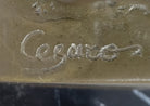 The sculpture is hand made using the traditional lost wax casting method in genuine bronze, ensuring exceptional detail and long-lasting quality. It is signed Cesaro, confirming its authenticity as an original artwork. The piece is mounted on a polished black marble base, providing stability and an elegant presentation.