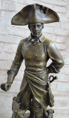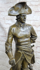 This awe-inspiring bronze sculpture pays tribute to Frederick the Great, the renowned King of Old Prussia and an emblematic figure of Prussian militarism. Revered even in modern Germany, Frederick's noble and heroic legacy endures. Crafted using the revered lost wax method, this sculpture embodies the artistry and skill of its creator. Resting upon a sleek black marble base, the sculpture emanates a sense of regality and significance. The artist's signature, R. Kaesbach, adds a personal touch and authenticity to this stunning artwork, ensuring its place among admirers of history and art alike.Bronze Dimensions with Marble Base: Height 16" X Width 8.5"