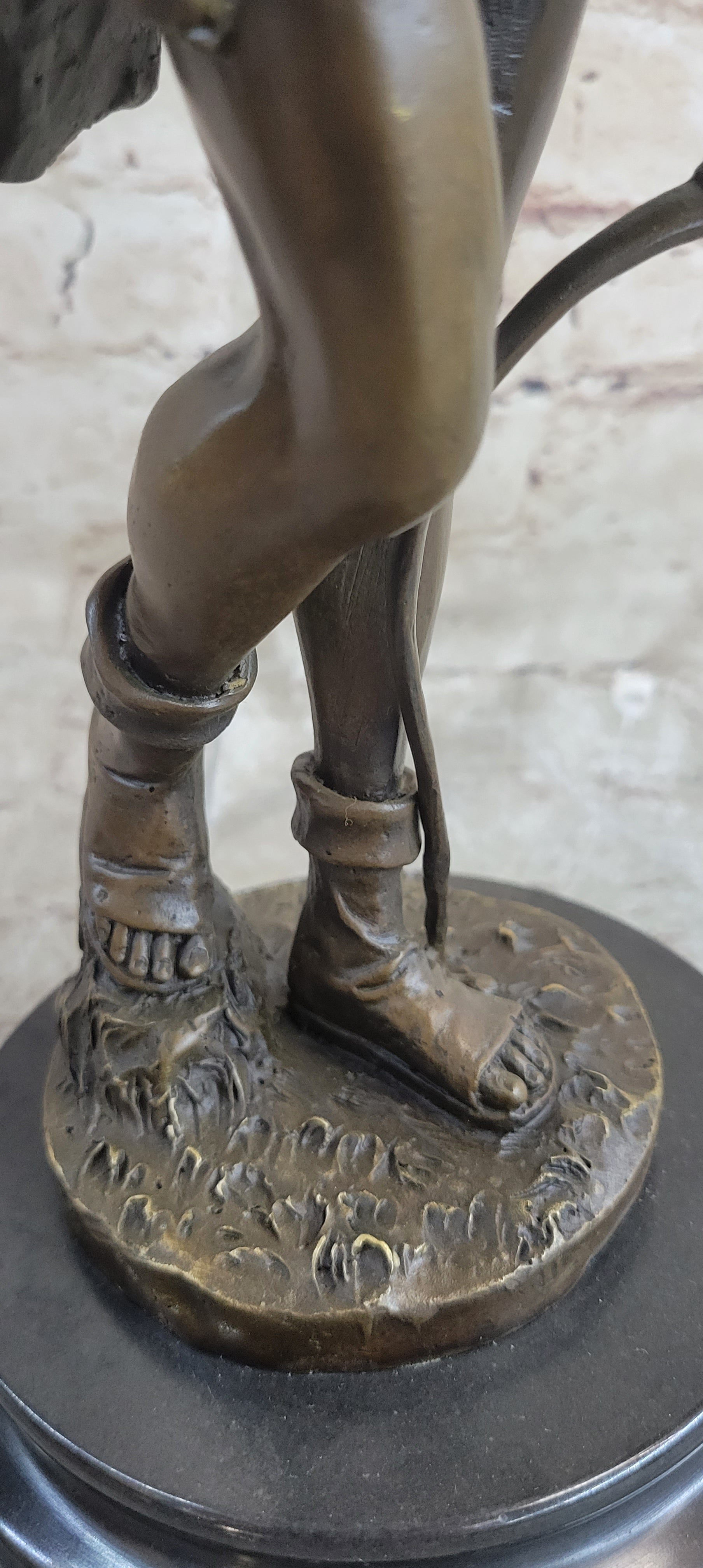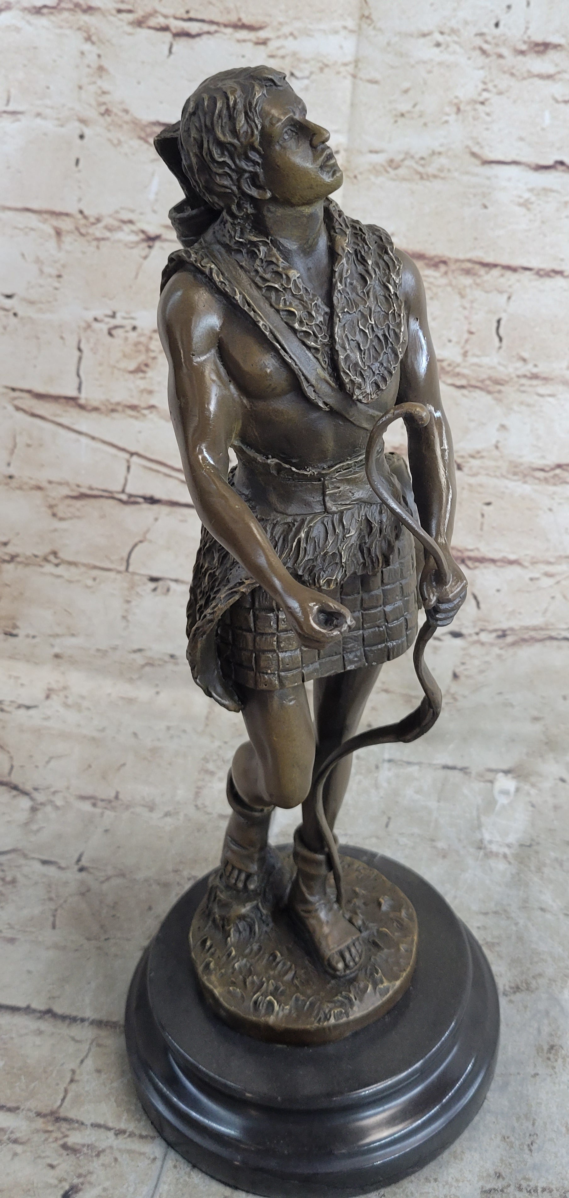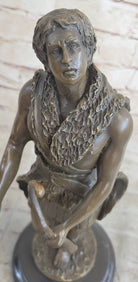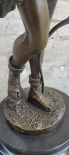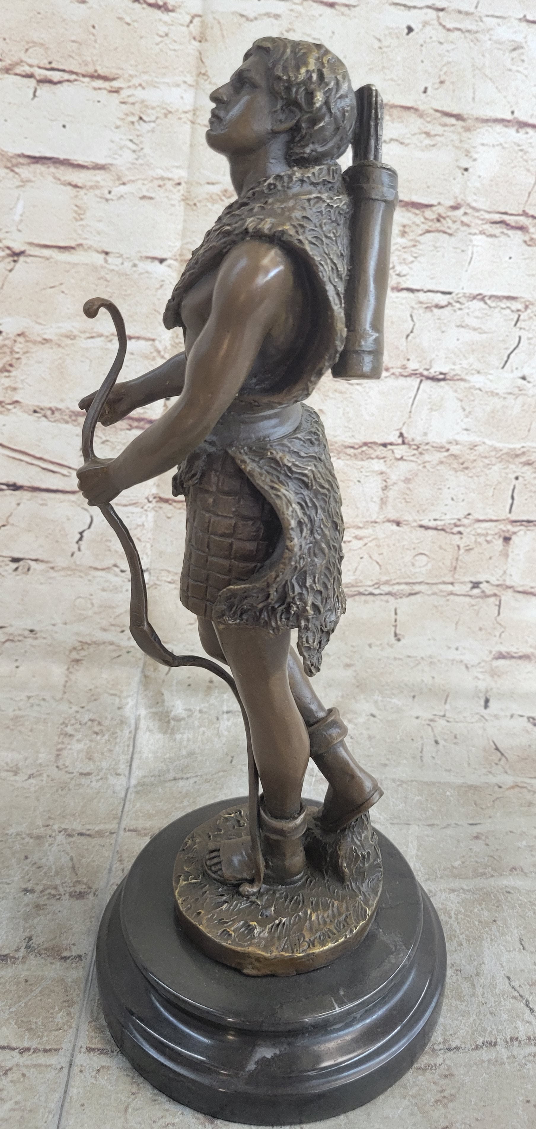Handmade Bronze Sculpture God Apollo Nude Young Man Hunter Bow & Arrow Figurine